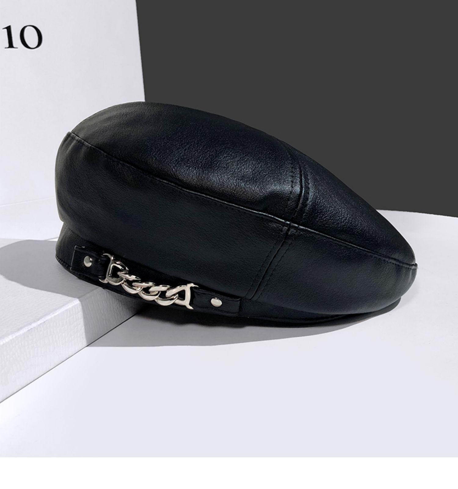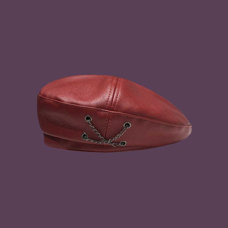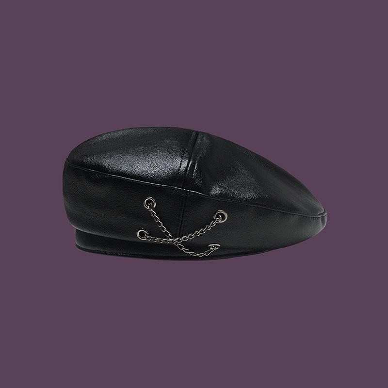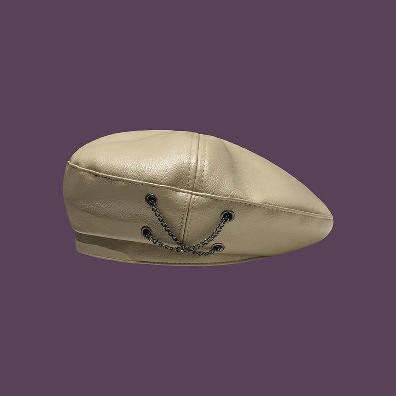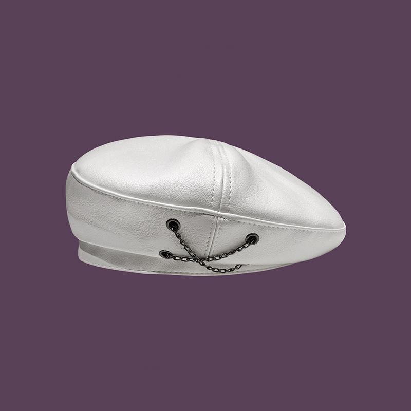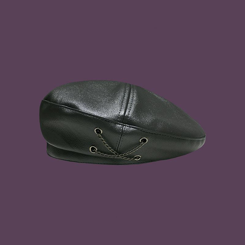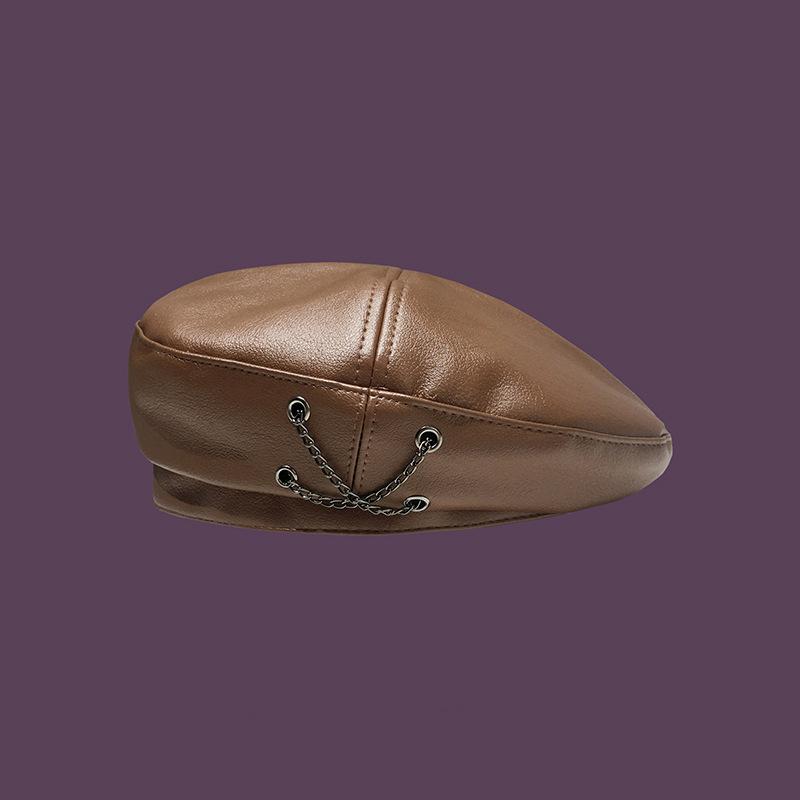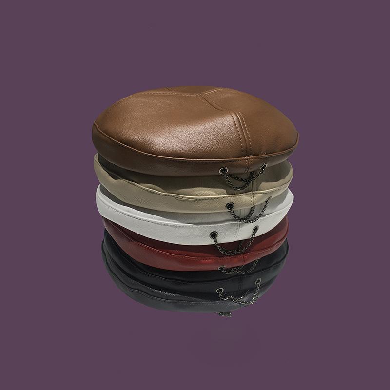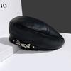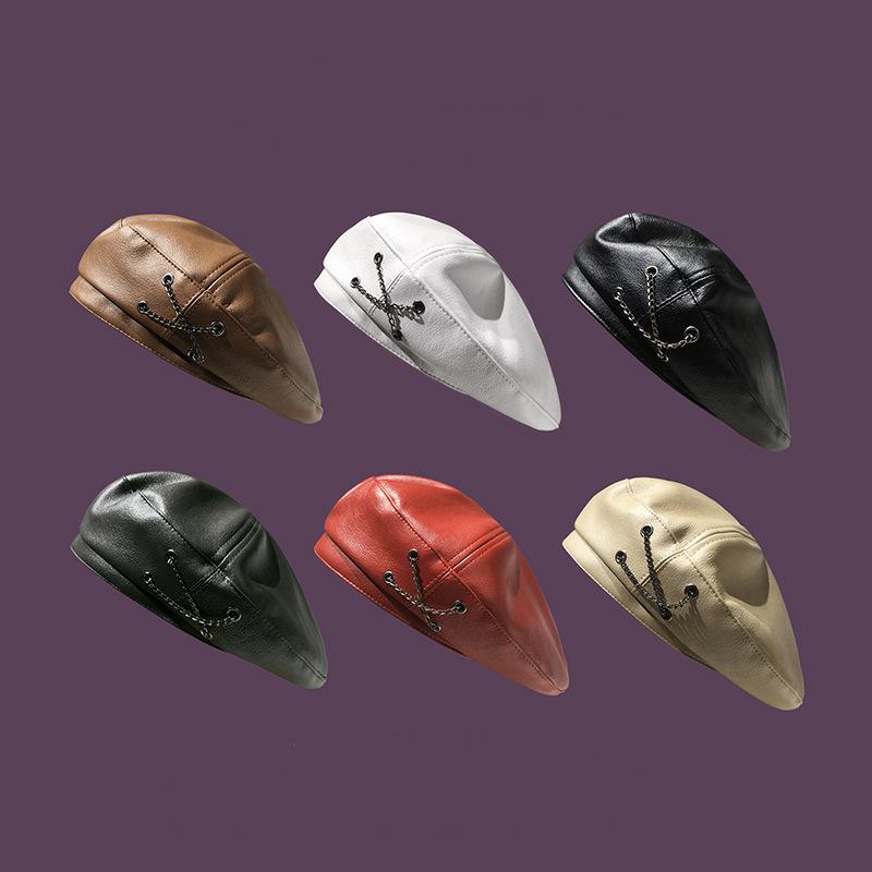 Boina de cuero con cadena para niños, gorra octogonal vintage británica, estilo japonés, popular en Internet, estilo coreano, gorra de pintor de cuero sintético combinable a la moda.