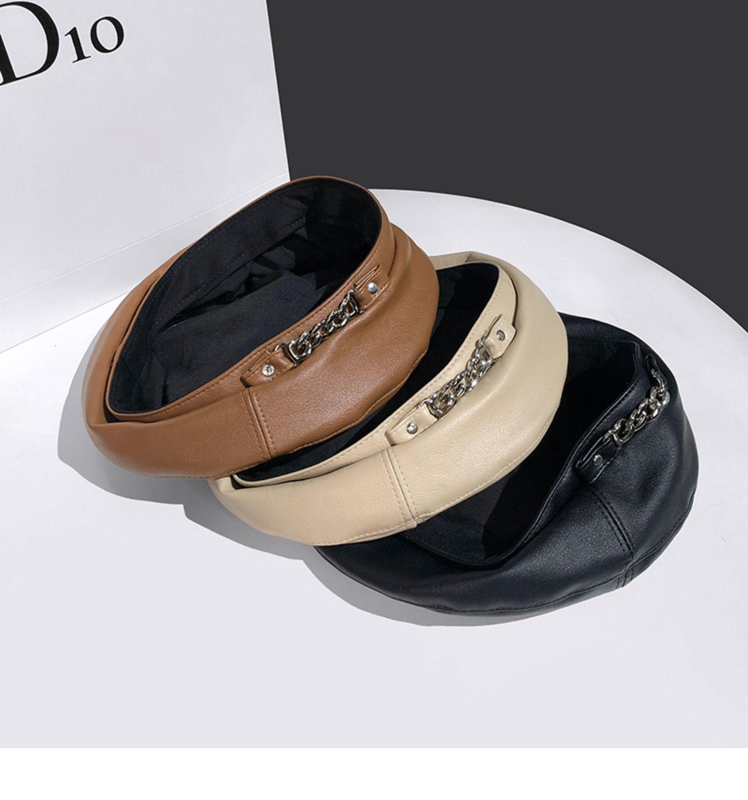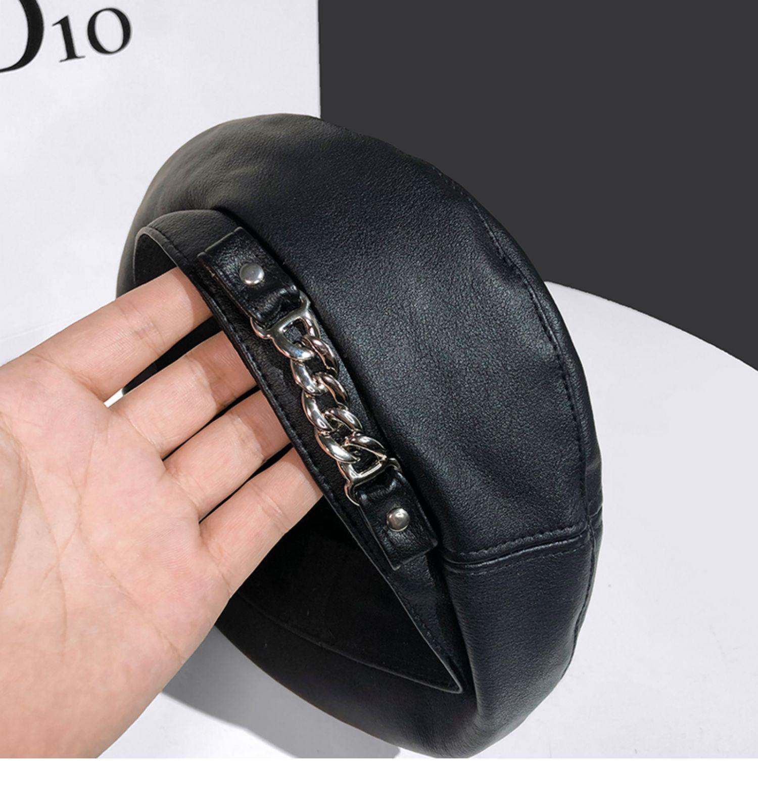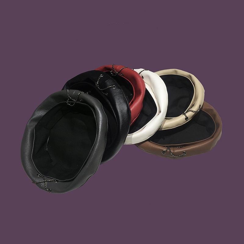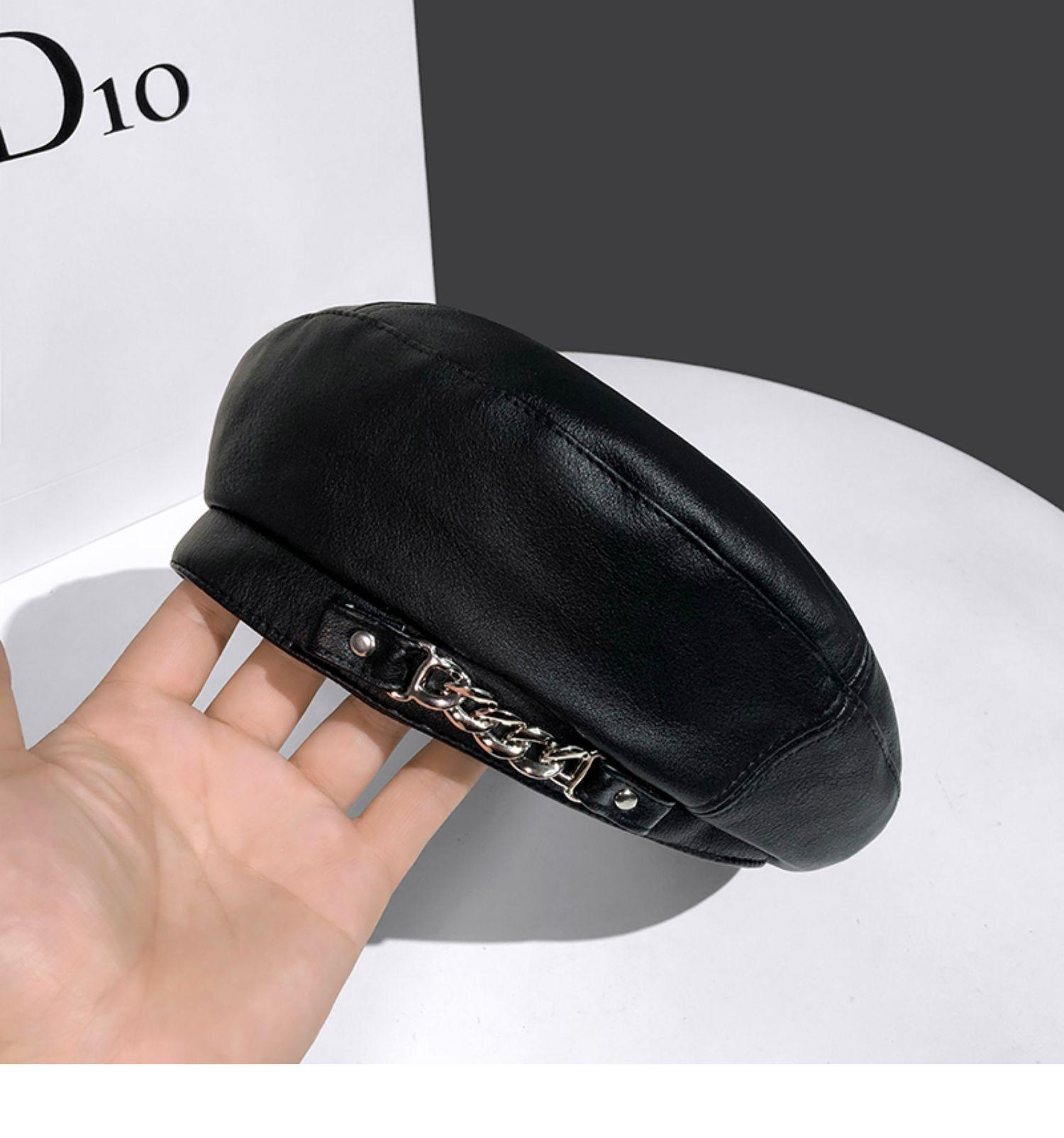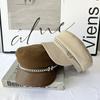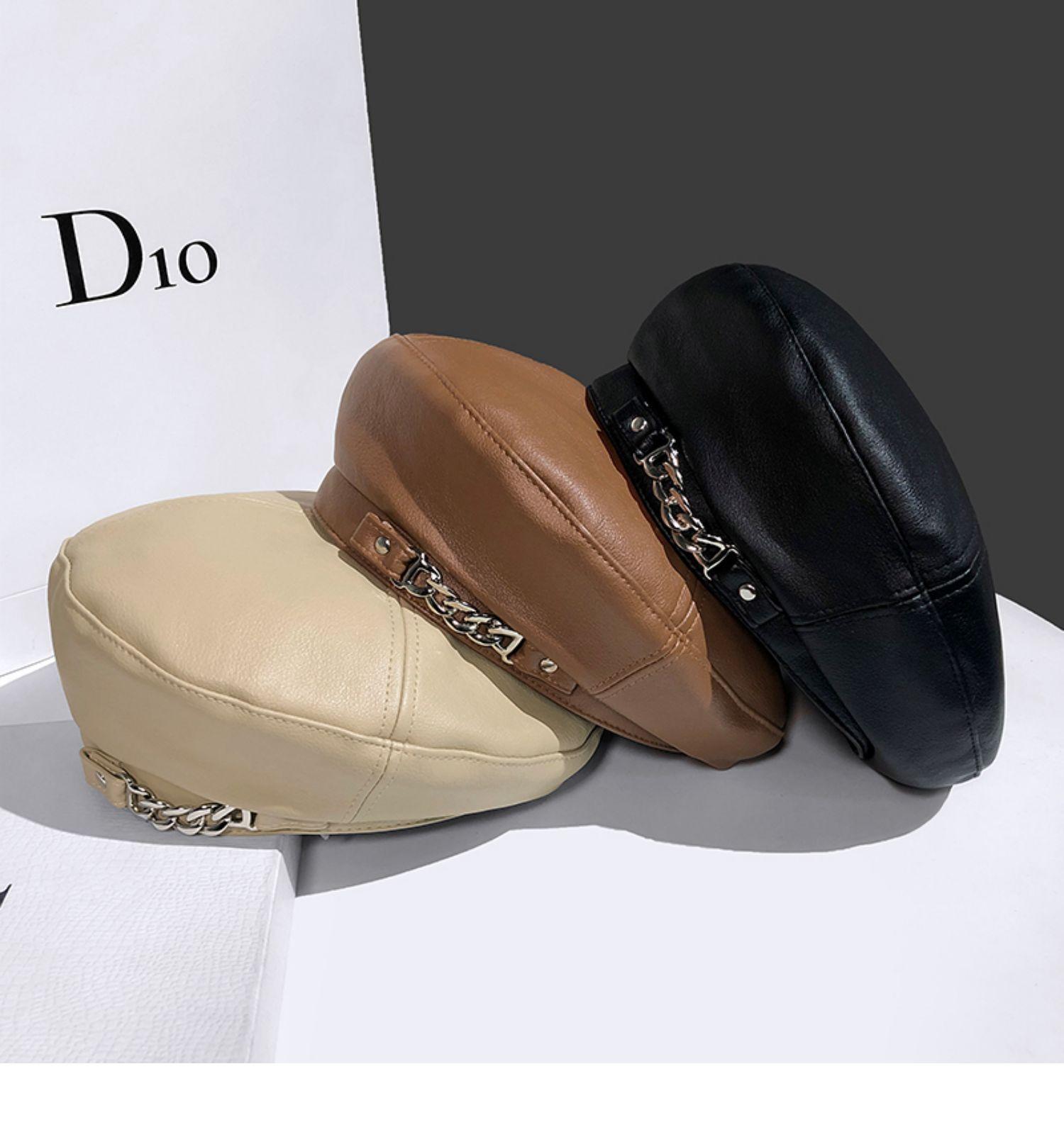 Boina de cuero con cadena para niños, gorra octogonal vintage británica, estilo japonés, popular en Internet, estilo coreano, gorra de pintor de cuero sintético combinable a la moda.