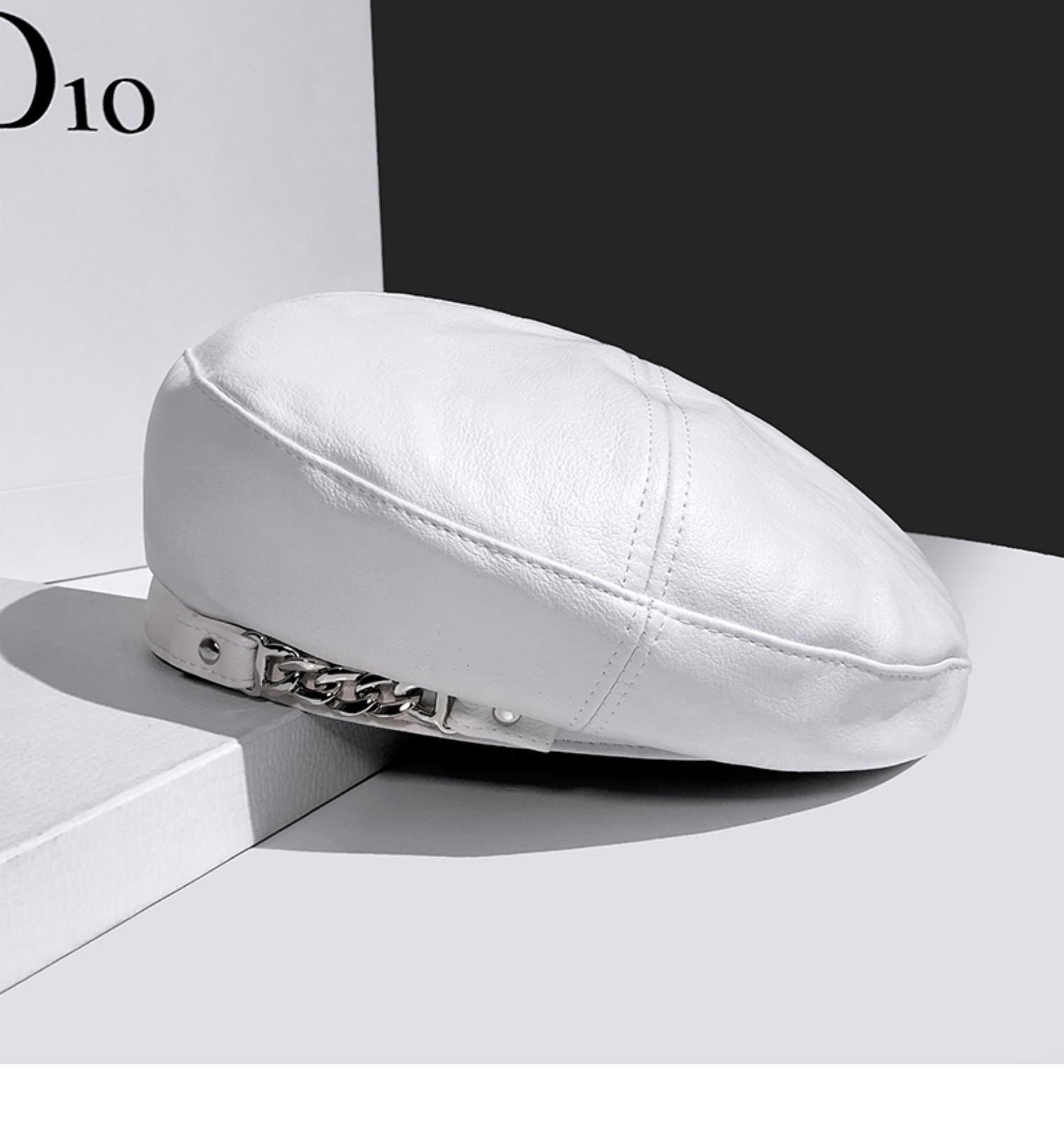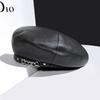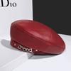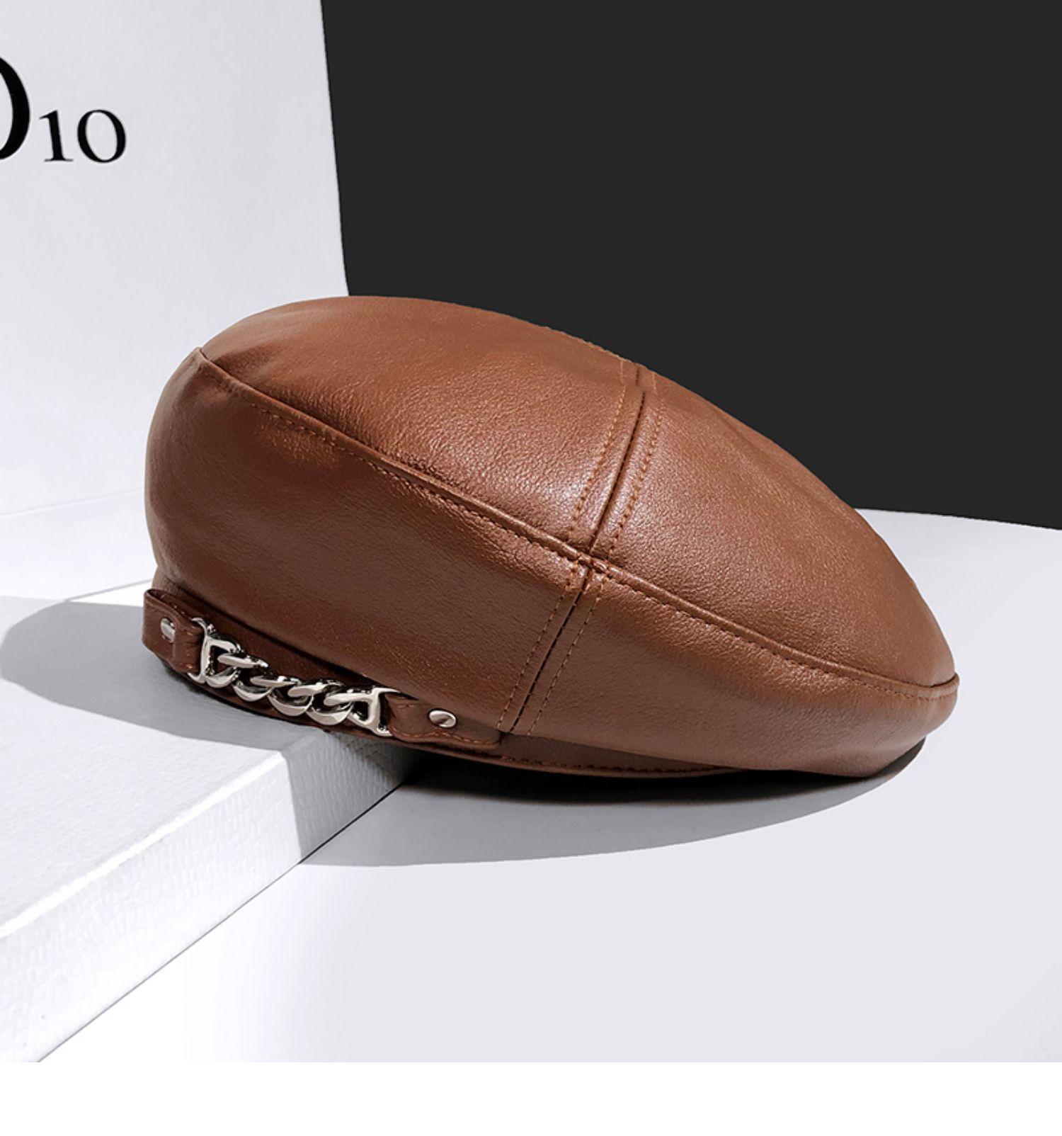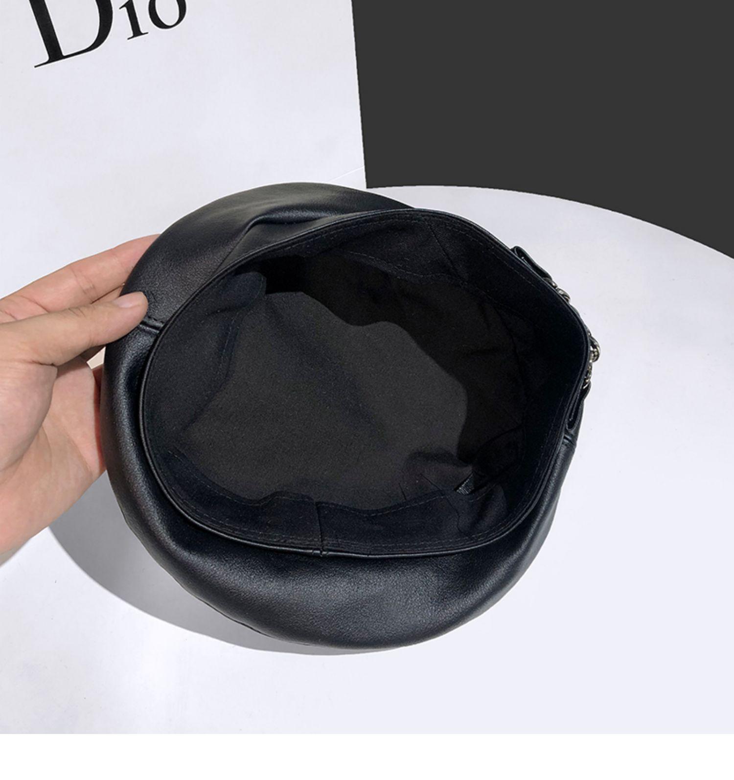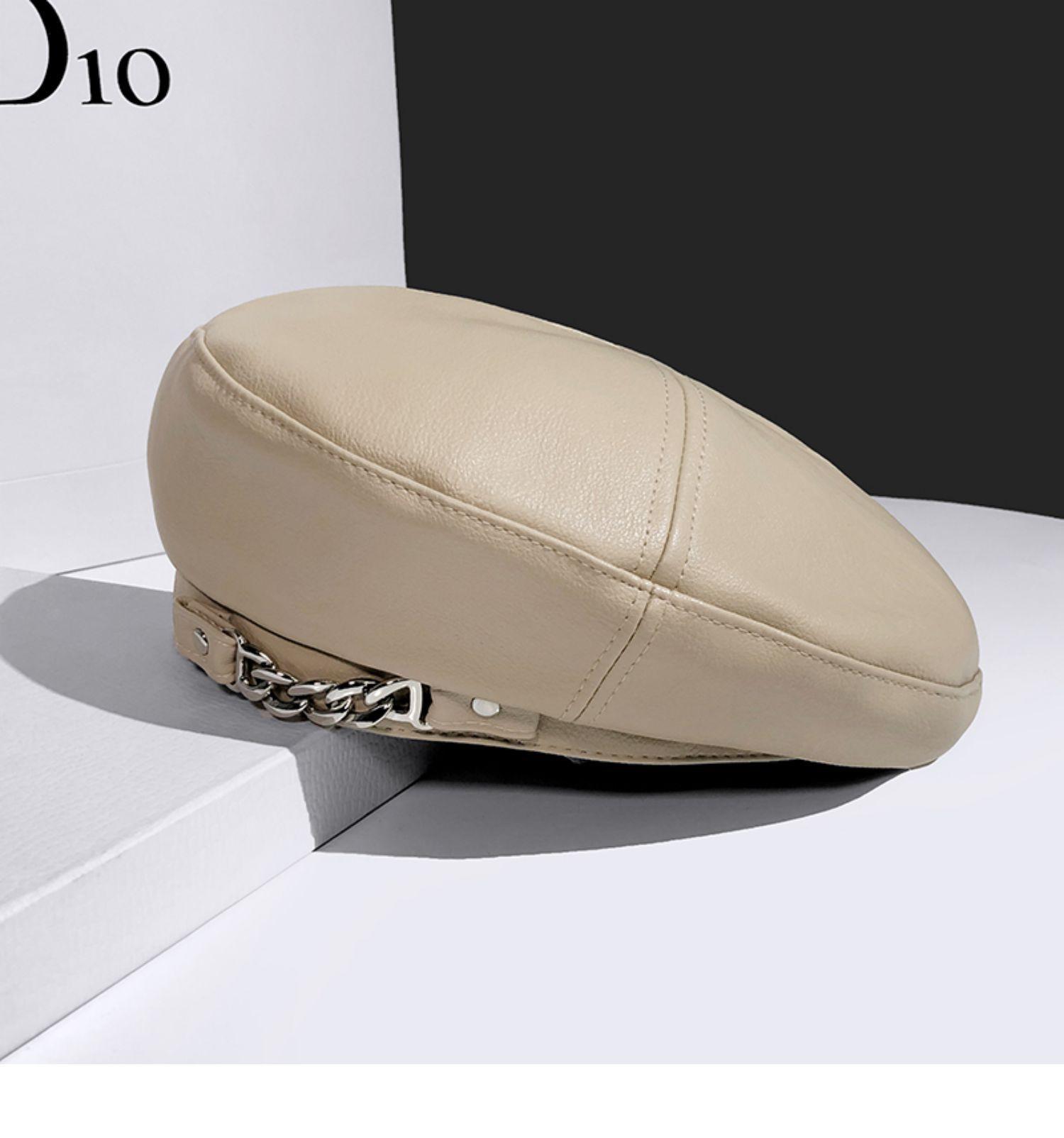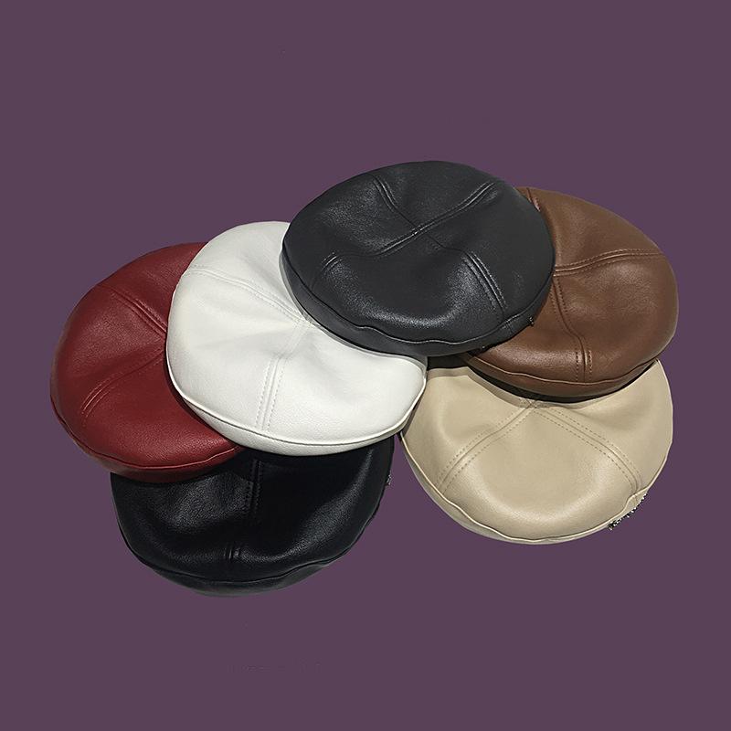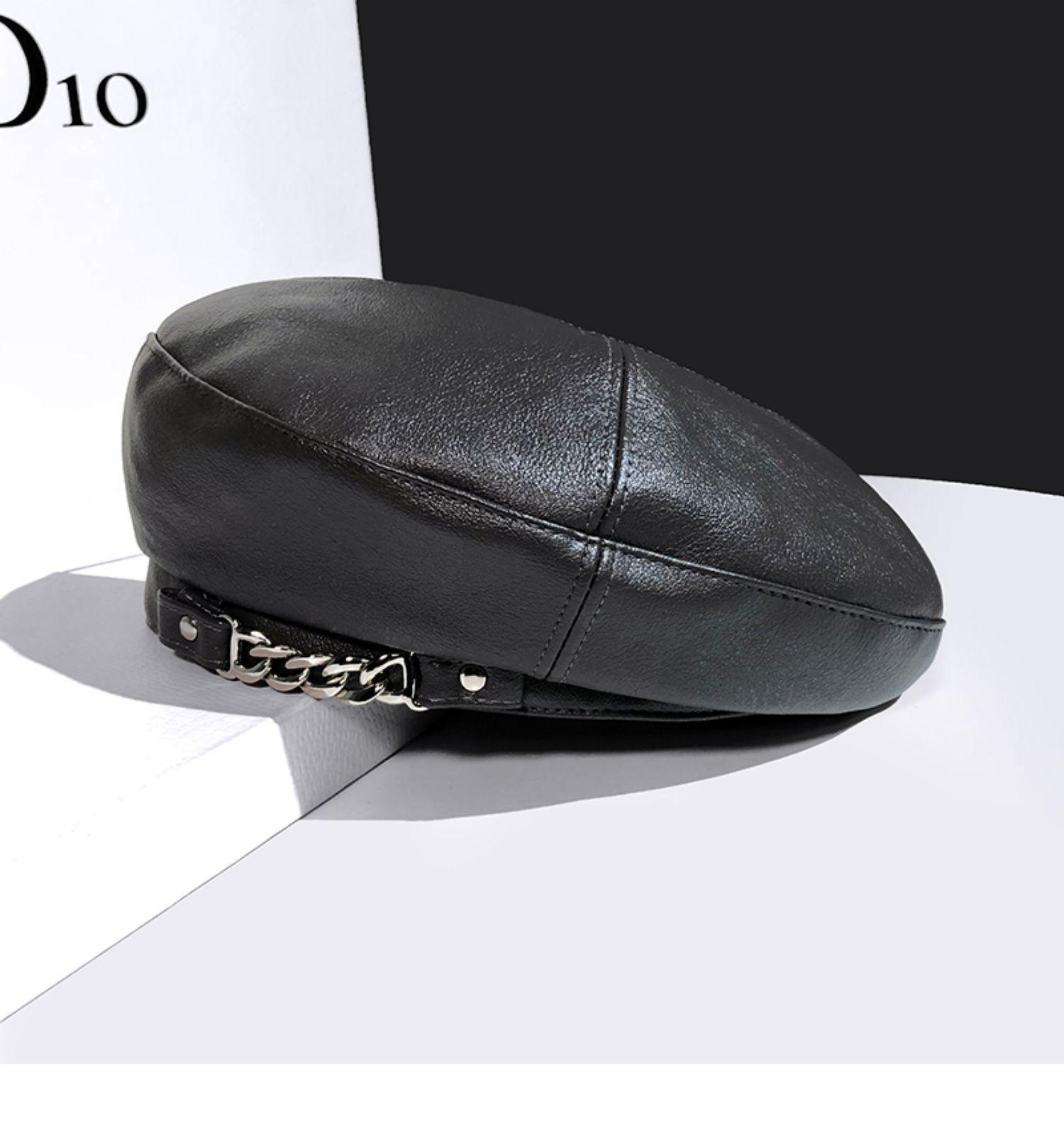 Boina de cuero con cadena para niños, gorra octogonal vintage británica, estilo japonés, popular en Internet, estilo coreano, gorra de pintor de cuero sintético combinable a la moda.