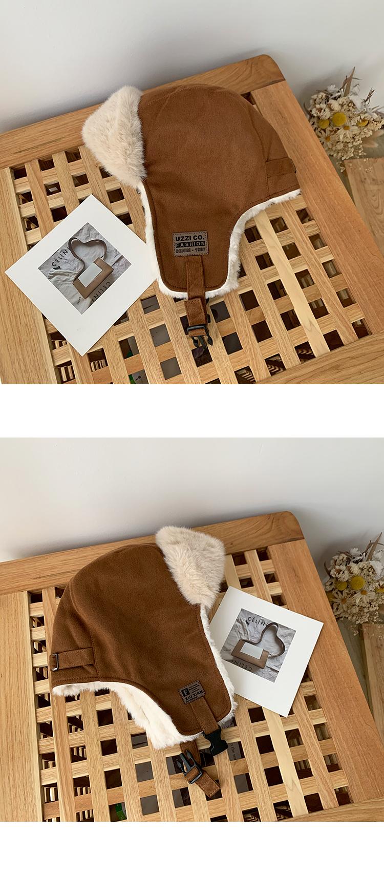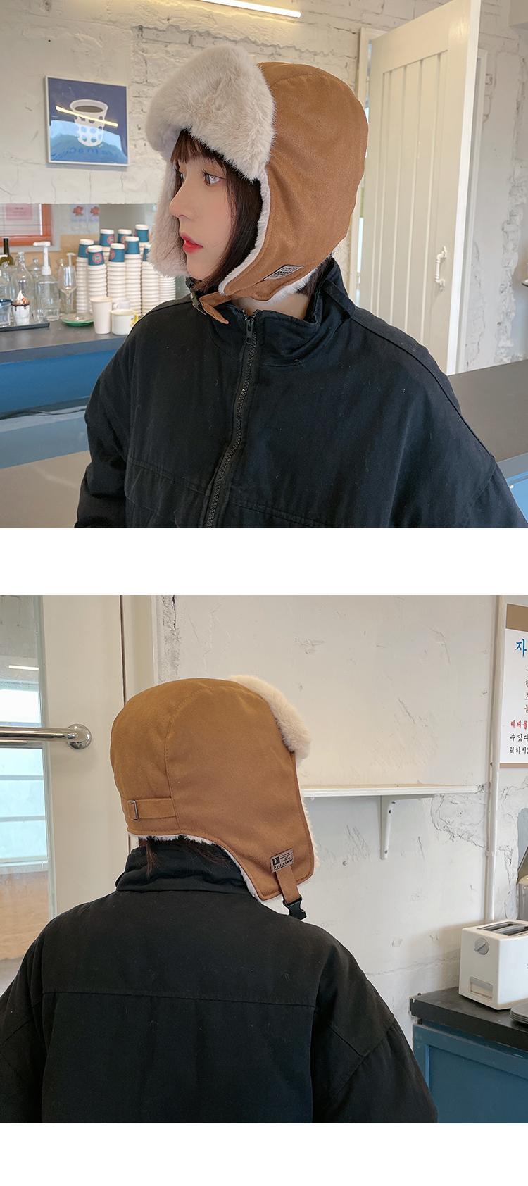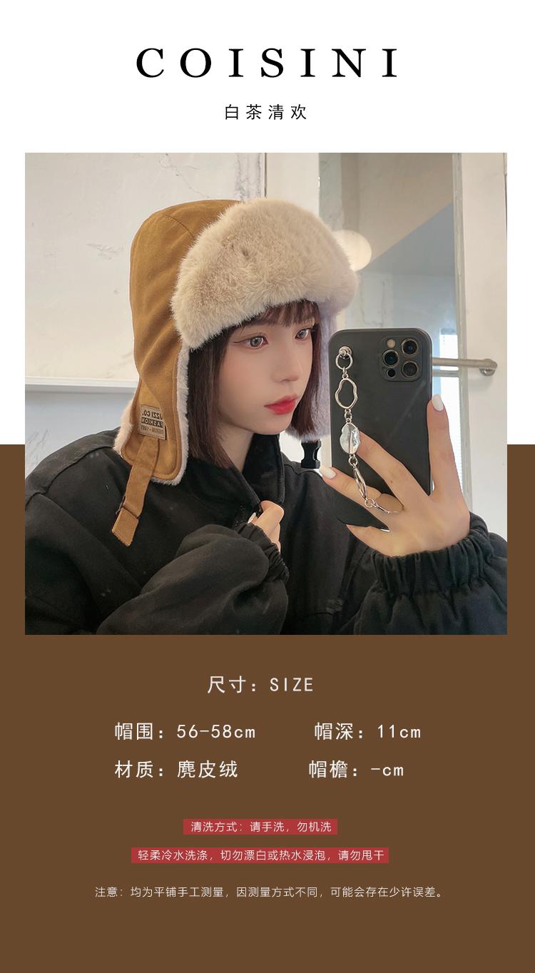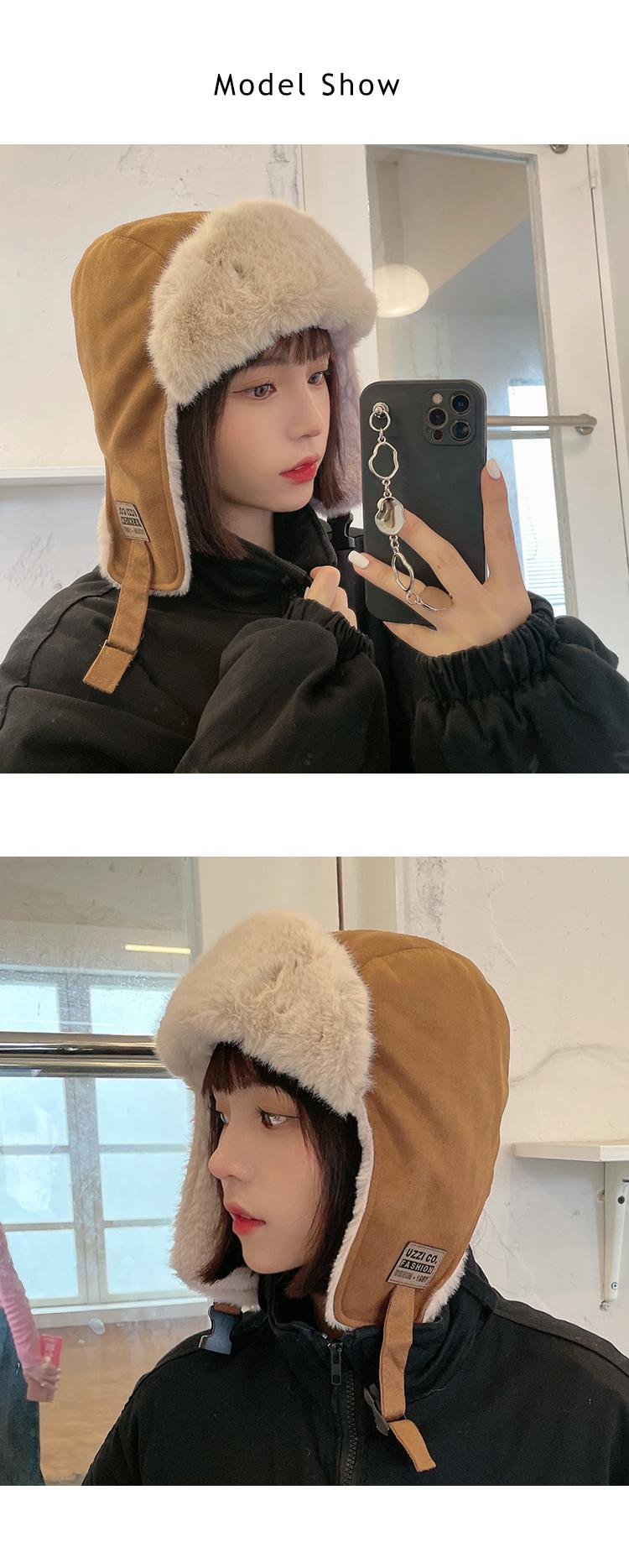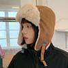 Gorra Lei Feng de felpa de gamuza con parche de letras estilo coreano para mujer, invierno, gruesa, cálida, con orejeras, estudiante, versátil, moda