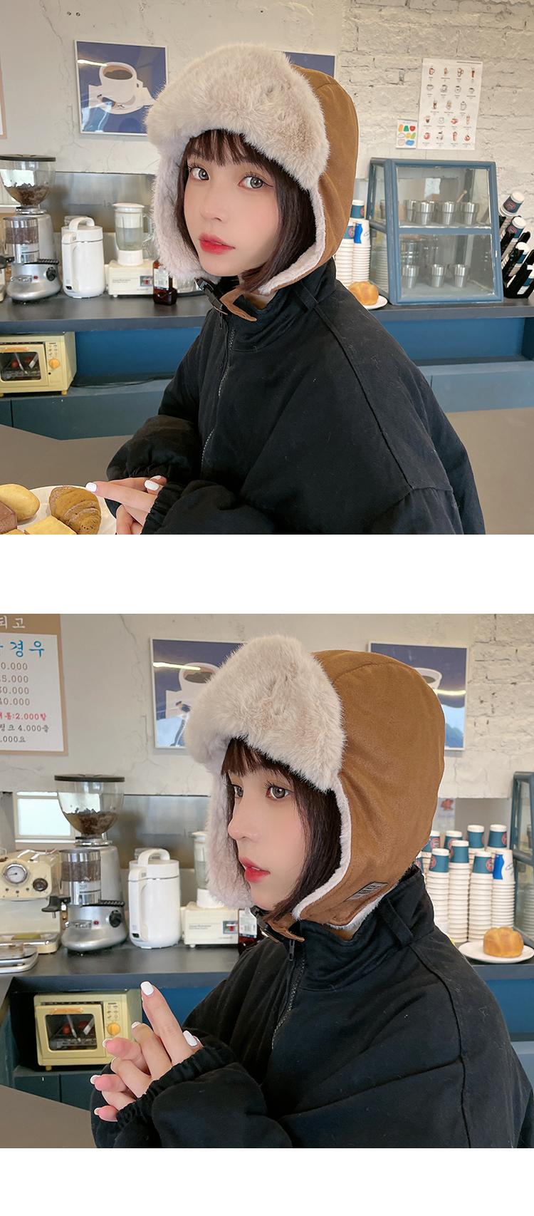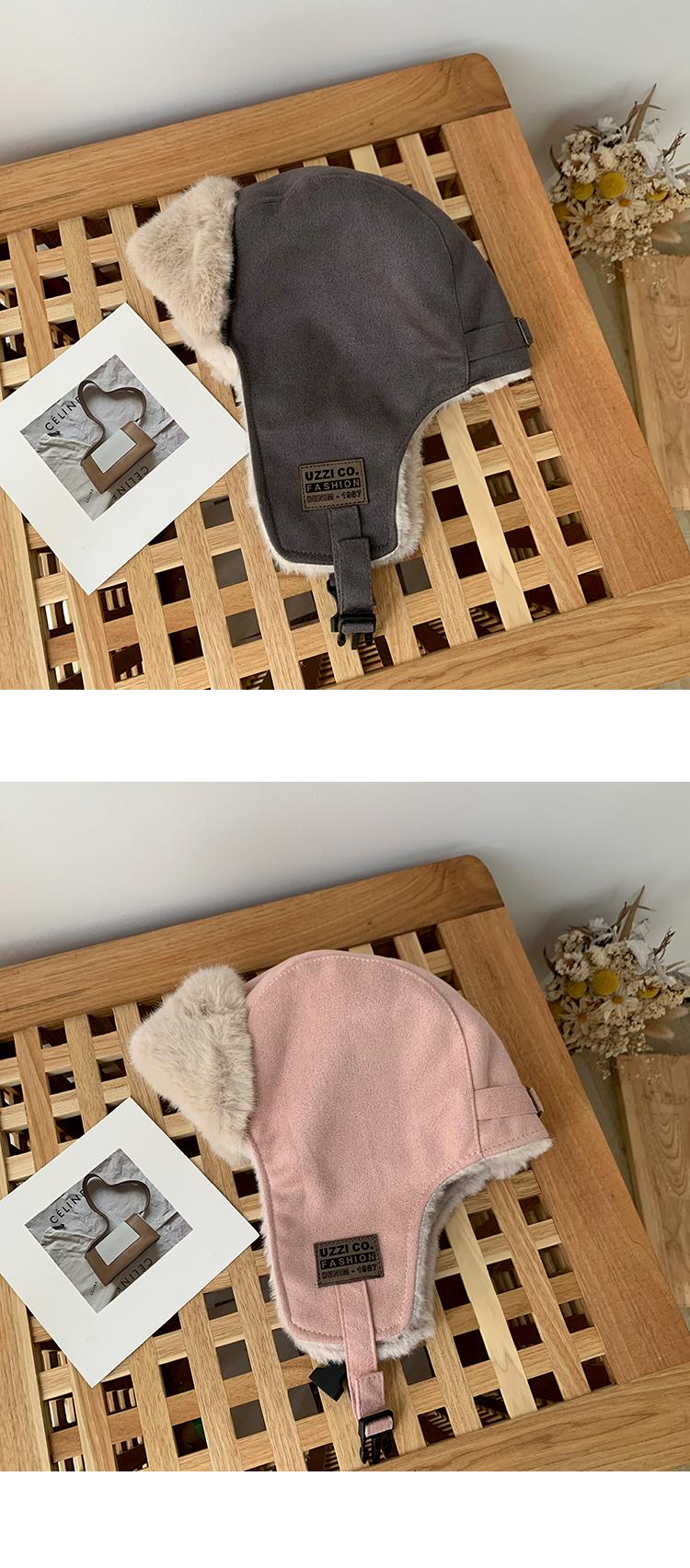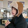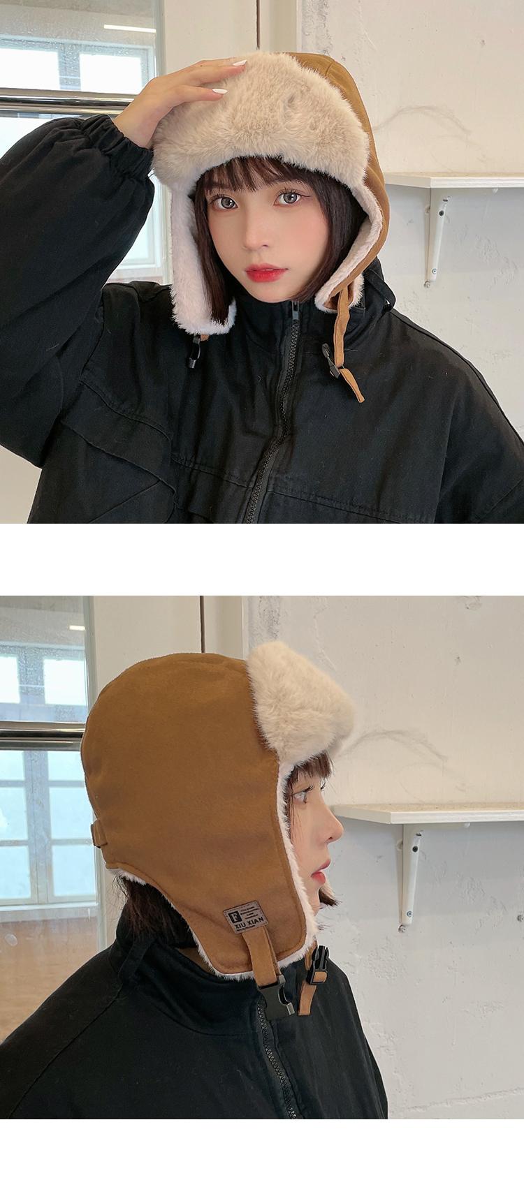 Gorra Lei Feng de felpa de gamuza con parche de letras estilo coreano para mujer, invierno, gruesa, cálida, con orejeras, estudiante, versátil, moda