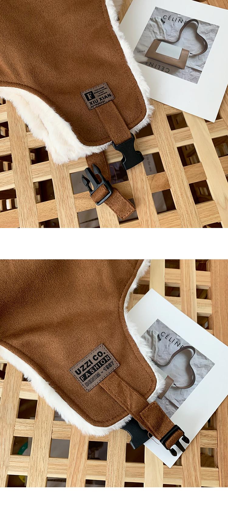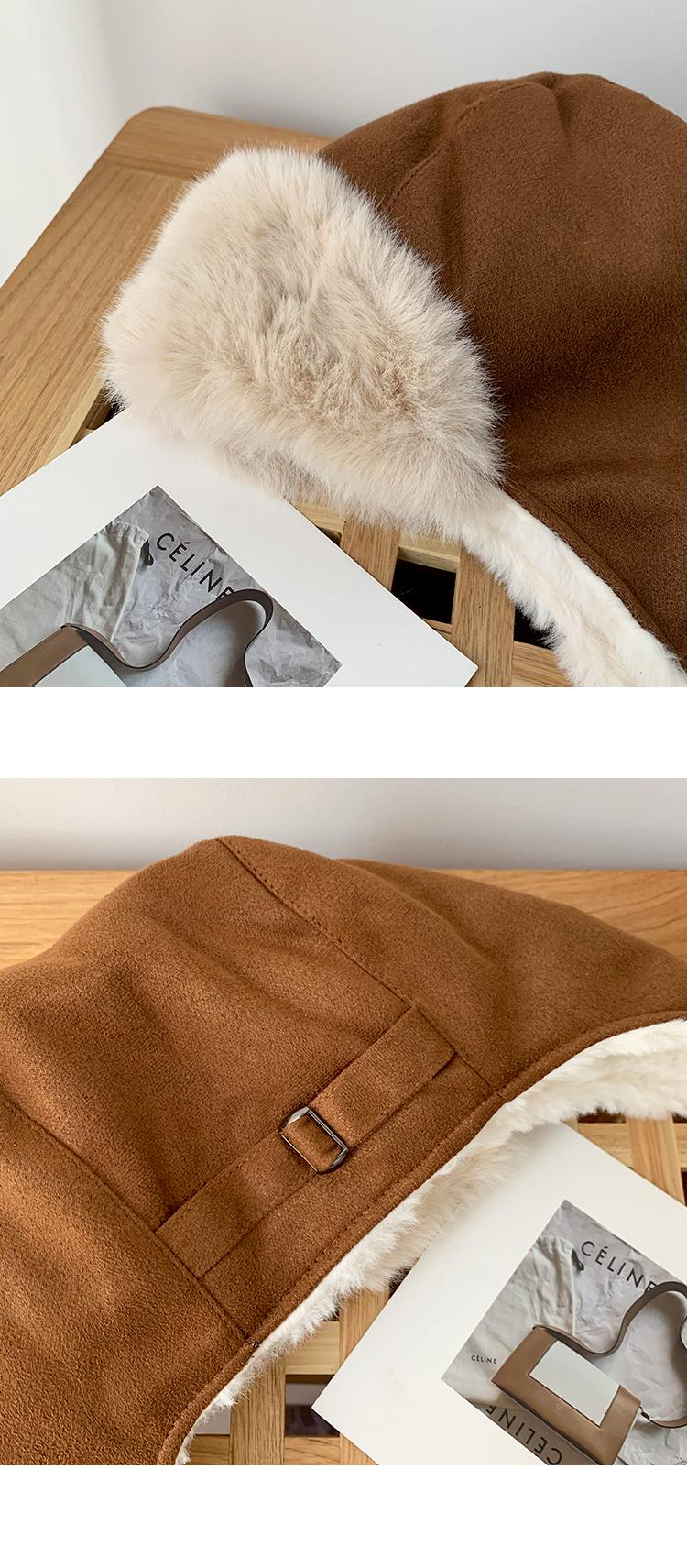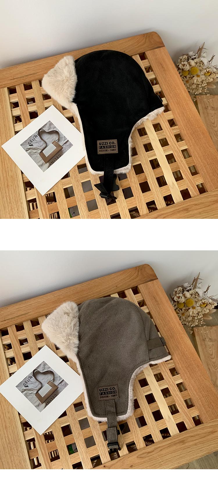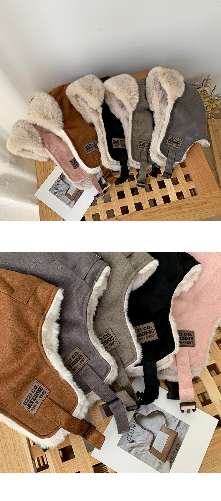 Gorra Lei Feng de felpa de gamuza con parche de letras estilo coreano para mujer, invierno, gruesa, cálida, con orejeras, estudiante, versátil, moda