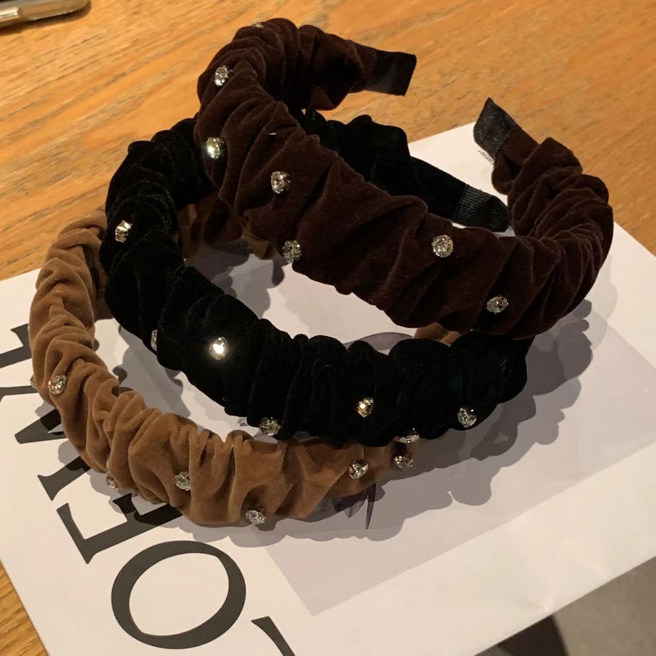 Diadema Negra Plisada para Mujer 2023 Nuevo Estilo con Pedrería, Accesorio para el Cabello de Borde Ancho, Simple y Elegante para Lavarse la Cara