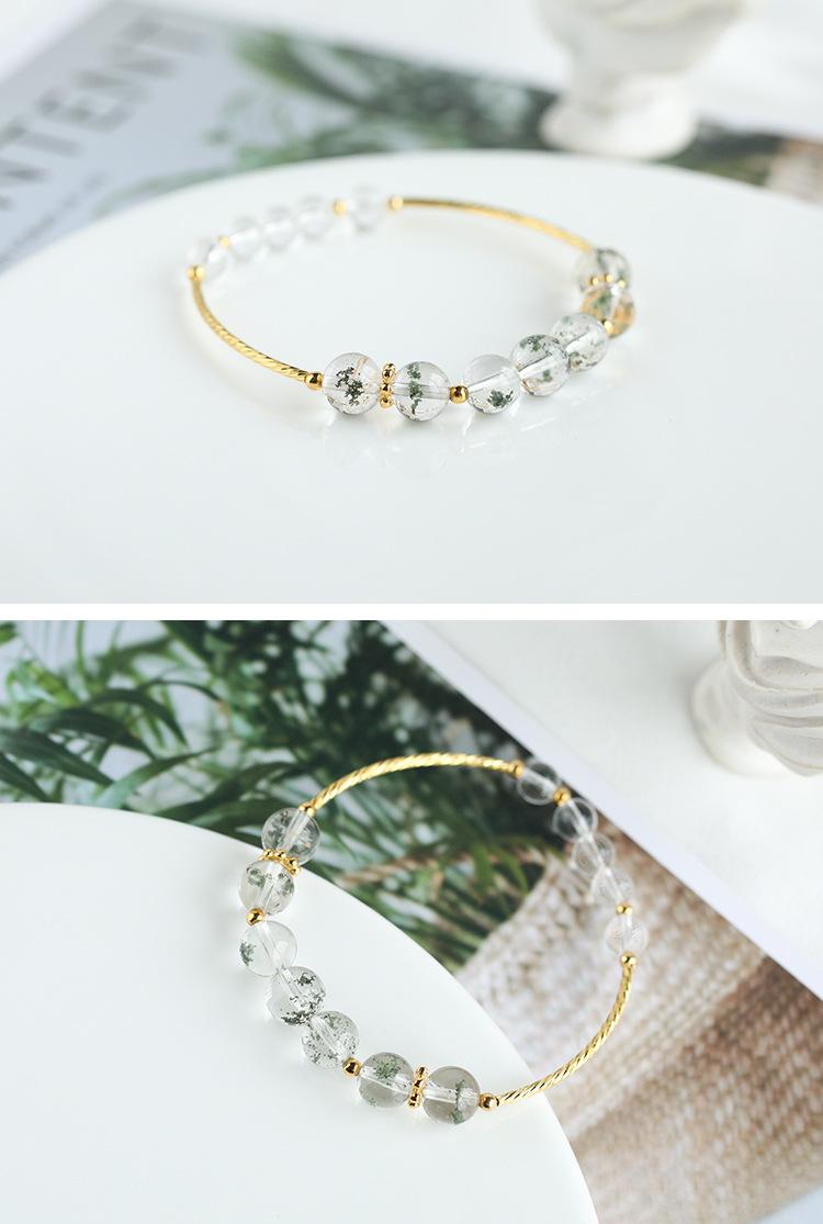 Pulsera de Cristal Natural Qiaoen para Mujer Pulsera de Fantasma Verde de Cuerpo Neto ins Nicho Simple Diseño Original