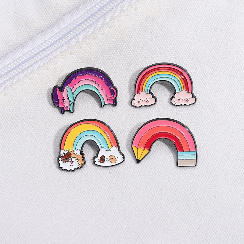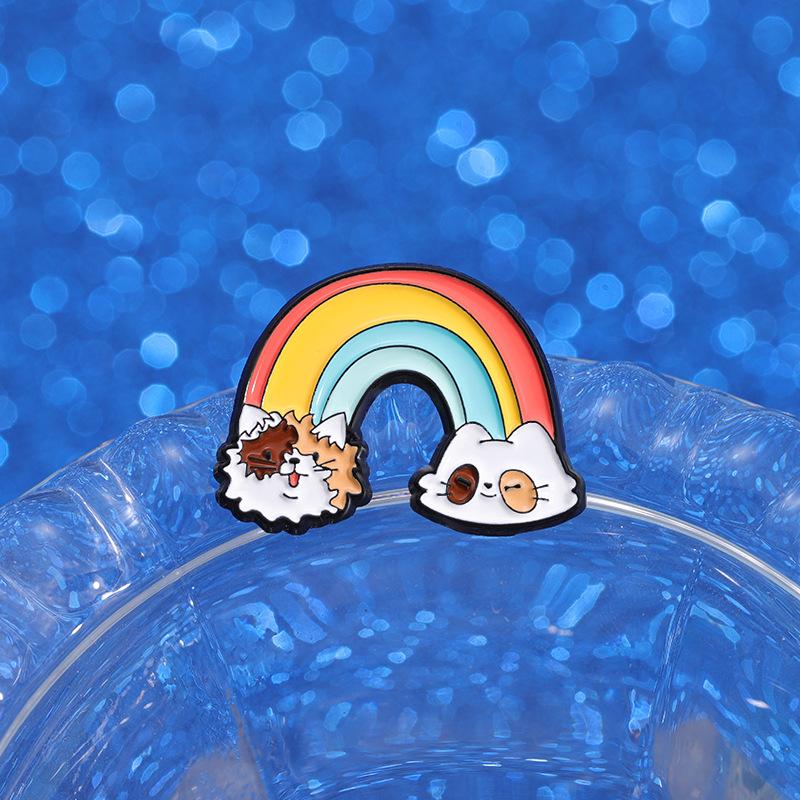 Broche de aleación con forma de nube de gato, insignia de pintura, serie de animales arcoíris de dibujos animados creativos transfronterizos, venta al por mayor