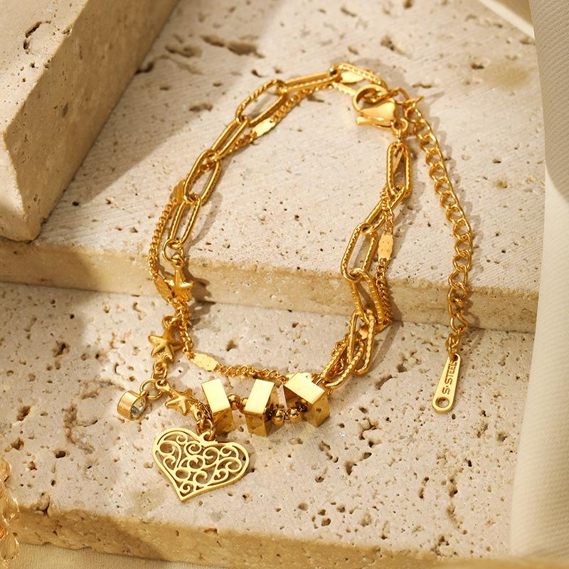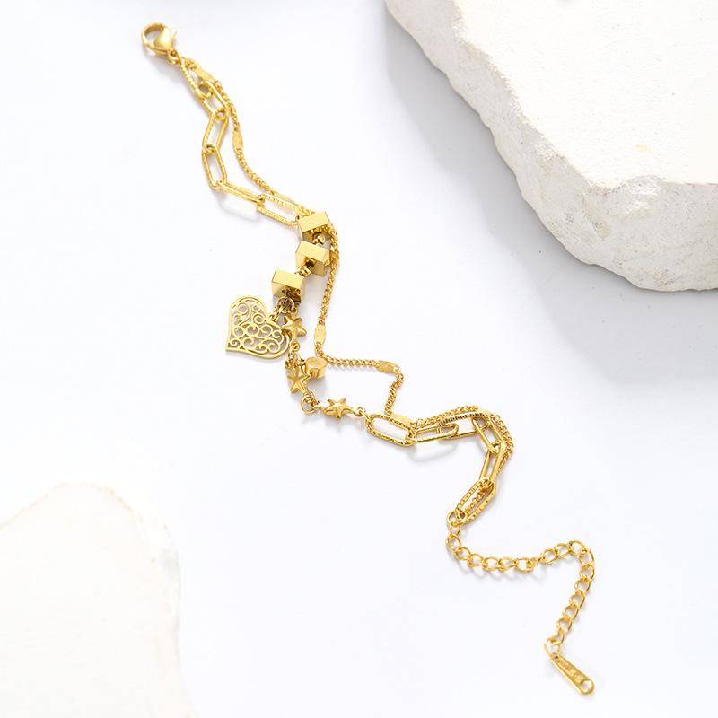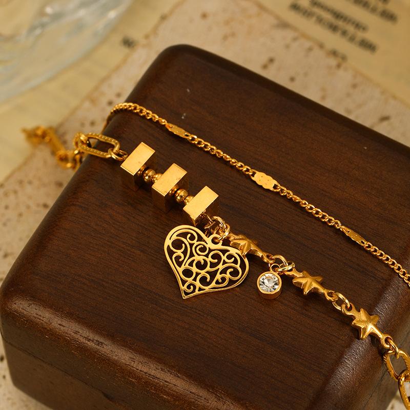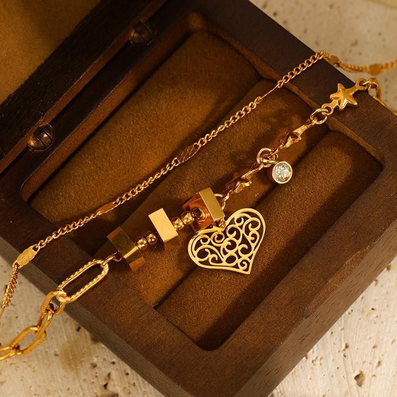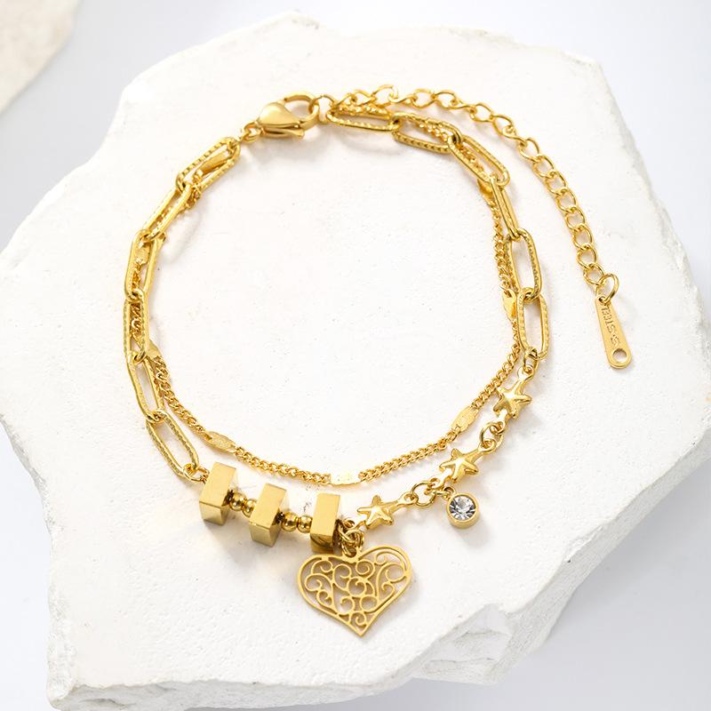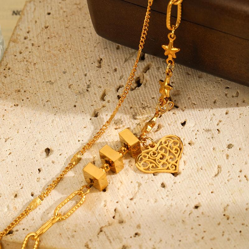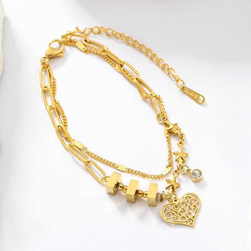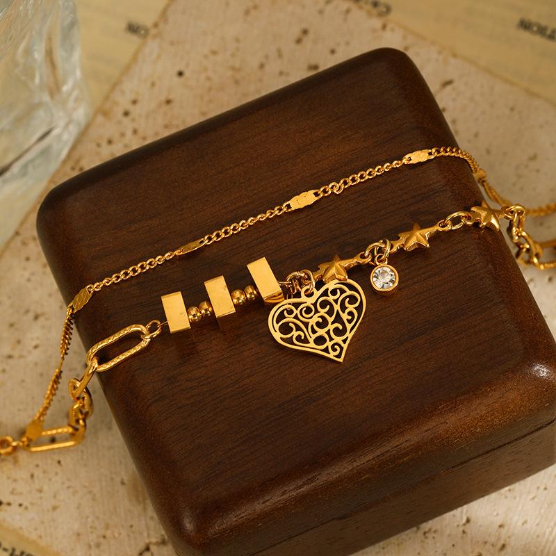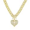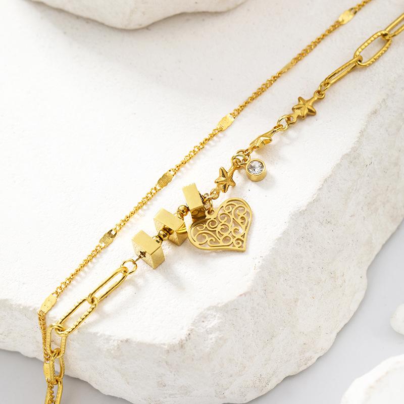 Accesorios europeos y americanos, pulsera exagerada de estilo hip-hop, cadena plegable de doble capa, colgante de amor, collar de acero inoxidable chapado en oro de moda, venta al por mayor