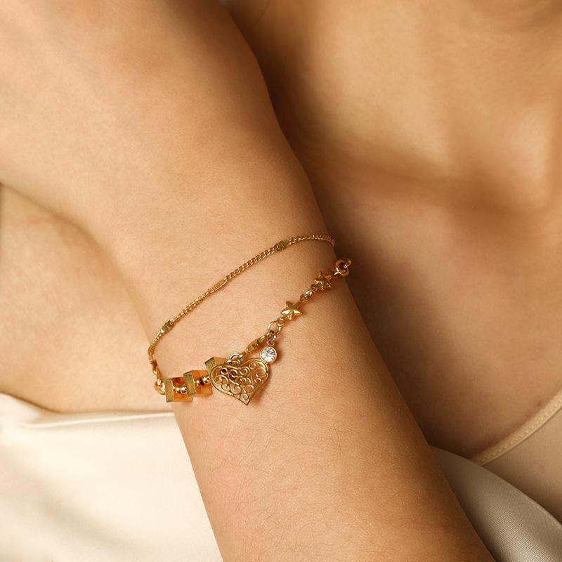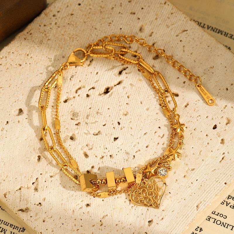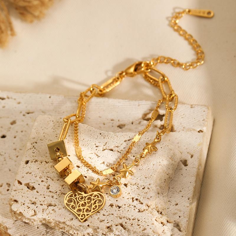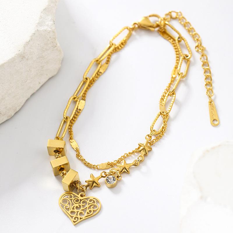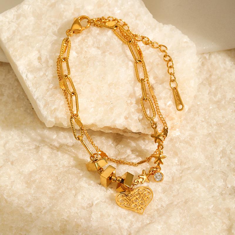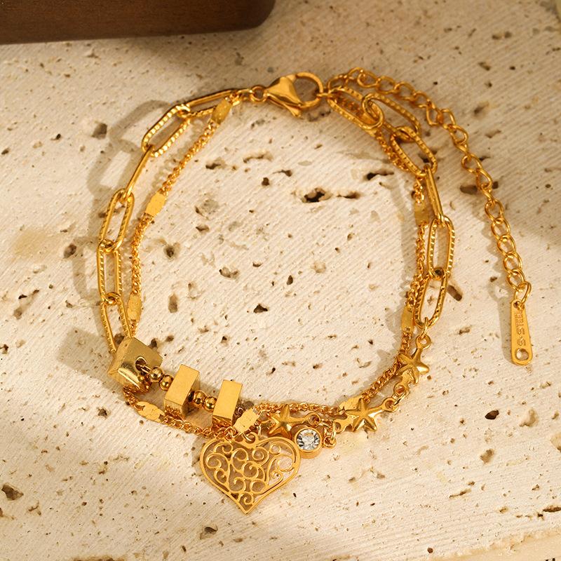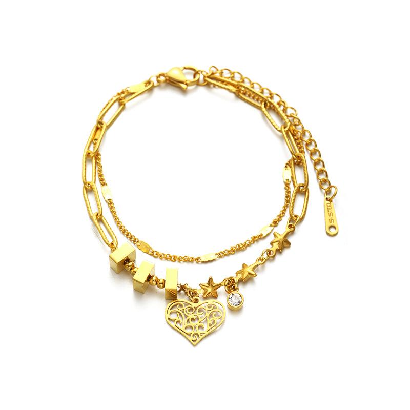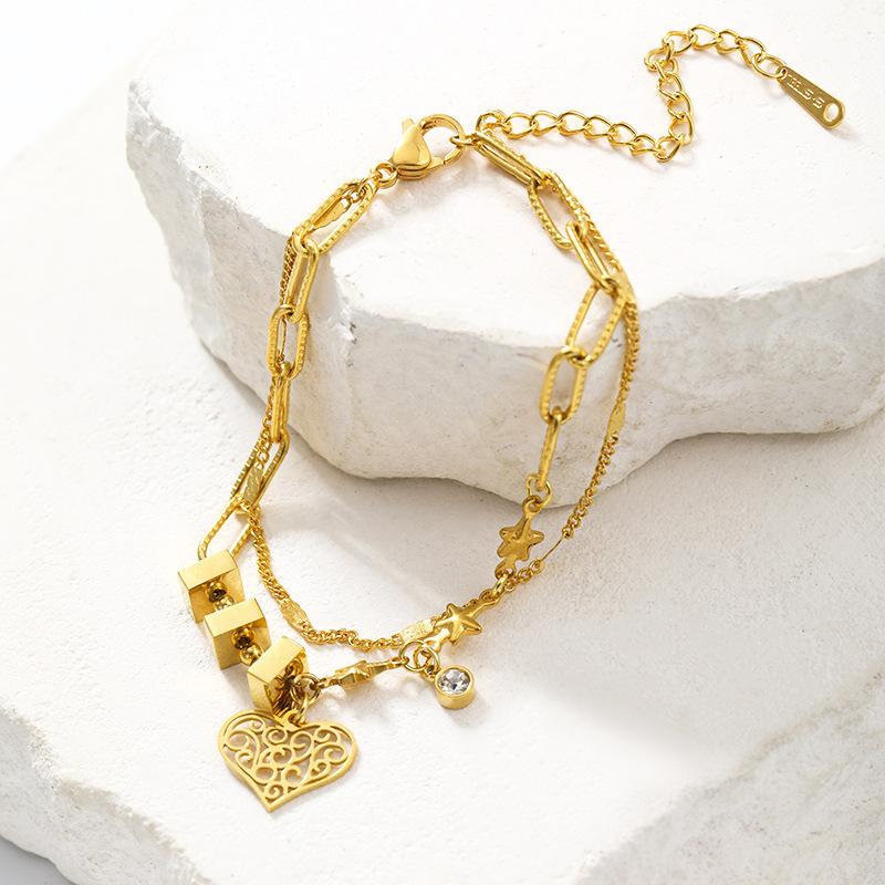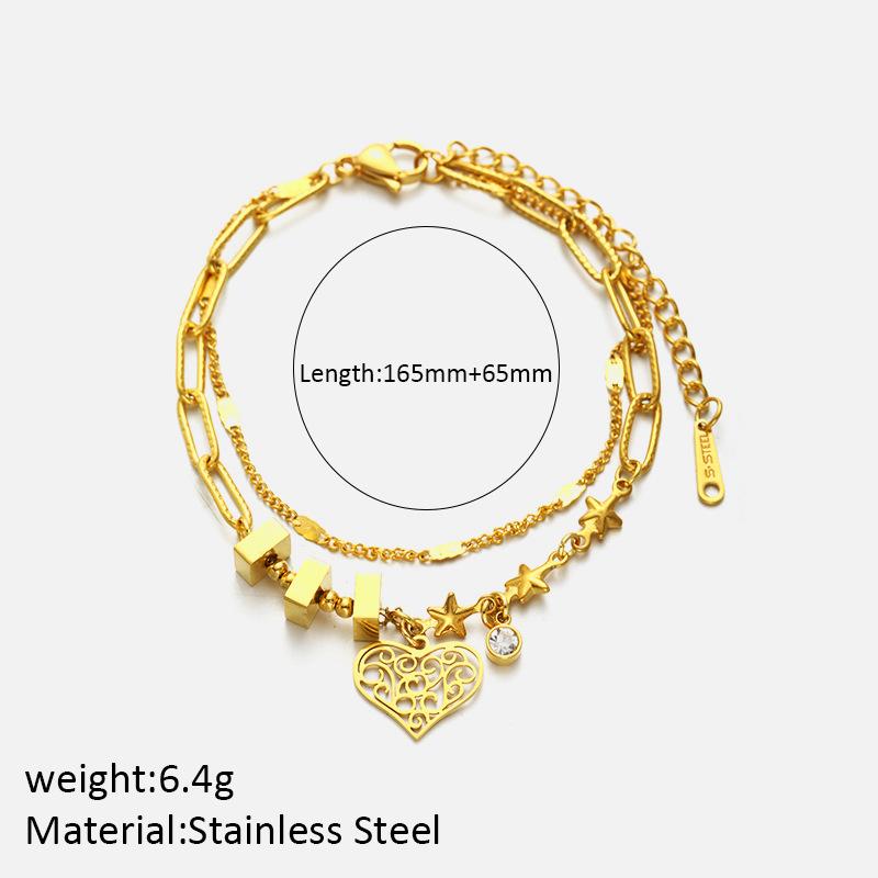 Accesorios europeos y americanos, pulsera exagerada de estilo hip-hop, cadena plegable de doble capa, colgante de amor, collar de acero inoxidable chapado en oro de moda, venta al por mayor
