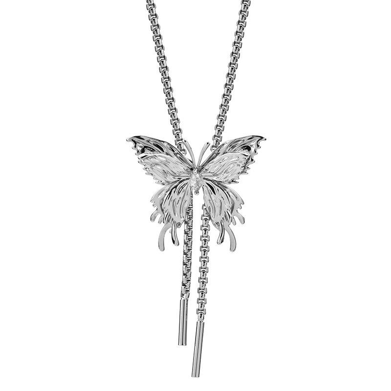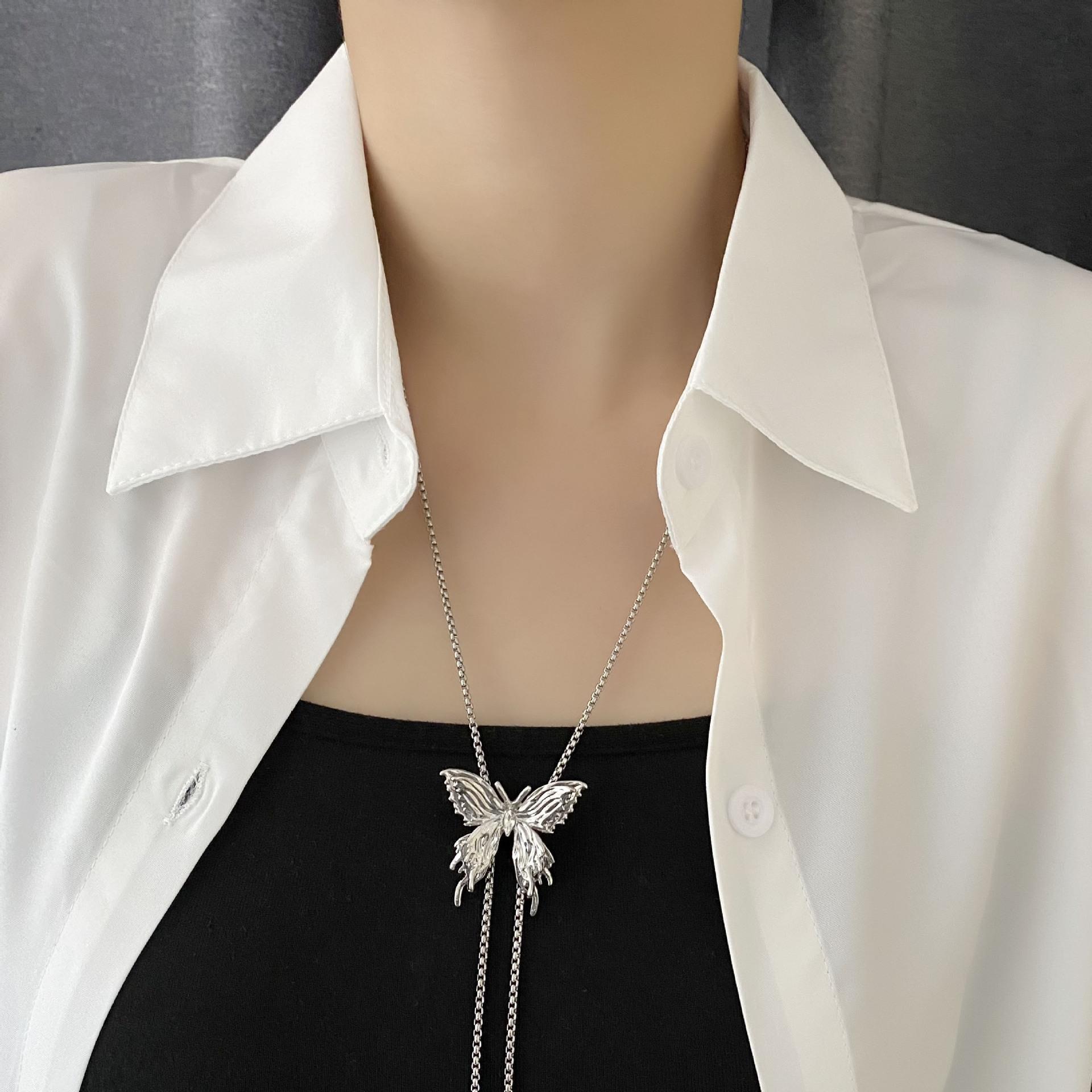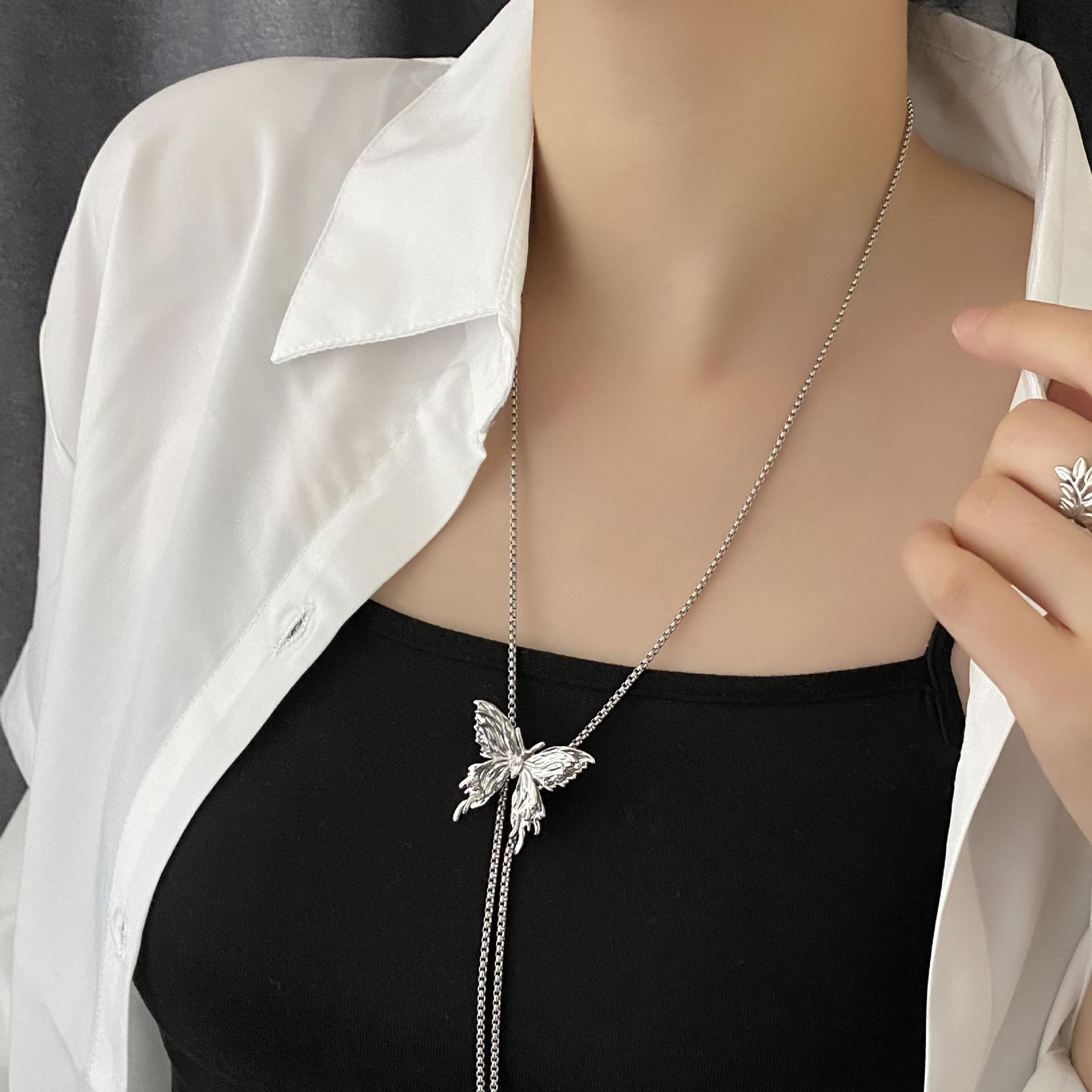Collar Largo Ajustable de Mariposa Líquida para Mujer Moda 2024 Cadena de Clavícula de Alto Sentido