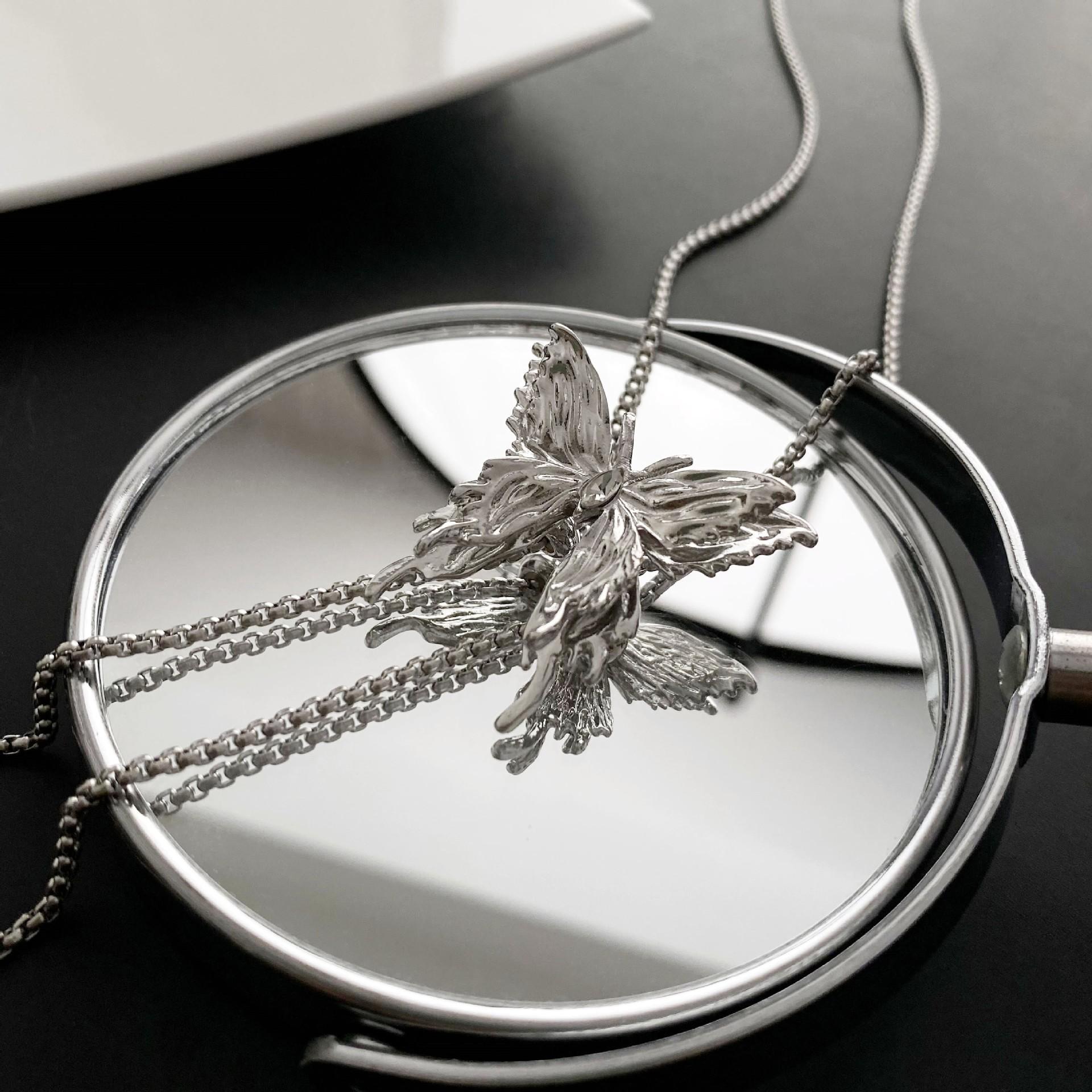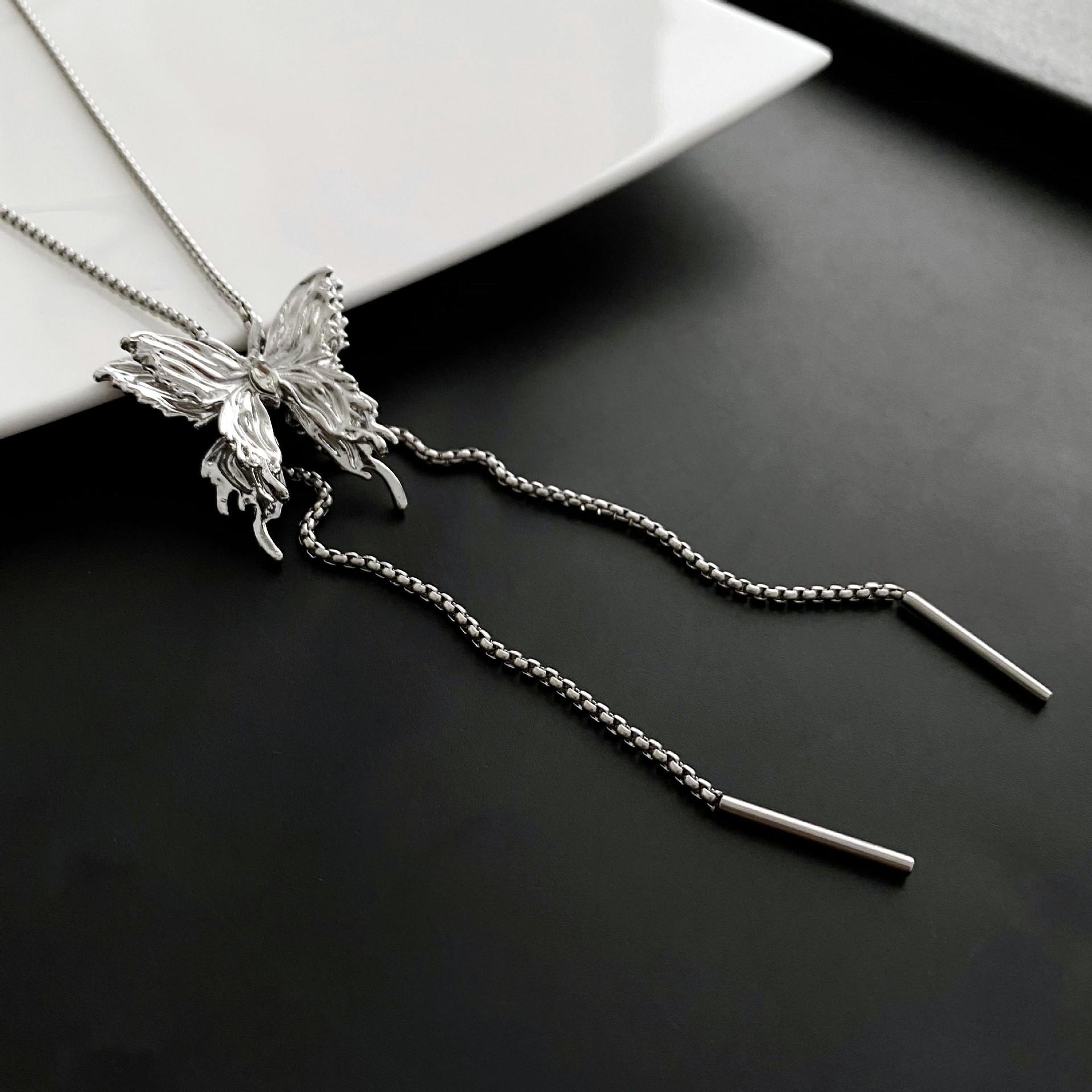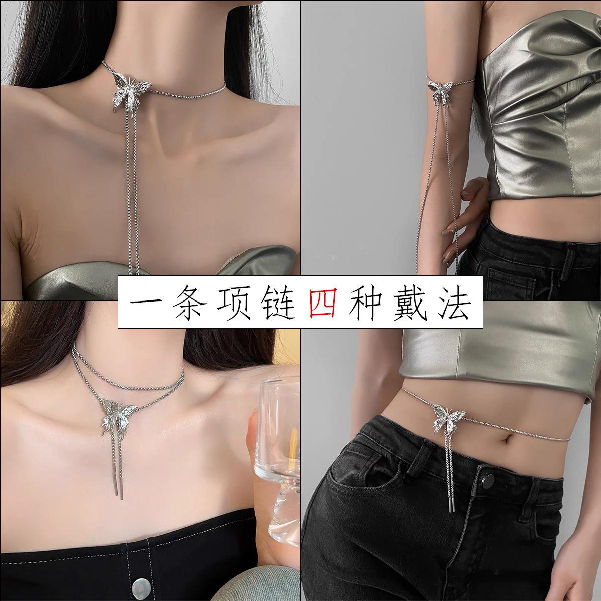 Collar Largo Ajustable de Mariposa Líquida para Mujer Moda 2024 Cadena de Clavícula de Alto Sentido
