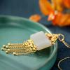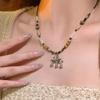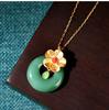 Collar de clavícula de diseño creativo chino retro, estilo palaciego chapado en oro cobre, imitación jade Hetian, venta caliente de feria de templo de puesto, moda nacional