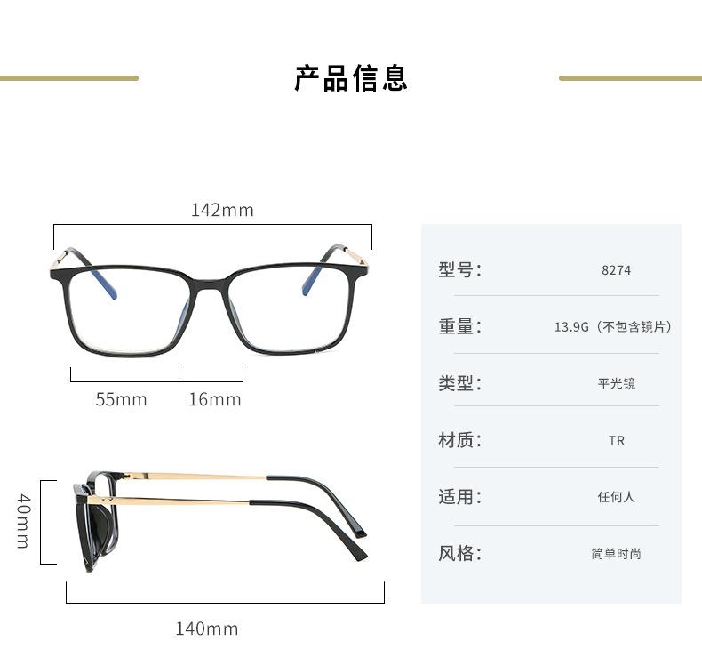 Nueva caja de estilo coreano con marco de gafas anti-luz azul TR90, lentes planas ultraligeras, los estudiantes varones pueden equiparse con marco de gafas para miopía