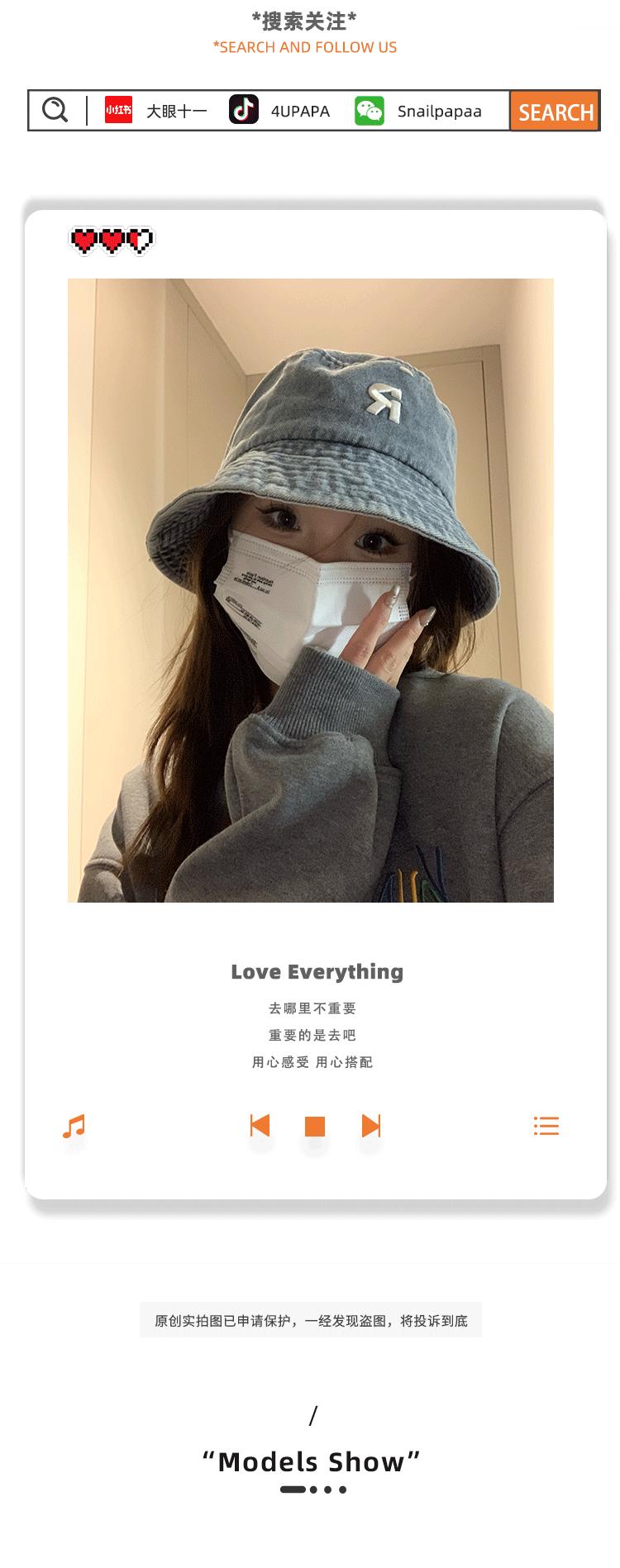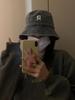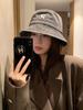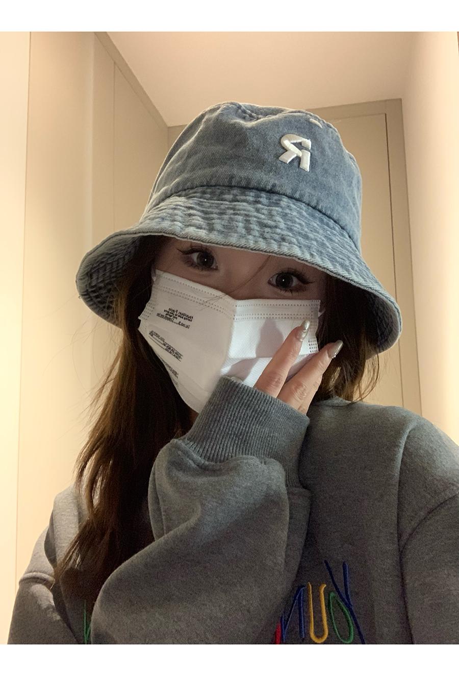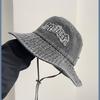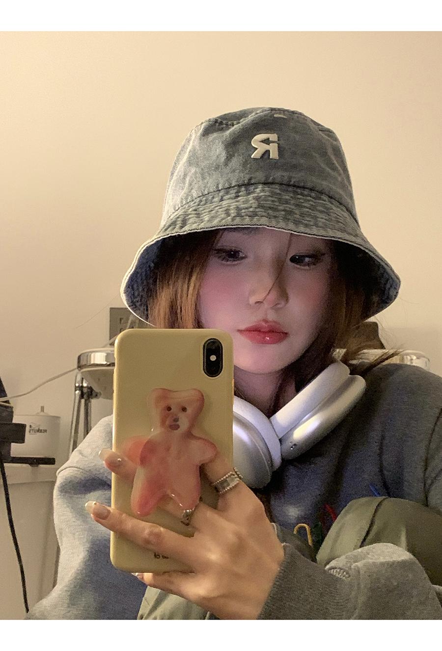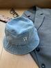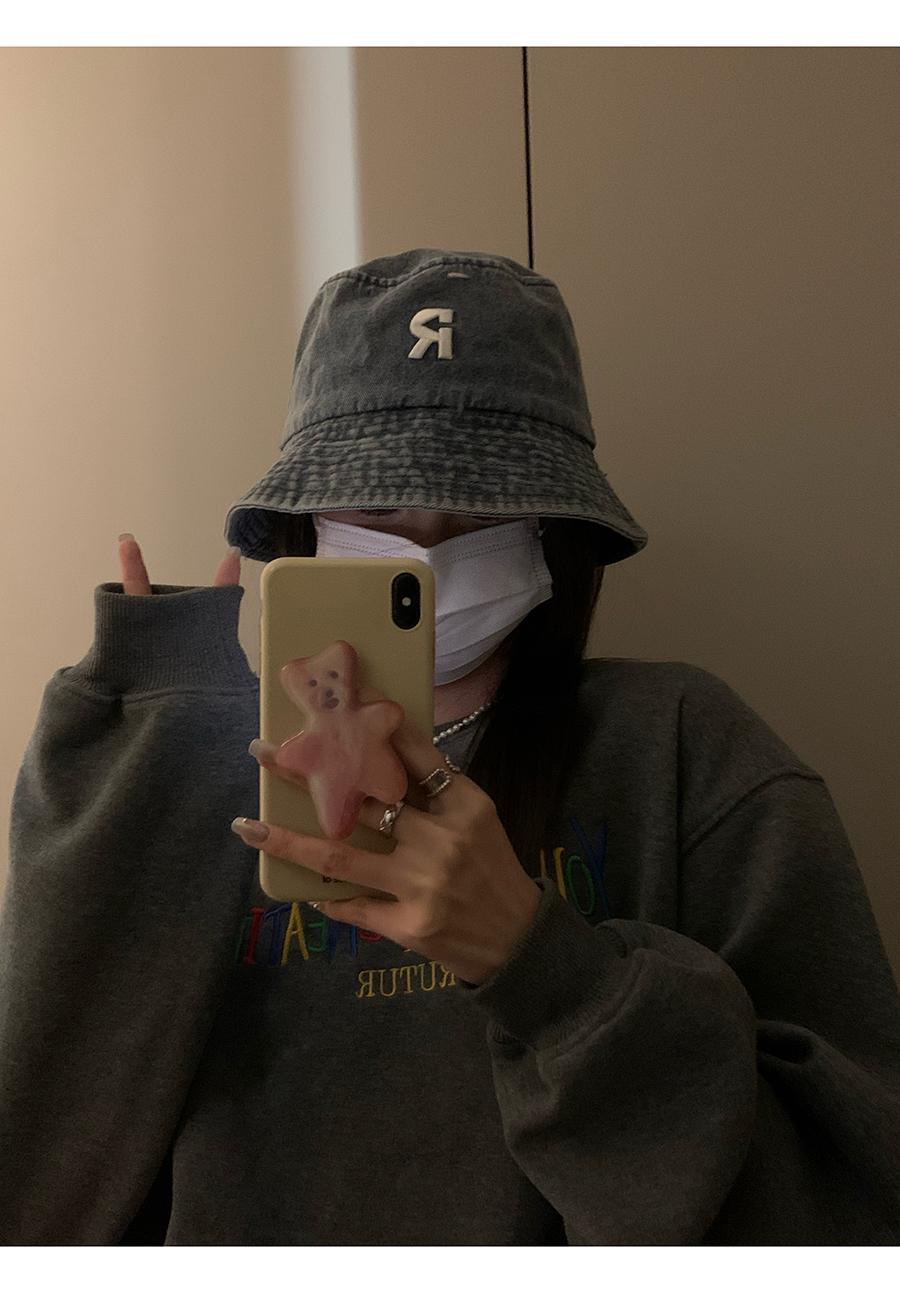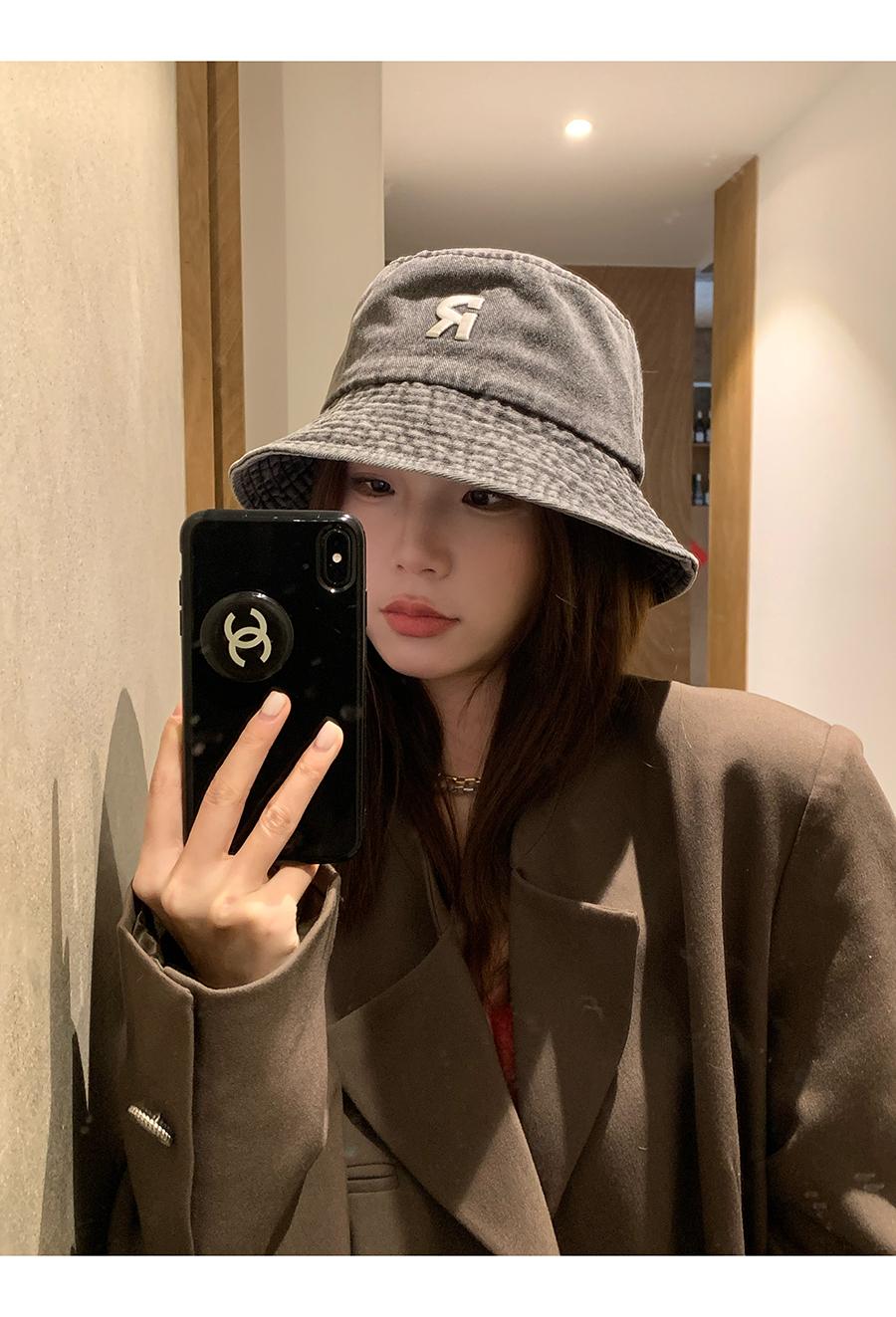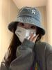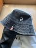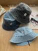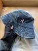Sombrero de pescador vaquero lavado con letra R para mujer, primavera 2023, informal, combinable, con cabeza grande y cara pequeña.