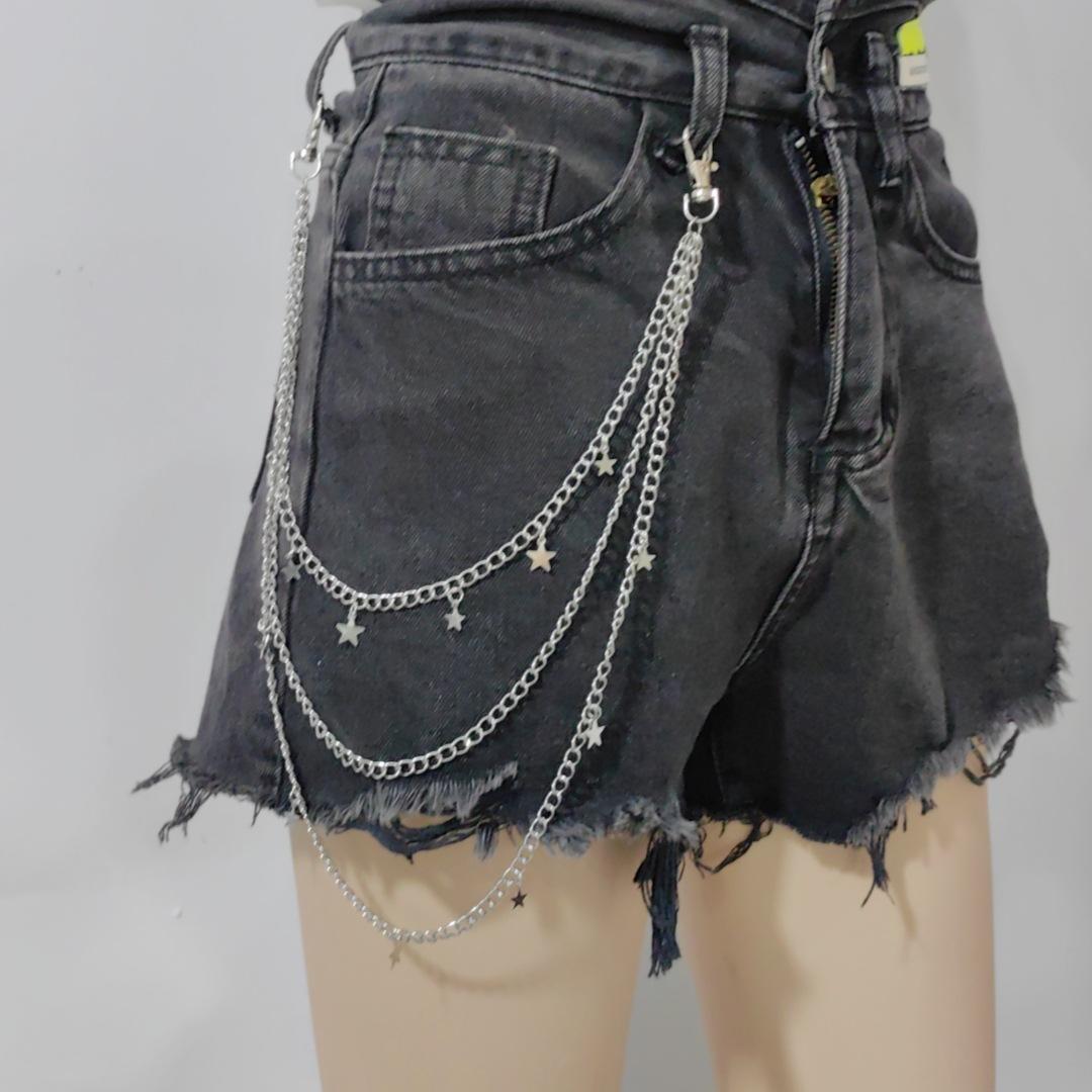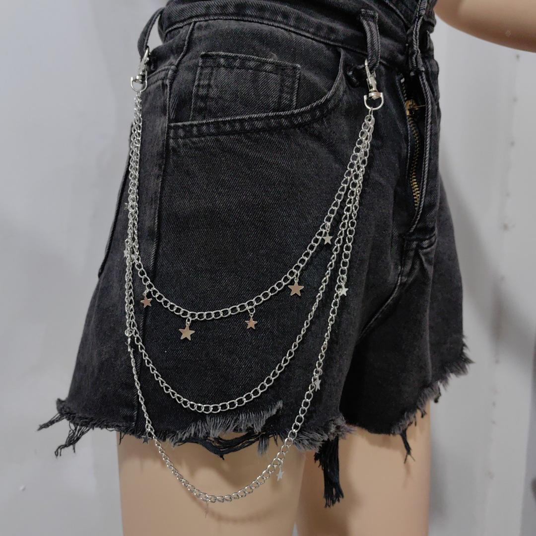 Cadena de metal para cintura de jeans, estilo punk transfronterizo europeo y americano, para hombres y mujeres, con cadena colgante y decoración de estrella que combina con todo.