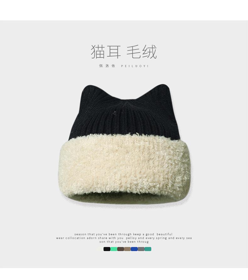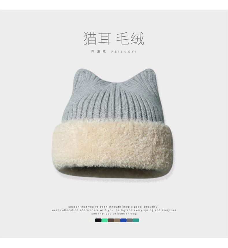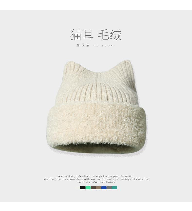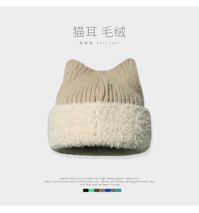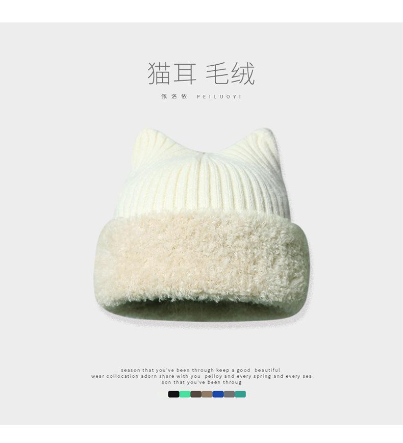 Gorro con orejas de gato para mujer, gorro de lana con costuras de felpa gruesas de invierno para niña, orejeras cálidas, gorro frío