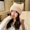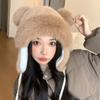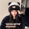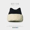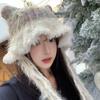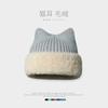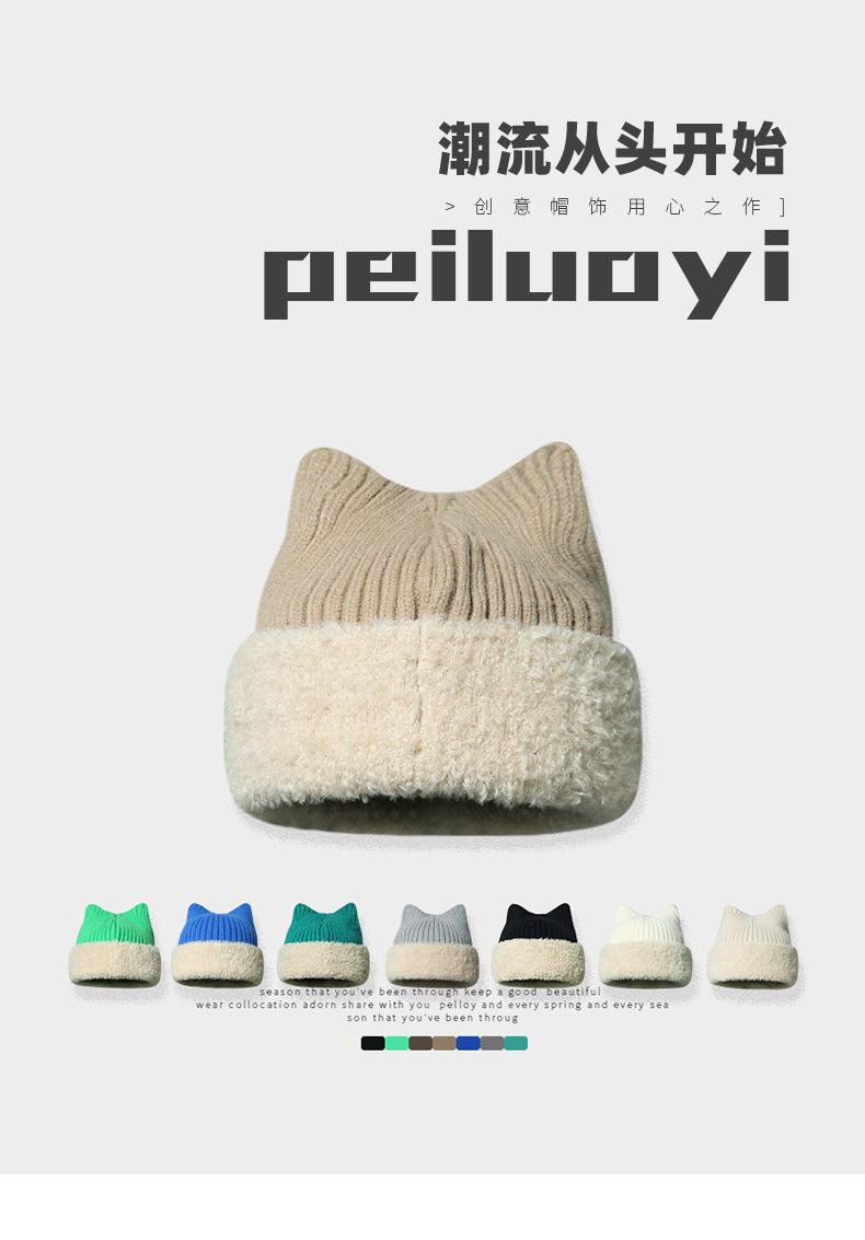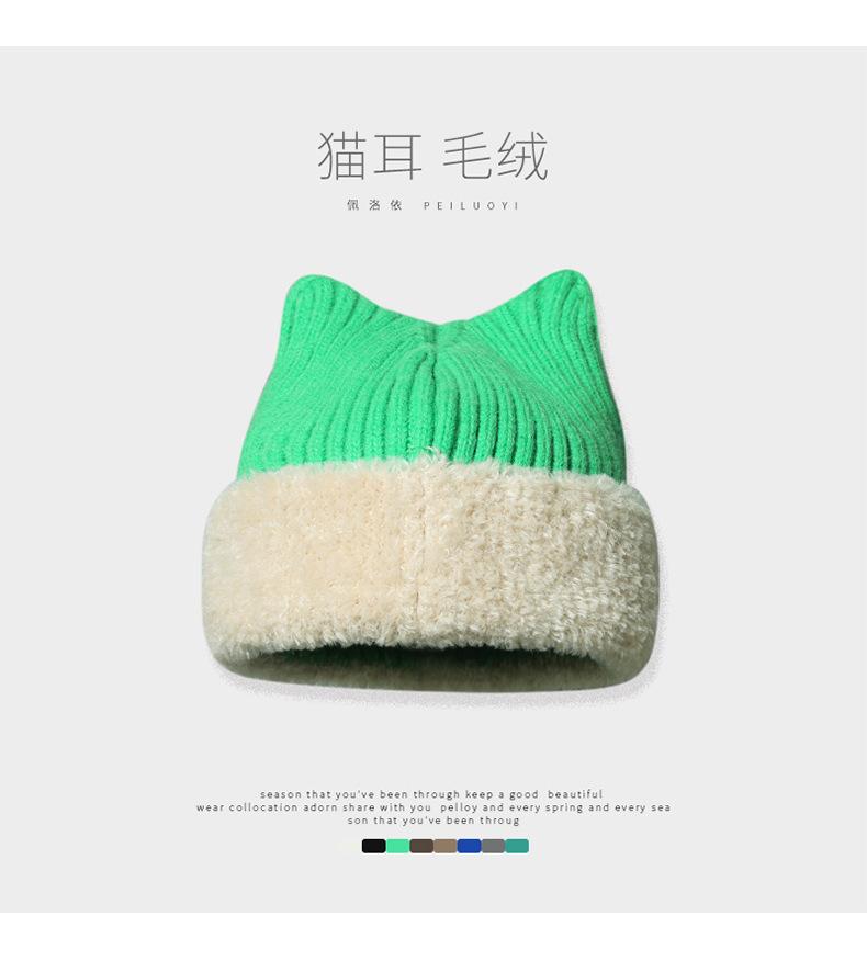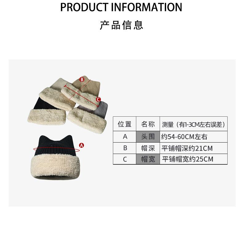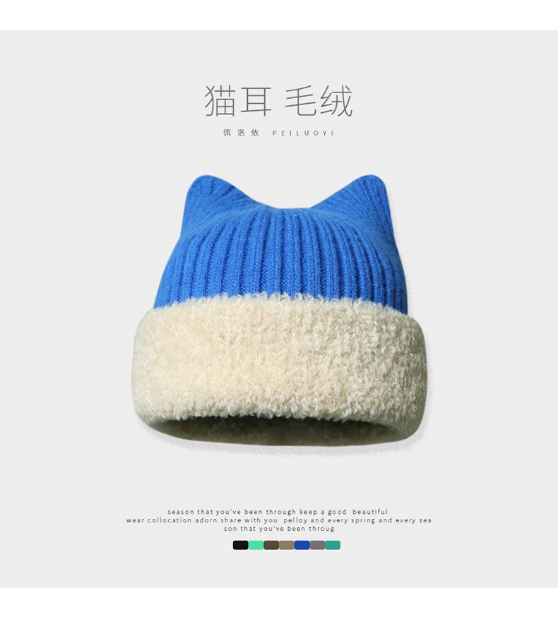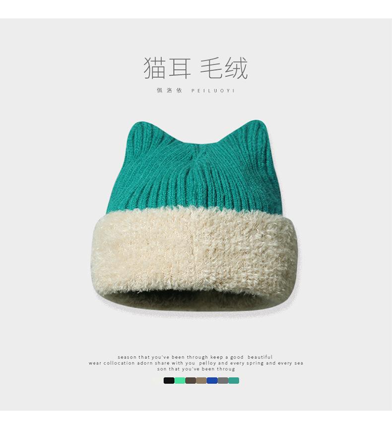 Gorro con orejas de gato para mujer, gorro de lana con costuras de felpa gruesas de invierno para niña, orejeras cálidas, gorro frío