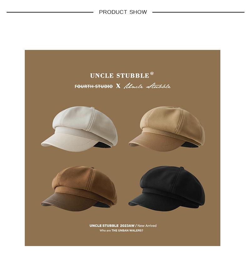 Sombrero octogonal de lana estilo coreano para otoño e invierno, retro elegante, que hace que la cara parezca pequeña, boina para niña, estilo japonés literario, sombrero de periódico, sombrero infantil, moda para hombre