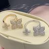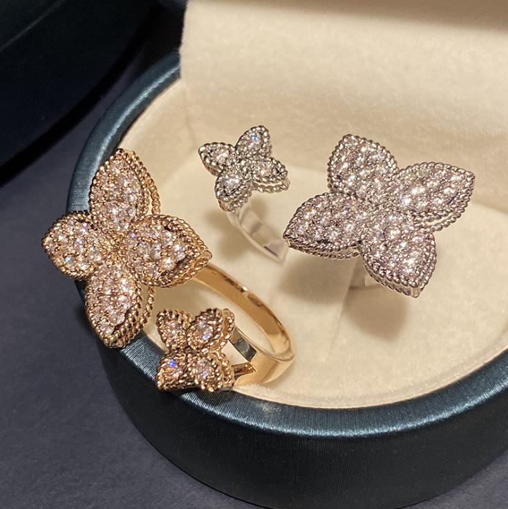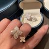 | Temperamento de mujer con incrustaciones de diamantes completos, collar de pendientes de trébol de cuatro hojas hueco versátil de celebridad de Internet, conjunto de pendientes y collares de moda y lujosos |