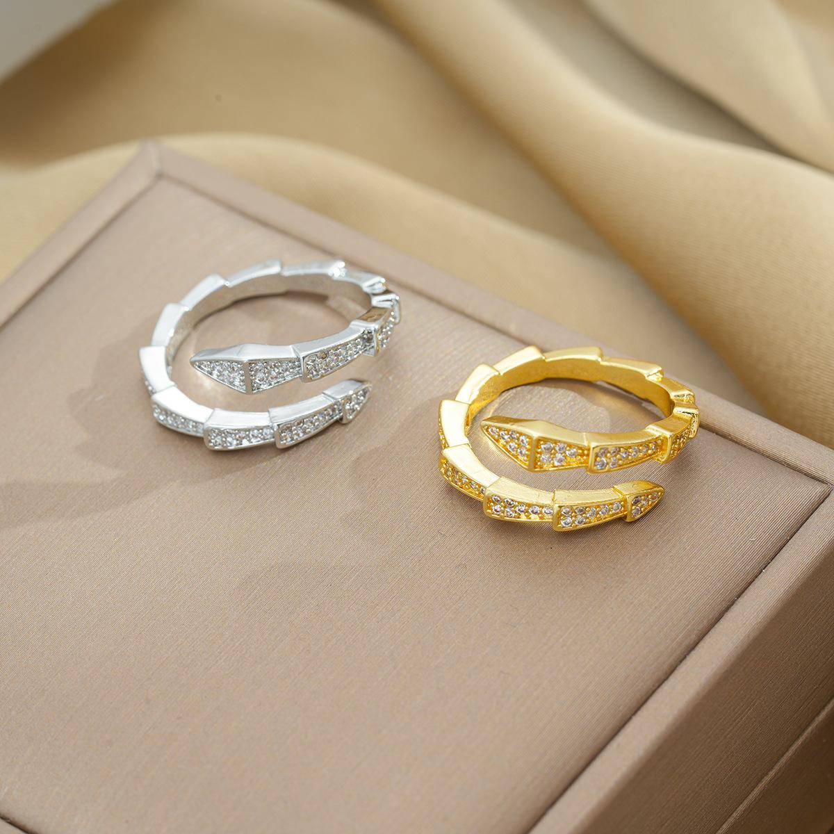 Anillo de serpiente con apertura de diamante completo para mujer, moderno, personalizado, diseño de nicho, ligero, lujoso, estilo frío, anillo de hueso de serpiente.