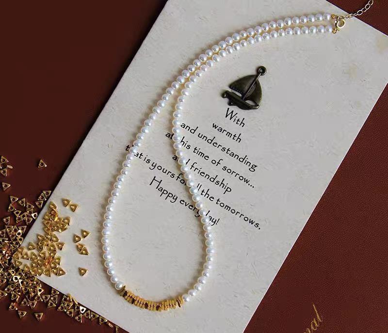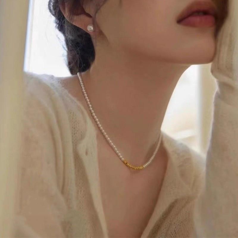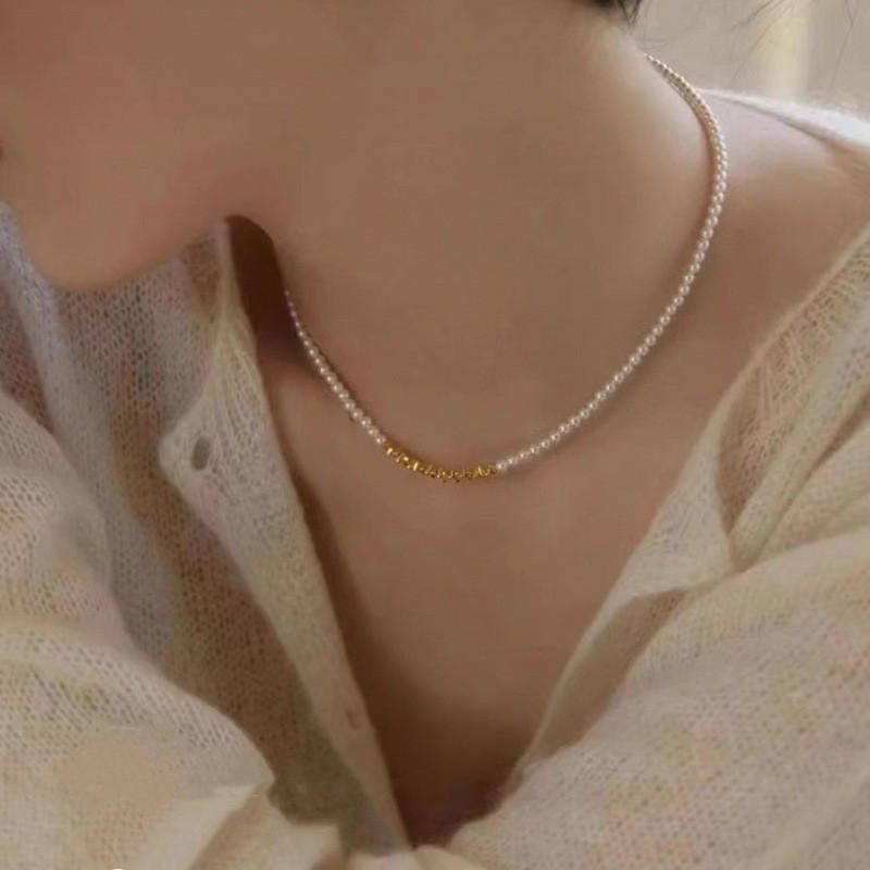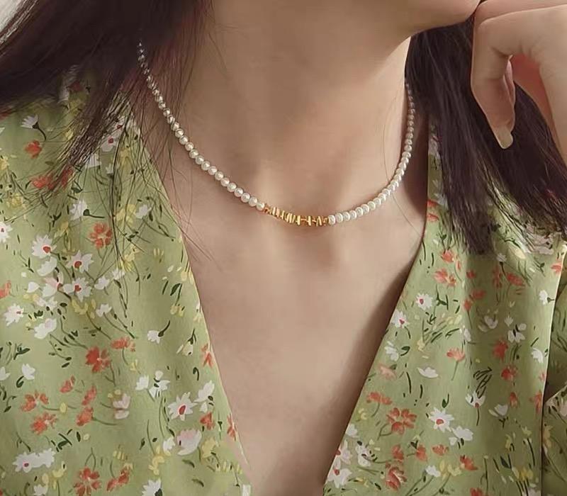 Collar cuadrado pequeño de perlas, nuevo, de alta gama, ligero, de lujo, combinable, elegante, cadena de clavícula, estilo nicho americano.