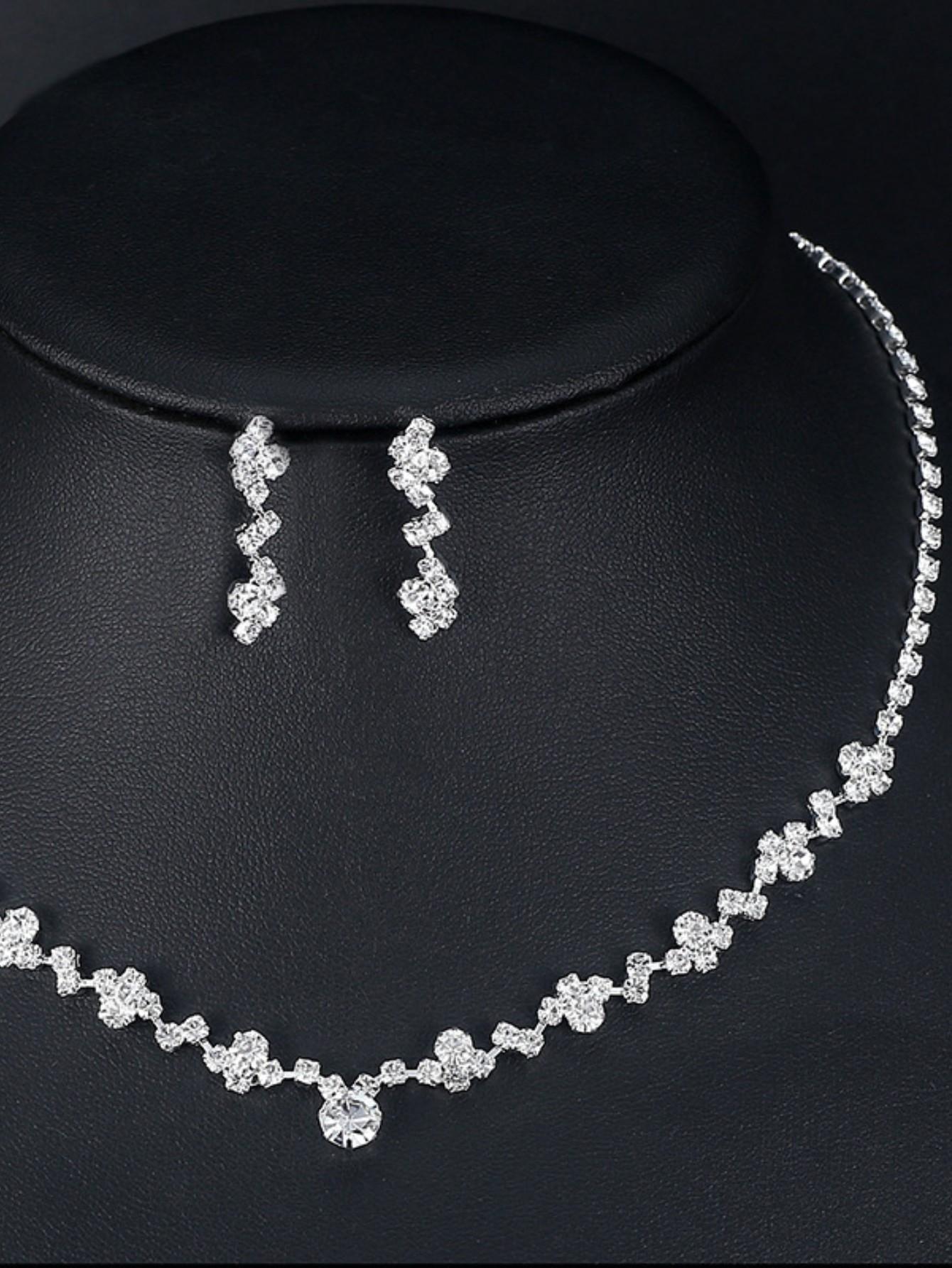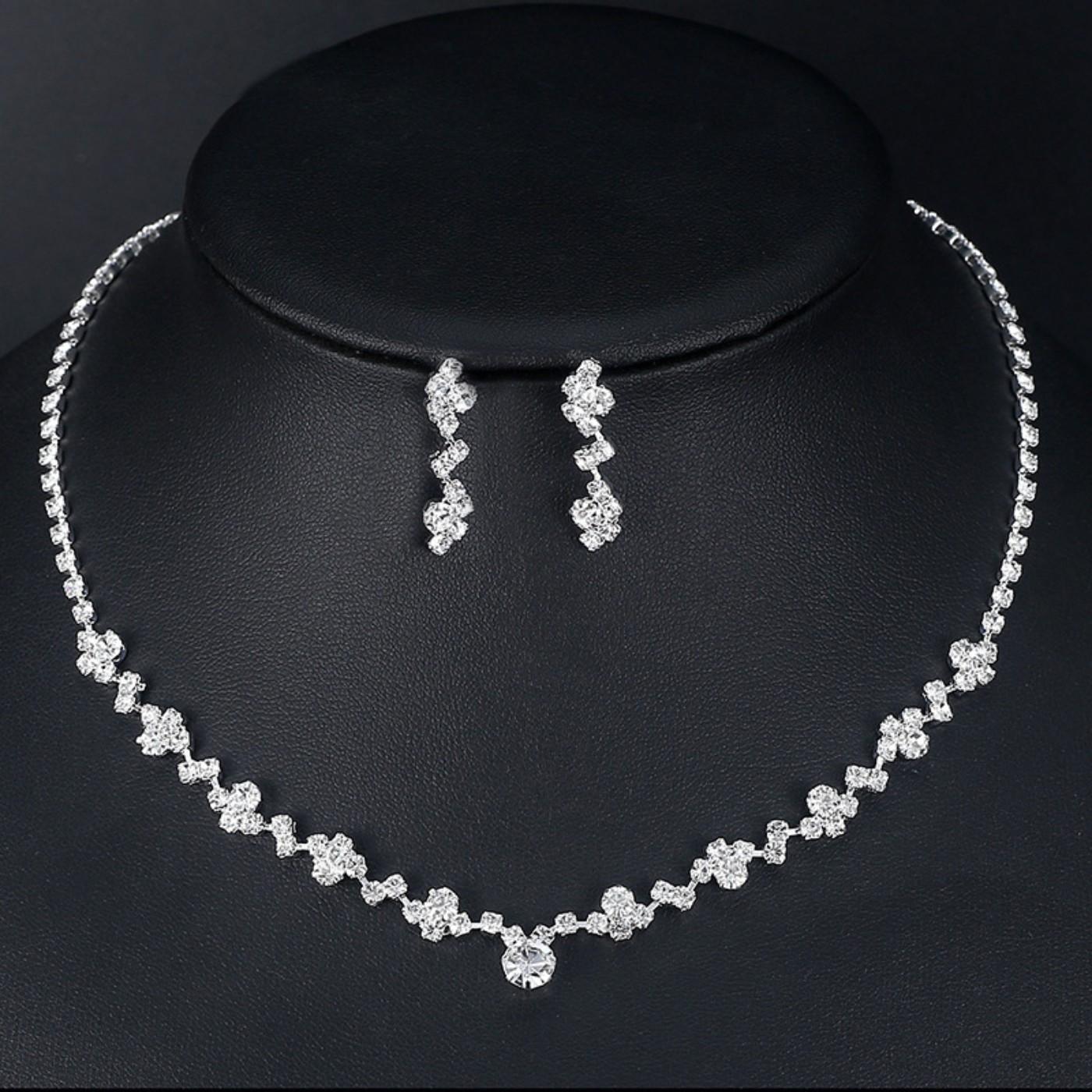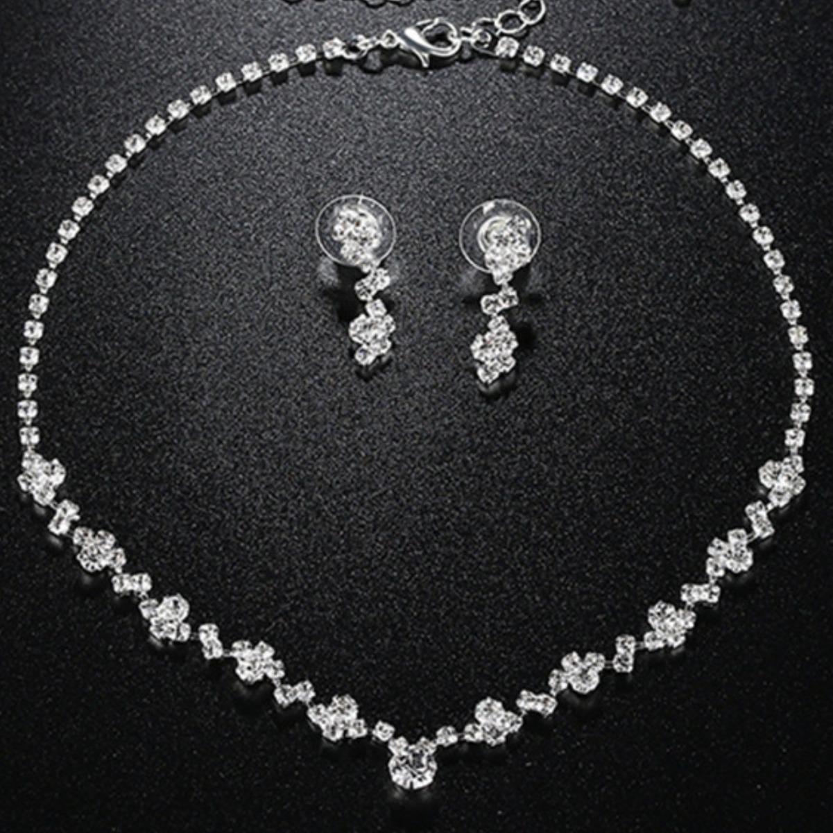 Traje de novia europeo y americano, accesorios de boda, cadena de garra sencilla, elegante, pendientes de diamantes brillantes, collar, traje de mujer