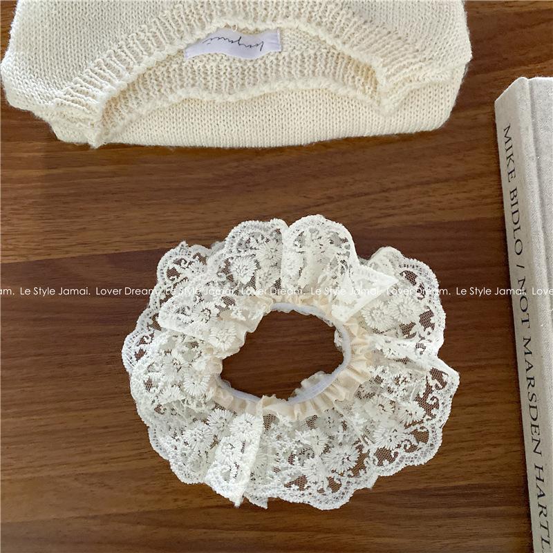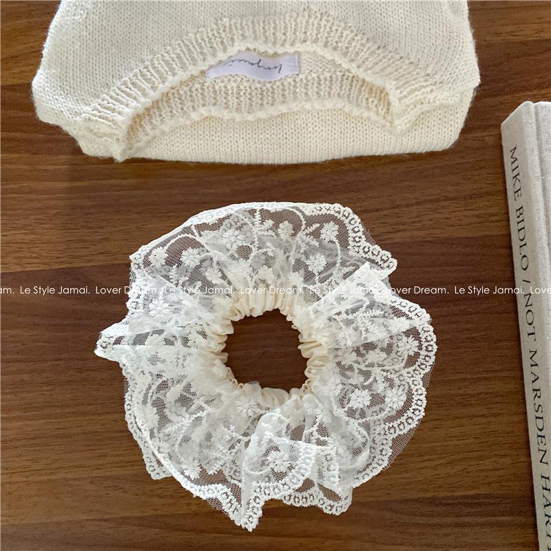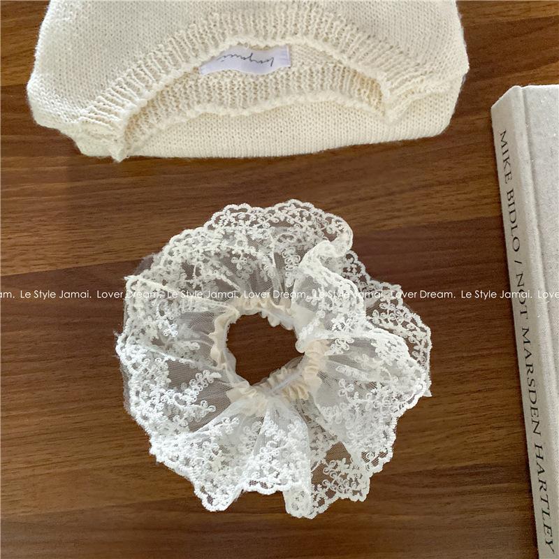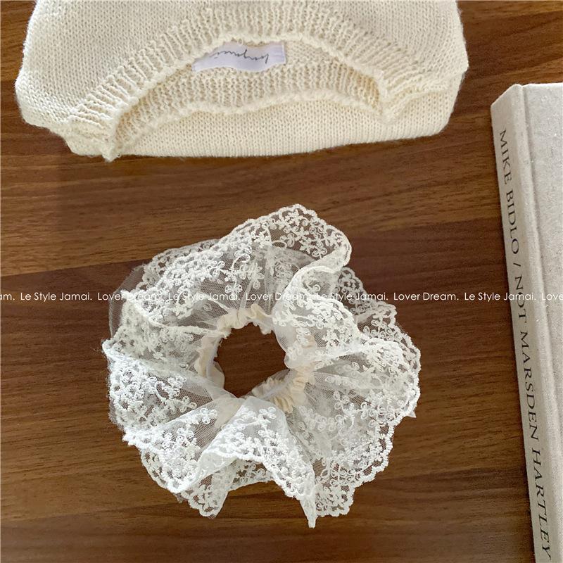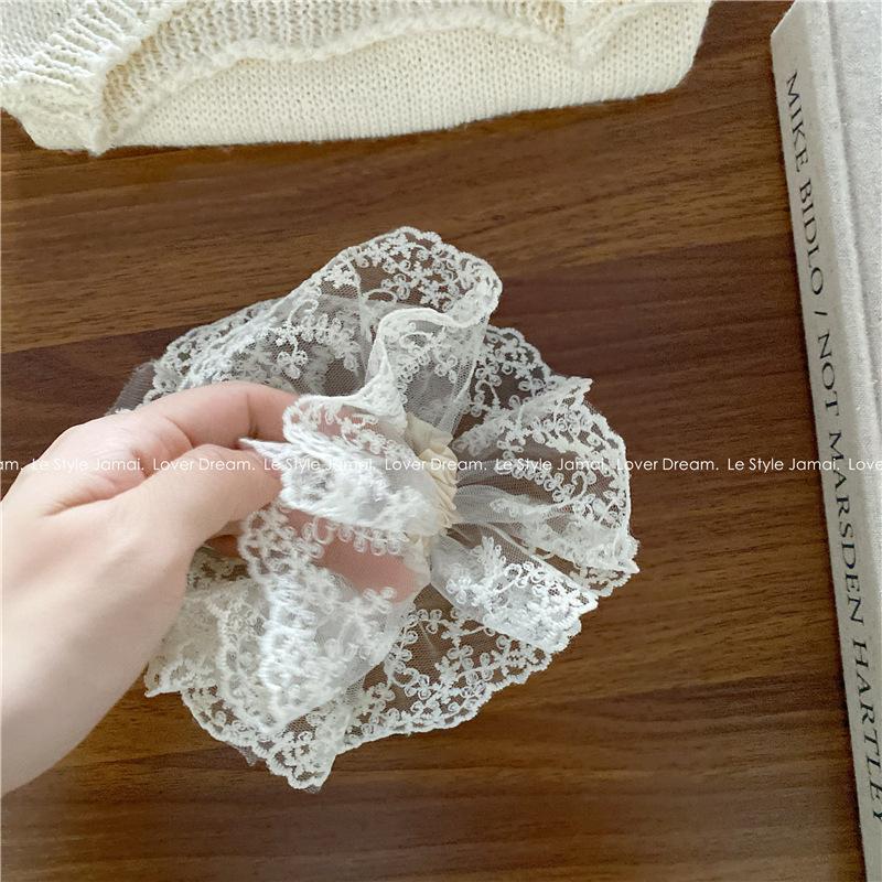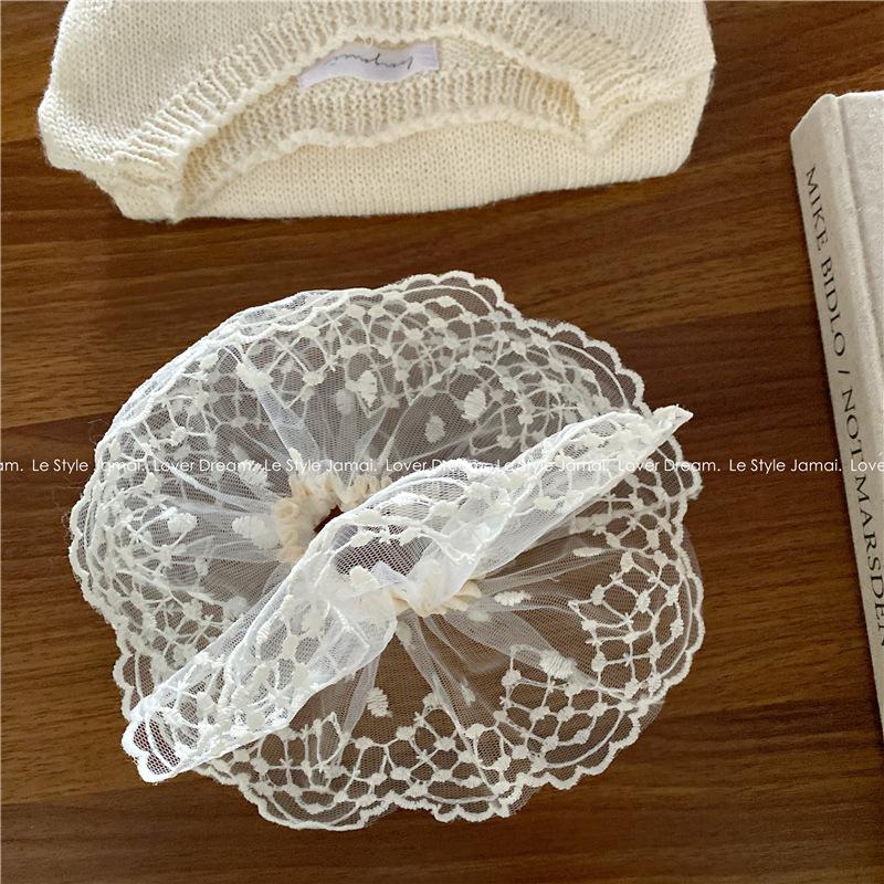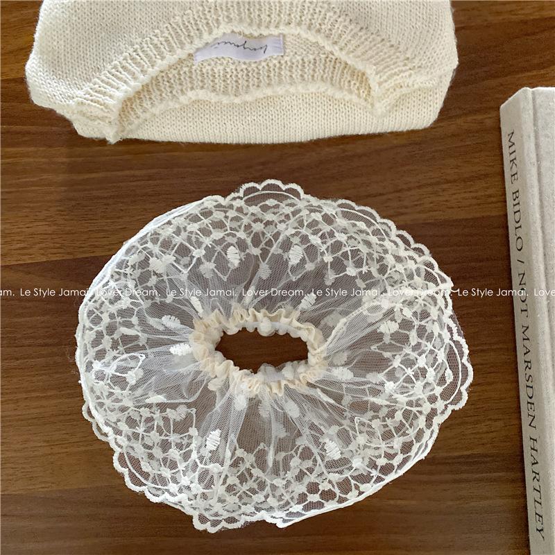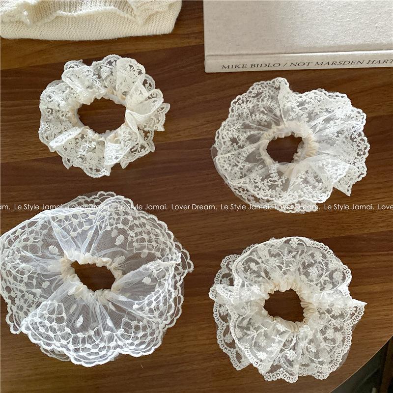 Corea del Sur, nueva súper hada, flor de encaje blanco, aro para el cabello de intestino grueso, dulce tocado de cola de caballo para niña, accesorios para el cabello para mujer