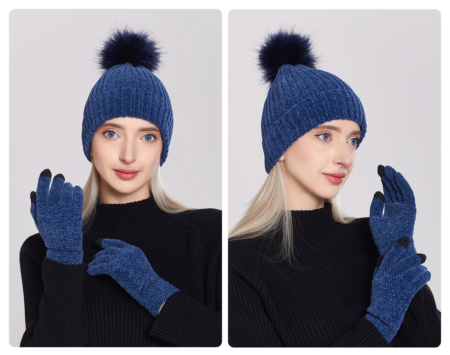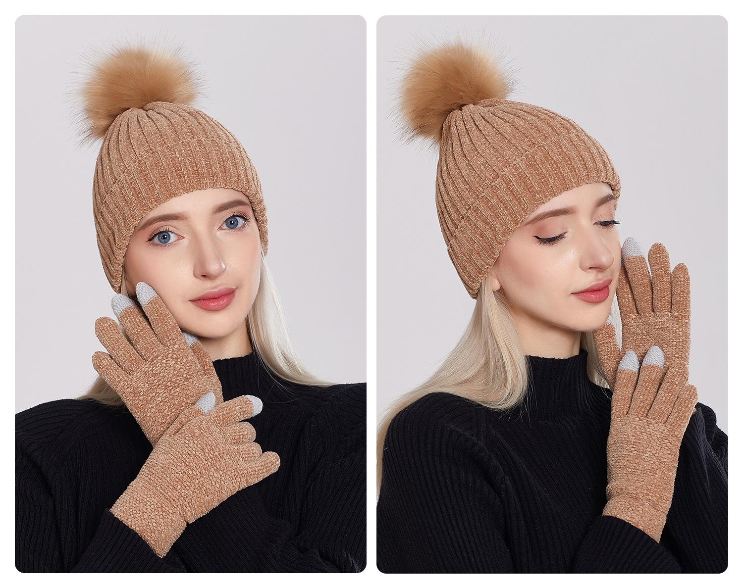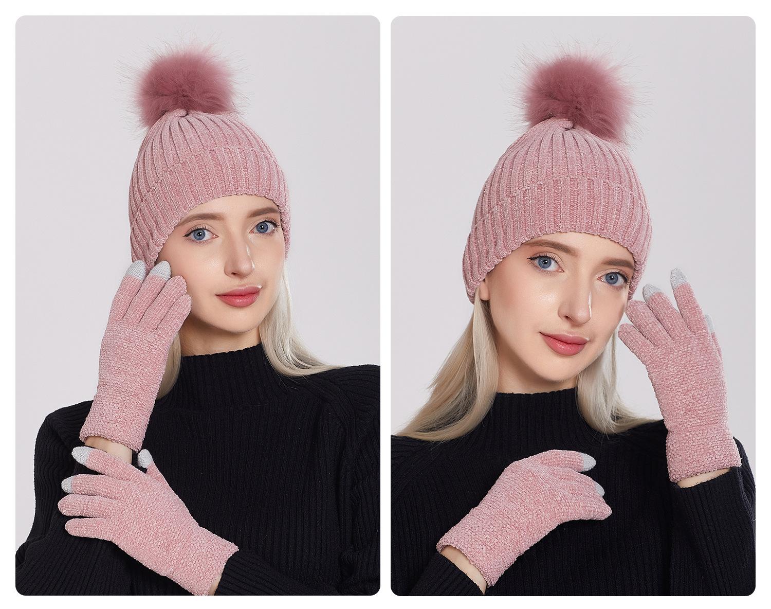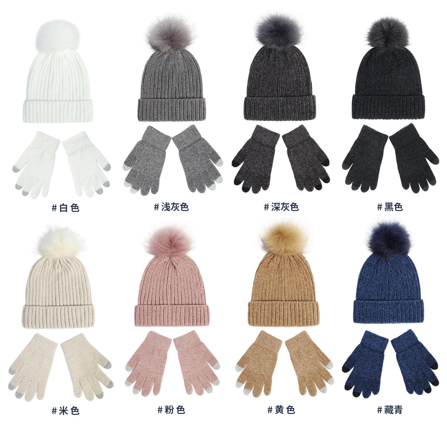Gorro de punto para mujer 2022 nuevo conjunto de gorro y guantes de lana de chenilla gorro de bola de lana grueso y cálido otoño e invierno |