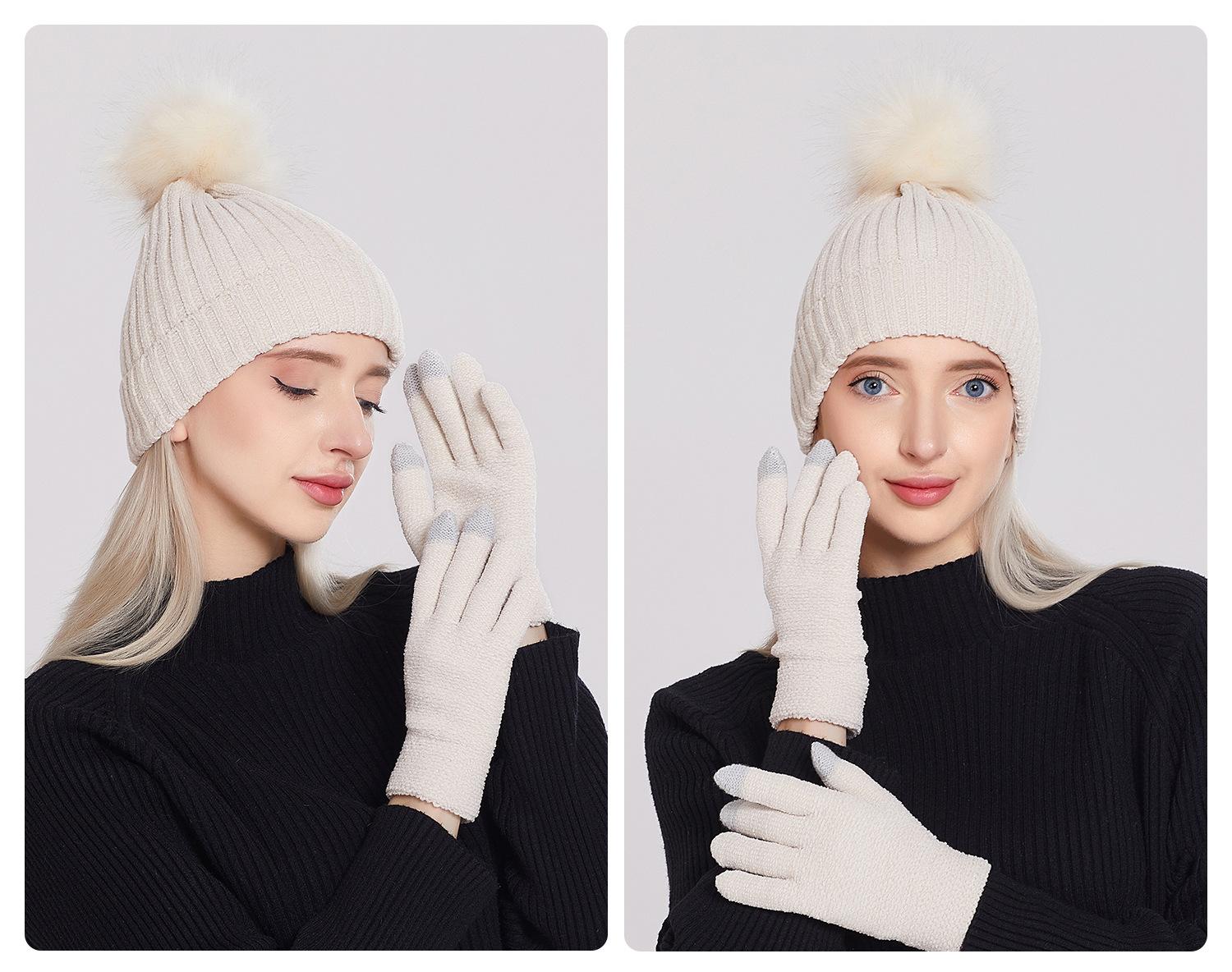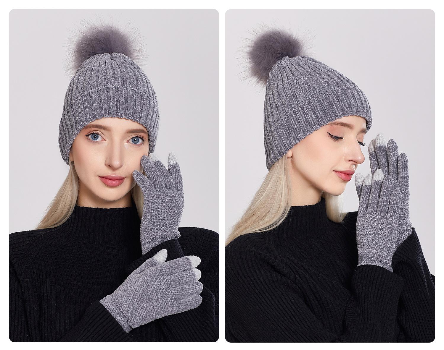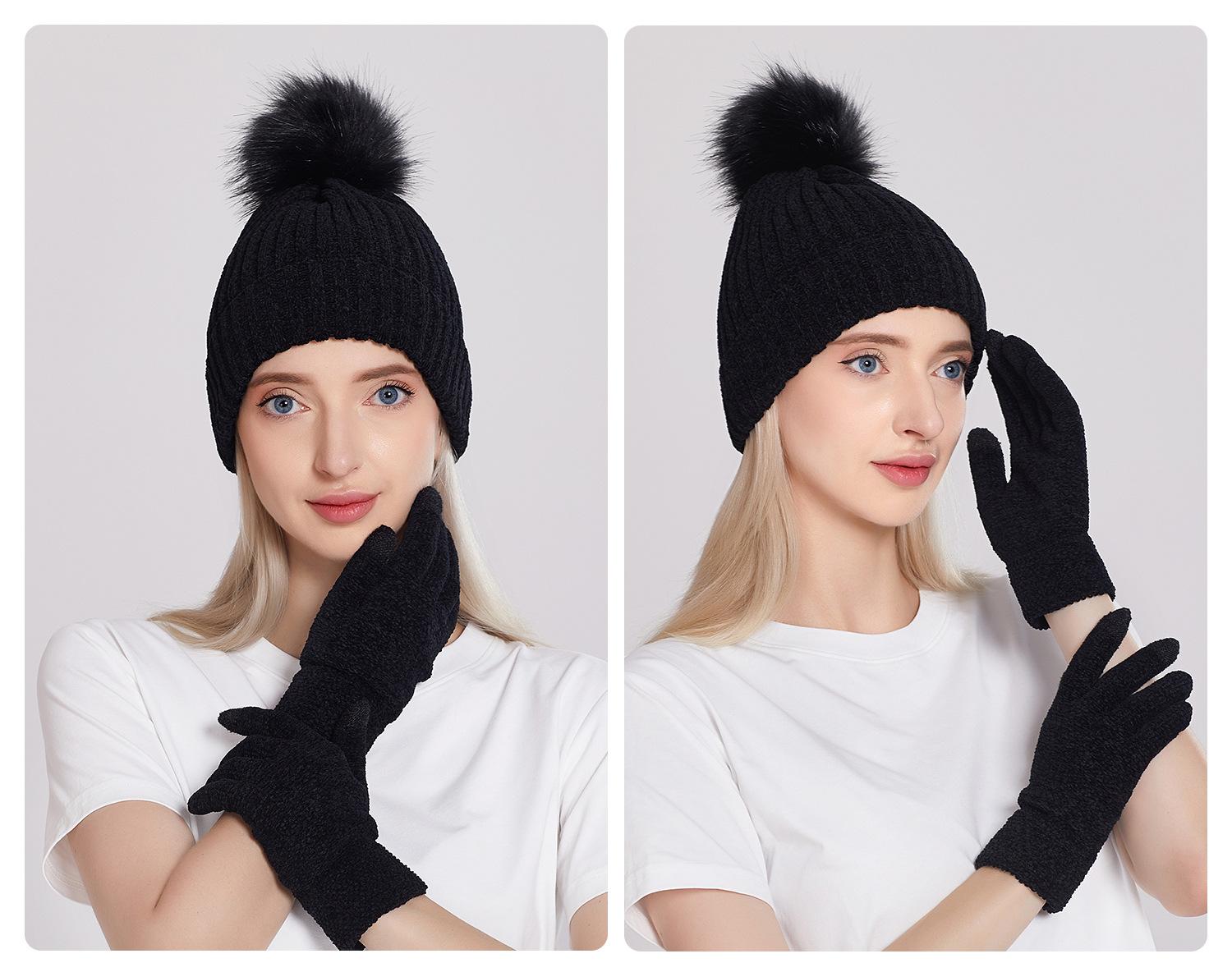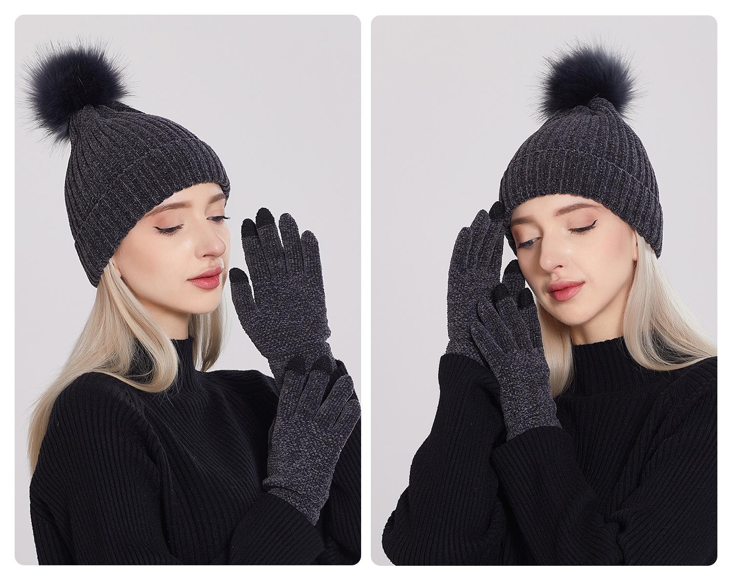 Gorro de punto para mujer 2022 nuevo conjunto de gorro y guantes de lana de chenilla gorro de bola de lana grueso y cálido otoño e invierno |