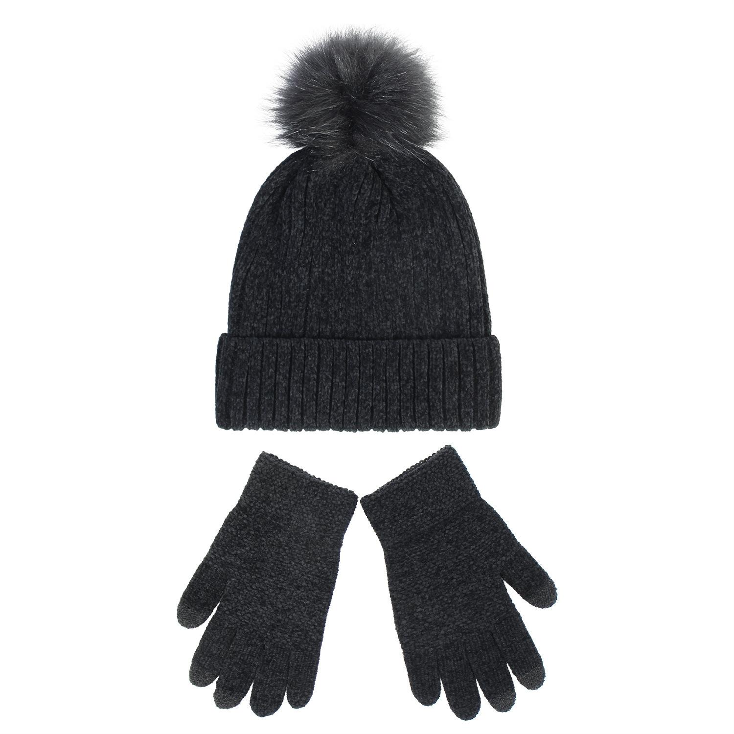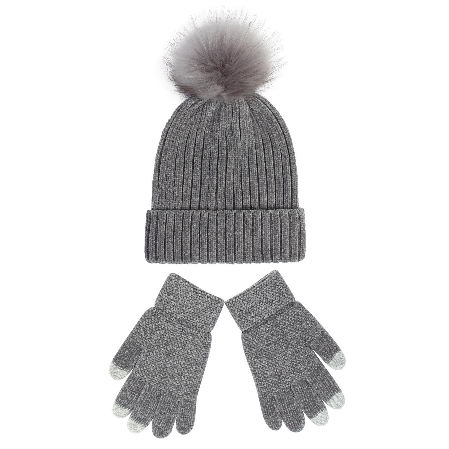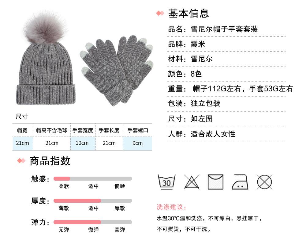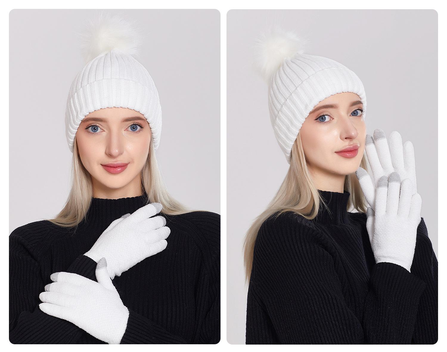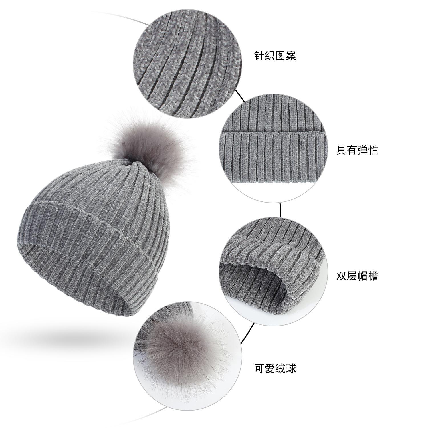 Gorro de punto para mujer 2022 nuevo conjunto de gorro y guantes de lana de chenilla gorro de bola de lana grueso y cálido otoño e invierno |