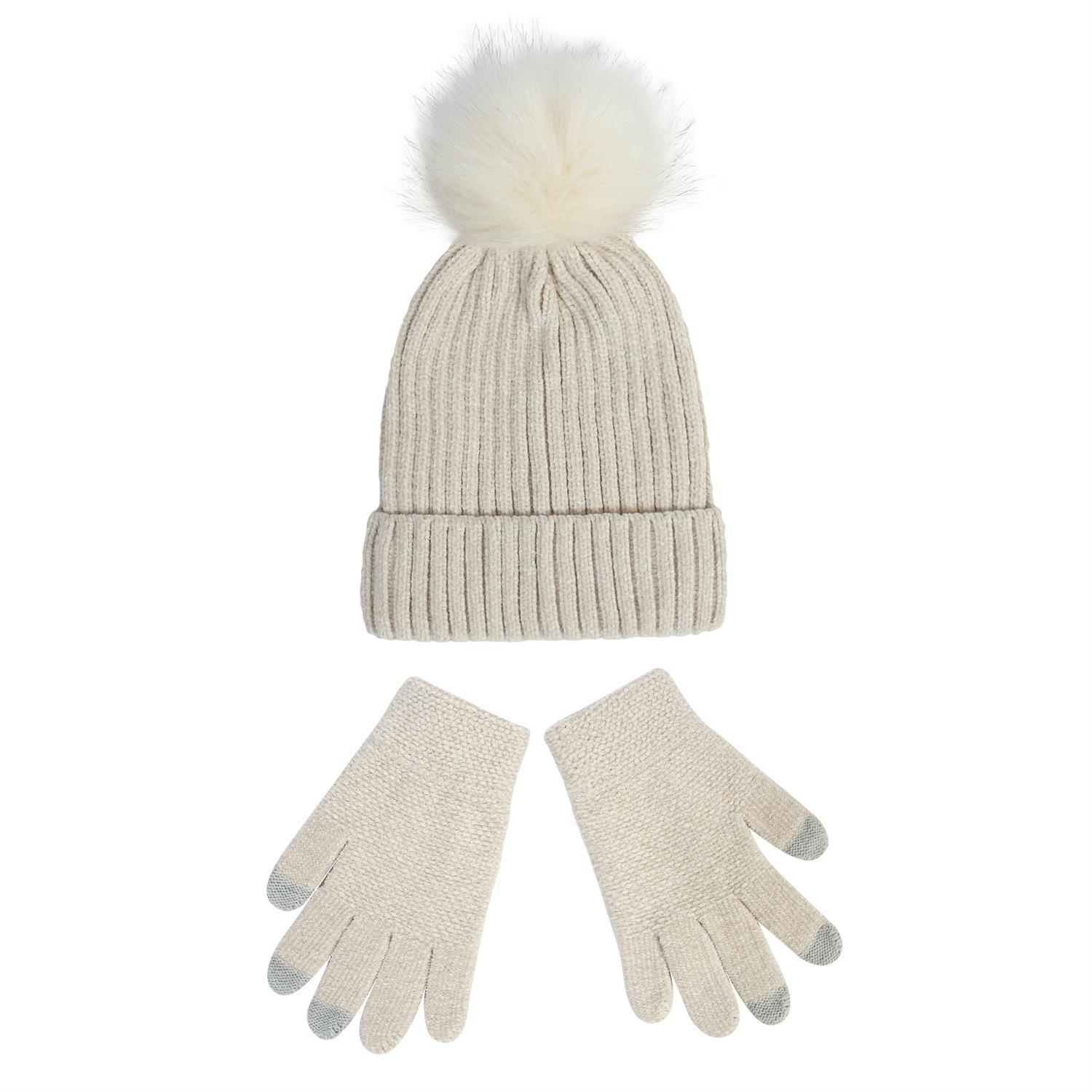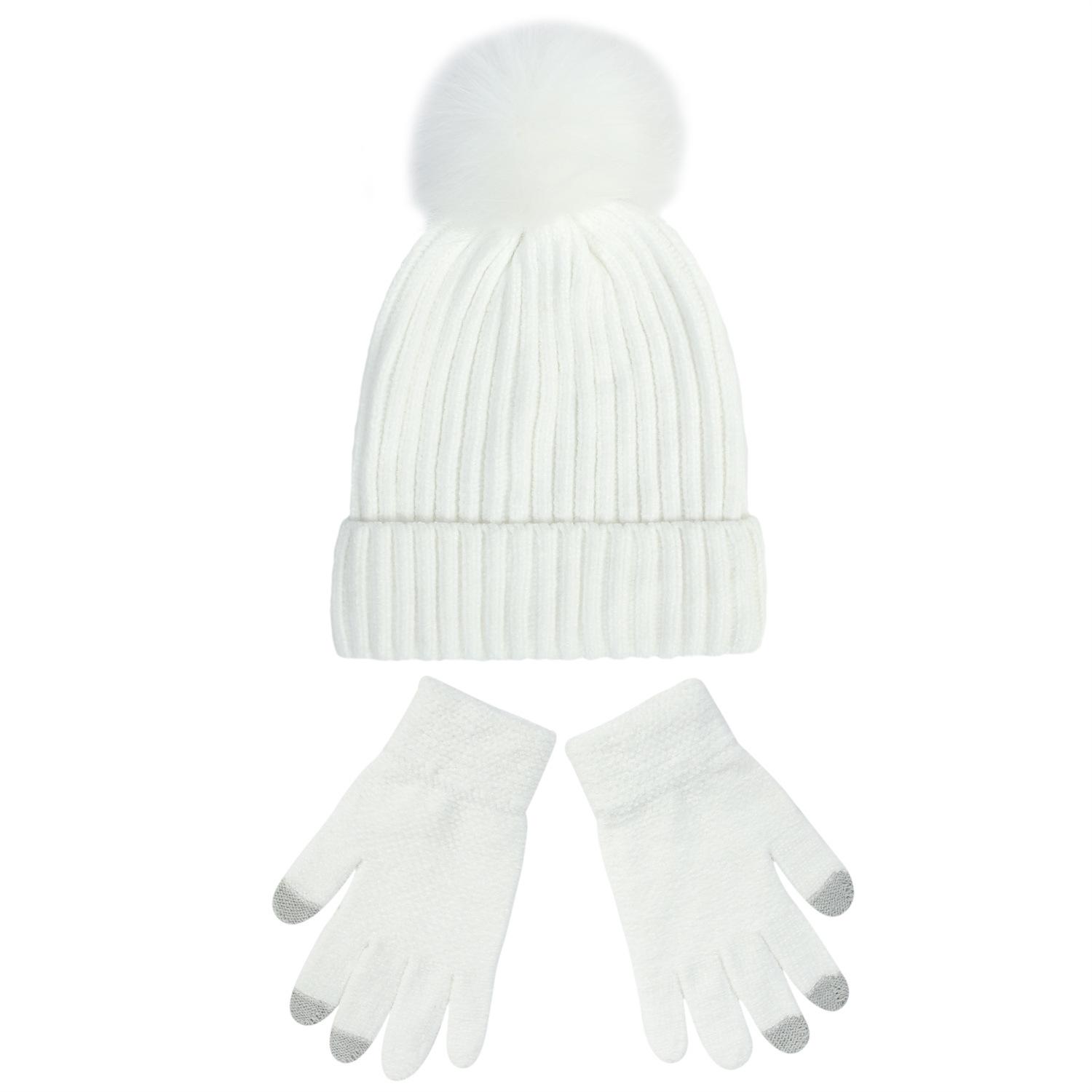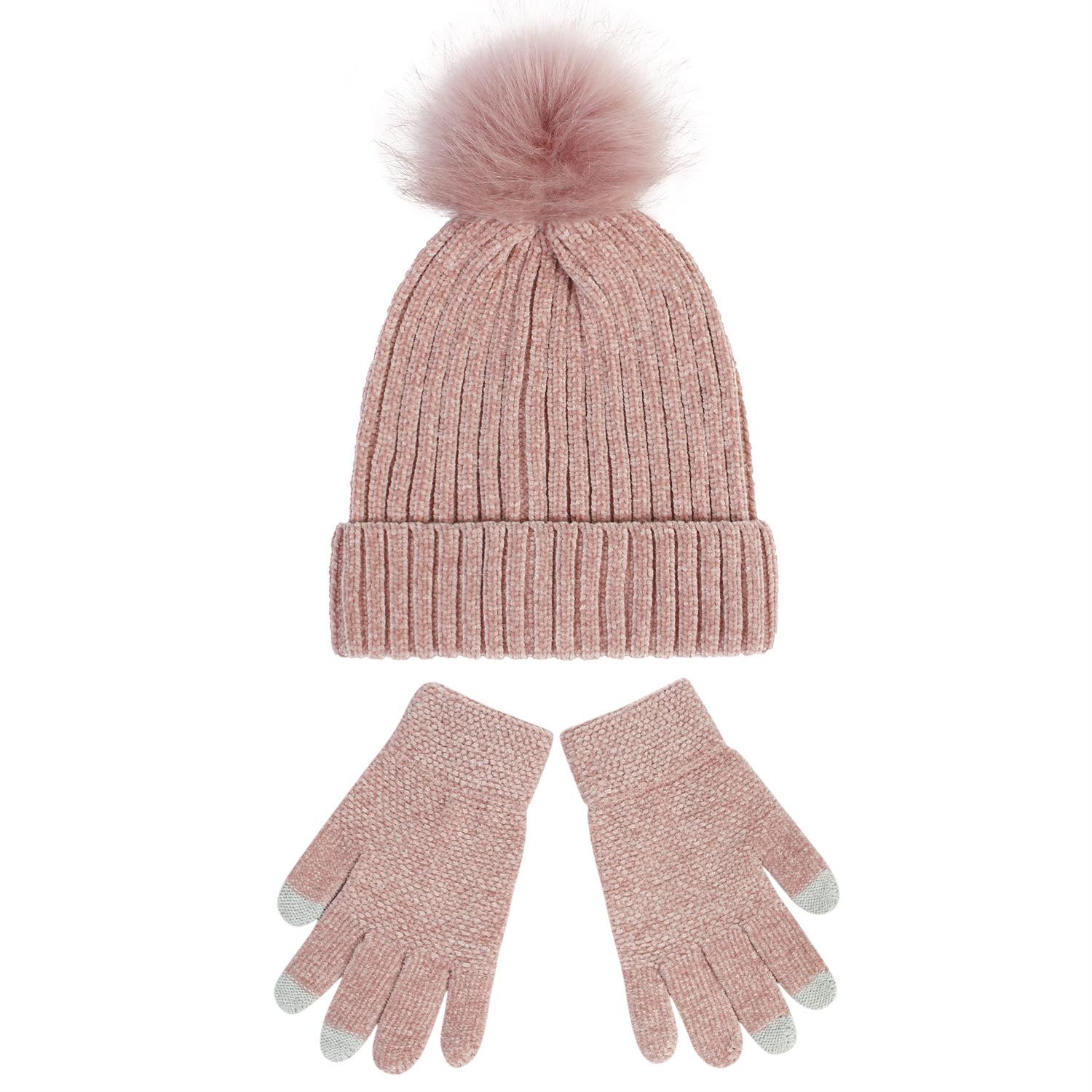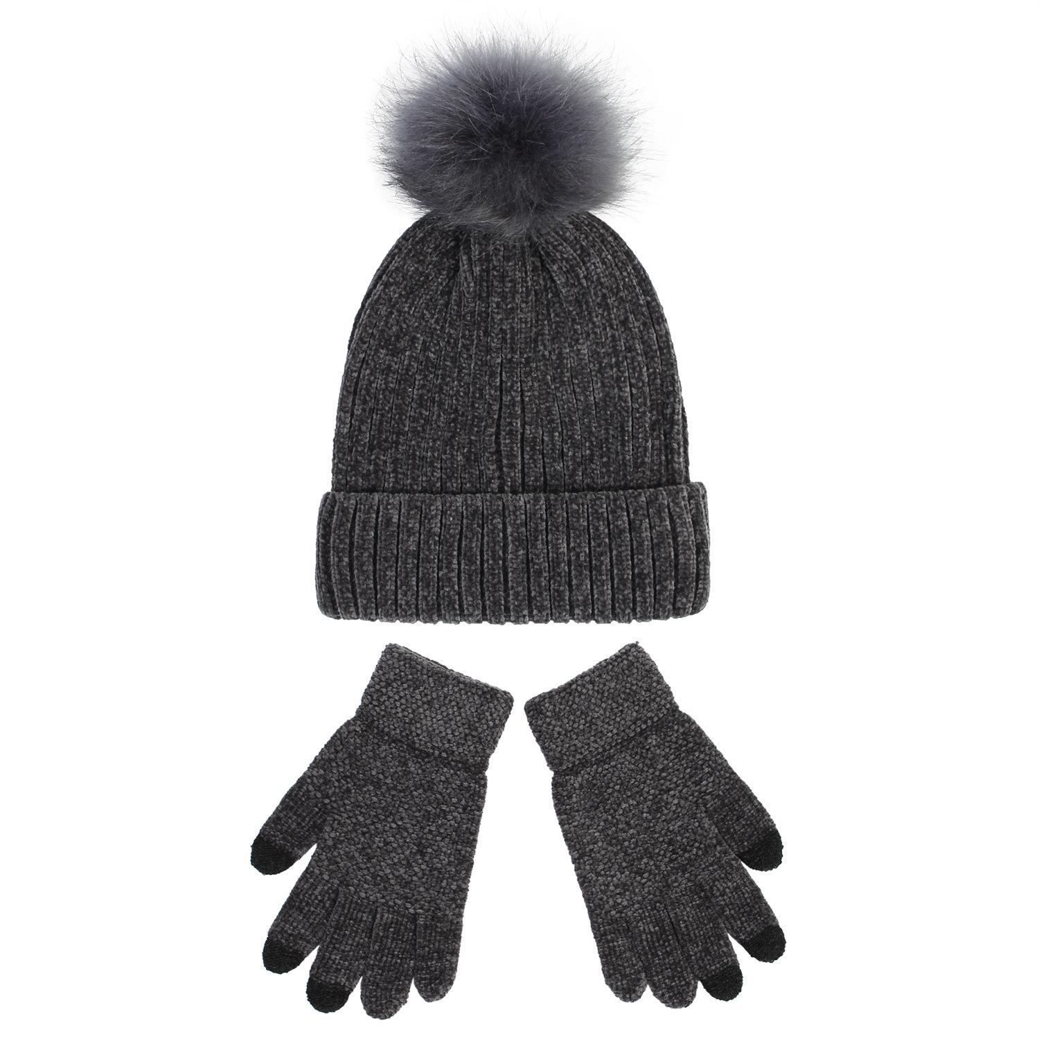 Gorro de punto para mujer 2022 nuevo conjunto de gorro y guantes de lana de chenilla gorro de bola de lana grueso y cálido otoño e invierno |