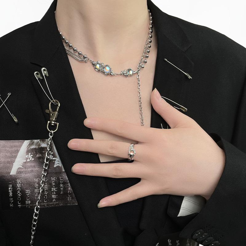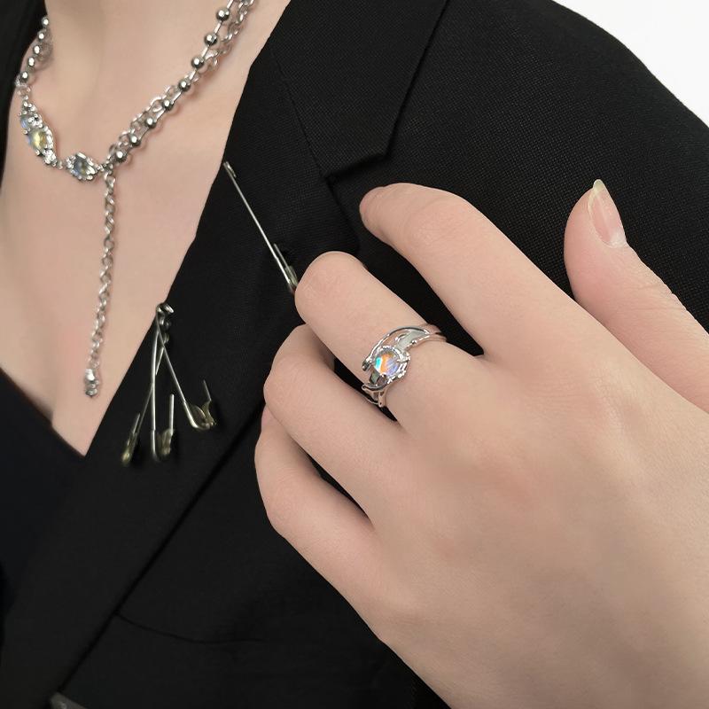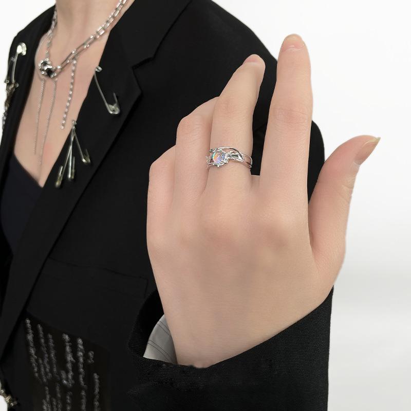 Anillo de mujer moderno y genial con diseño de nicho de línea abierta simple de piedra lunar, estilo coreano, lujo ligero, sensación de alta gama, personalidad.