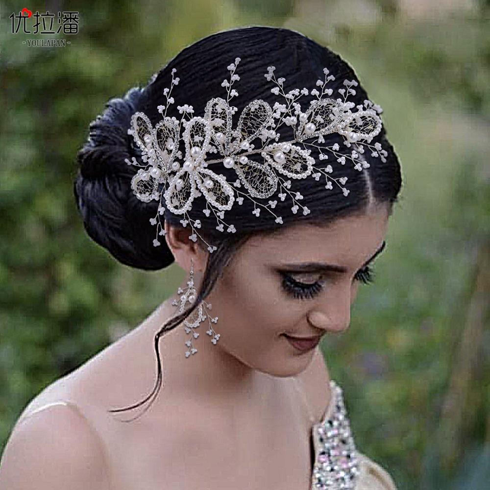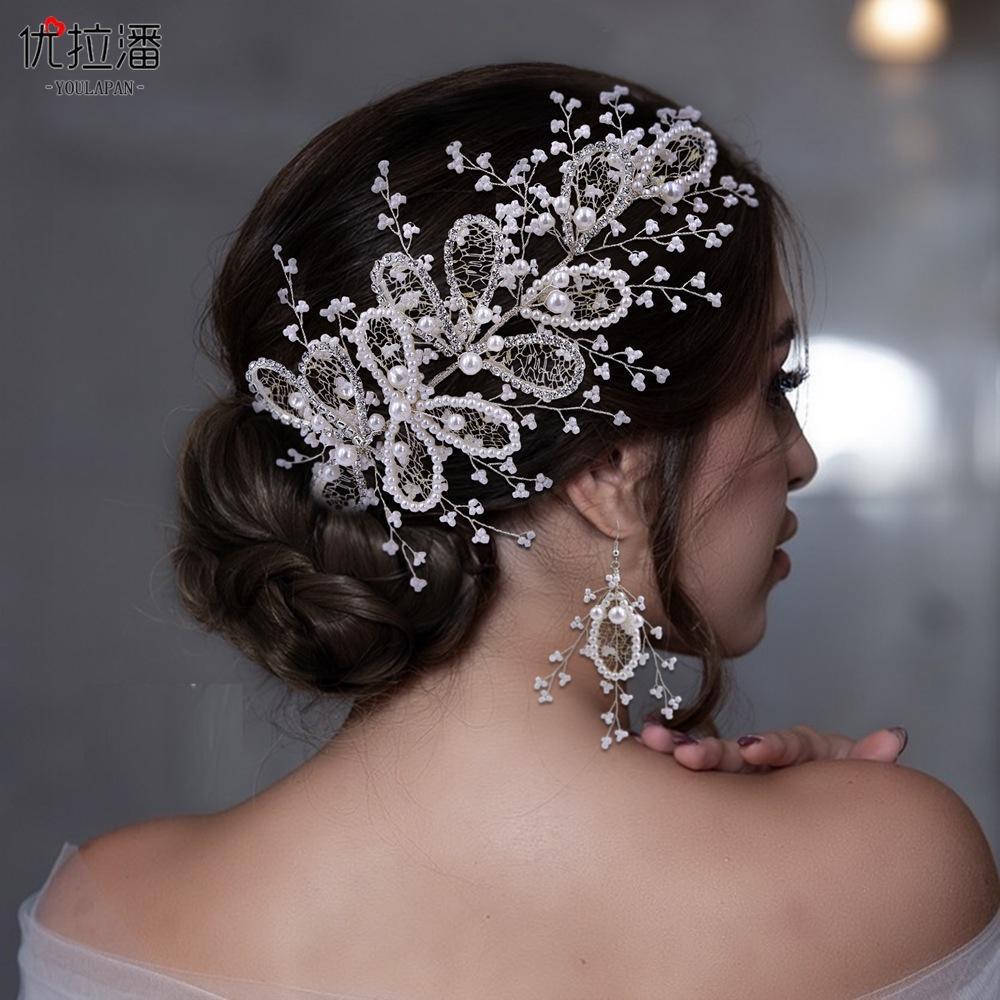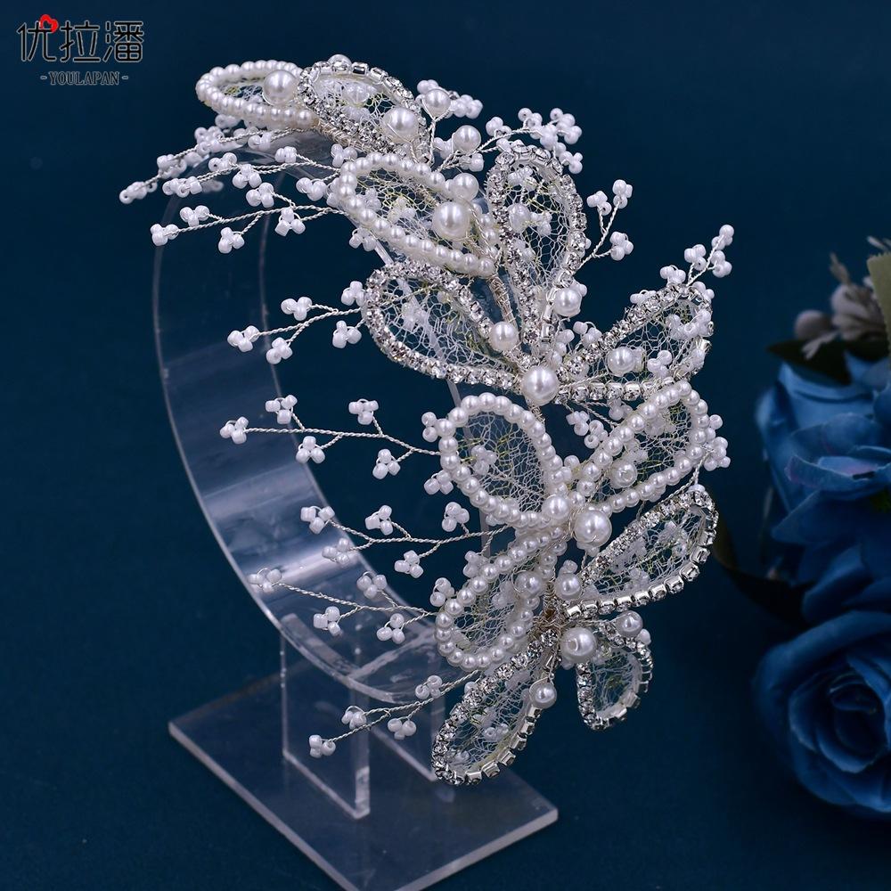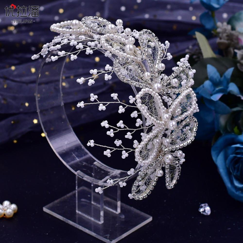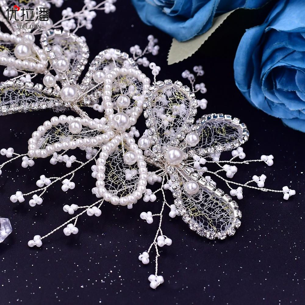Eulapan Accesorios para el Cabello Vintage Europeo y Americano Diadema Hecha a Mano Hojas Huecas de Pedrería Sencillo Perla Tocado de Boda HP486