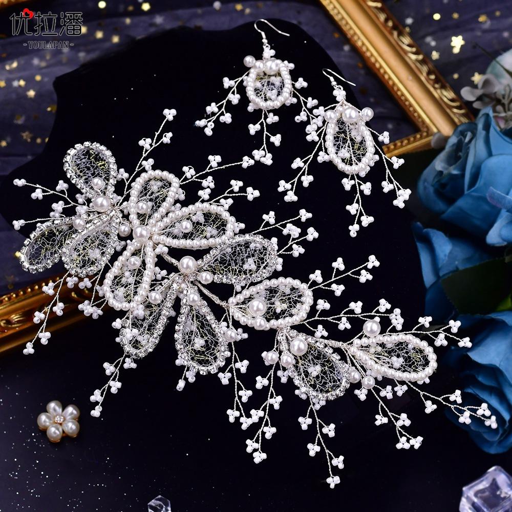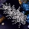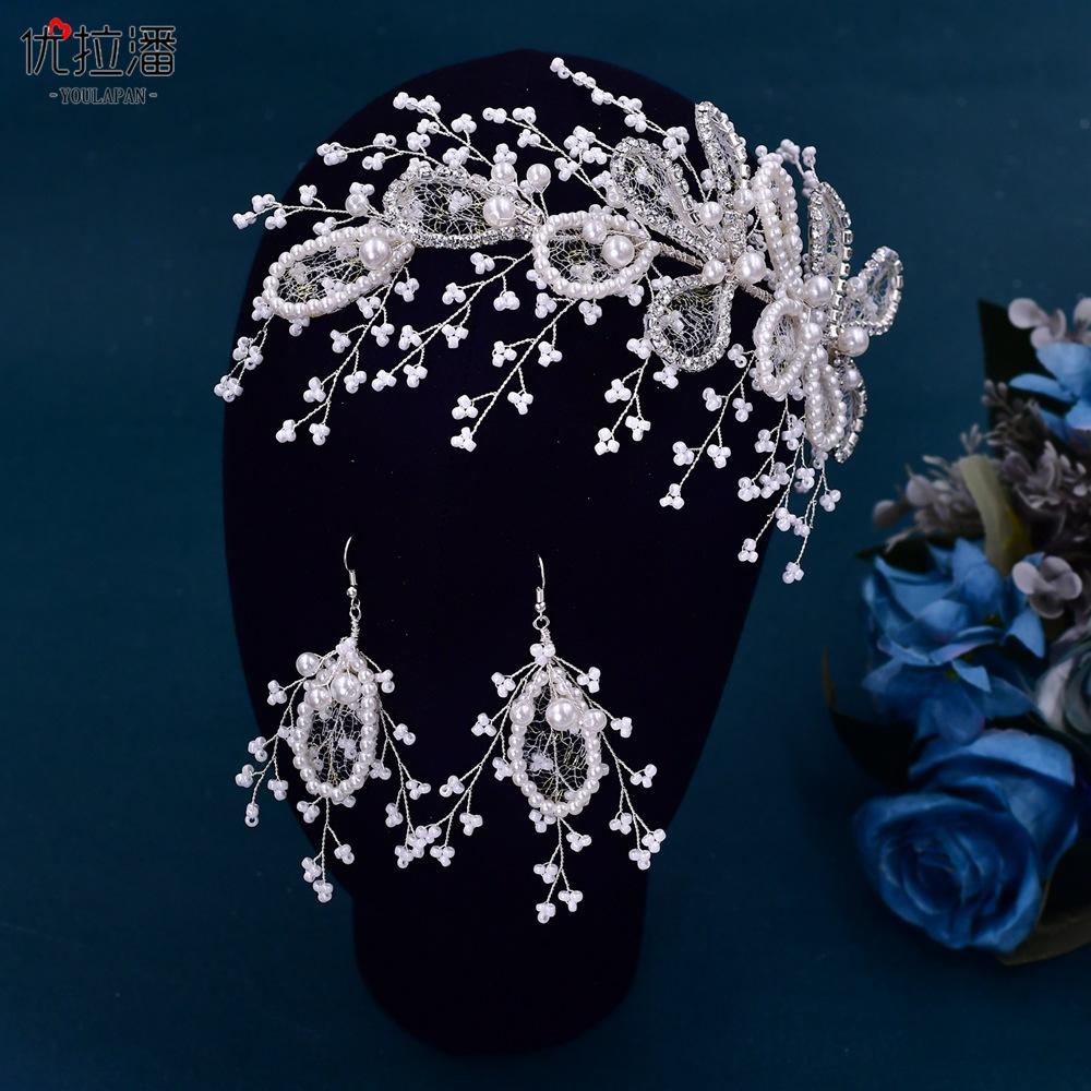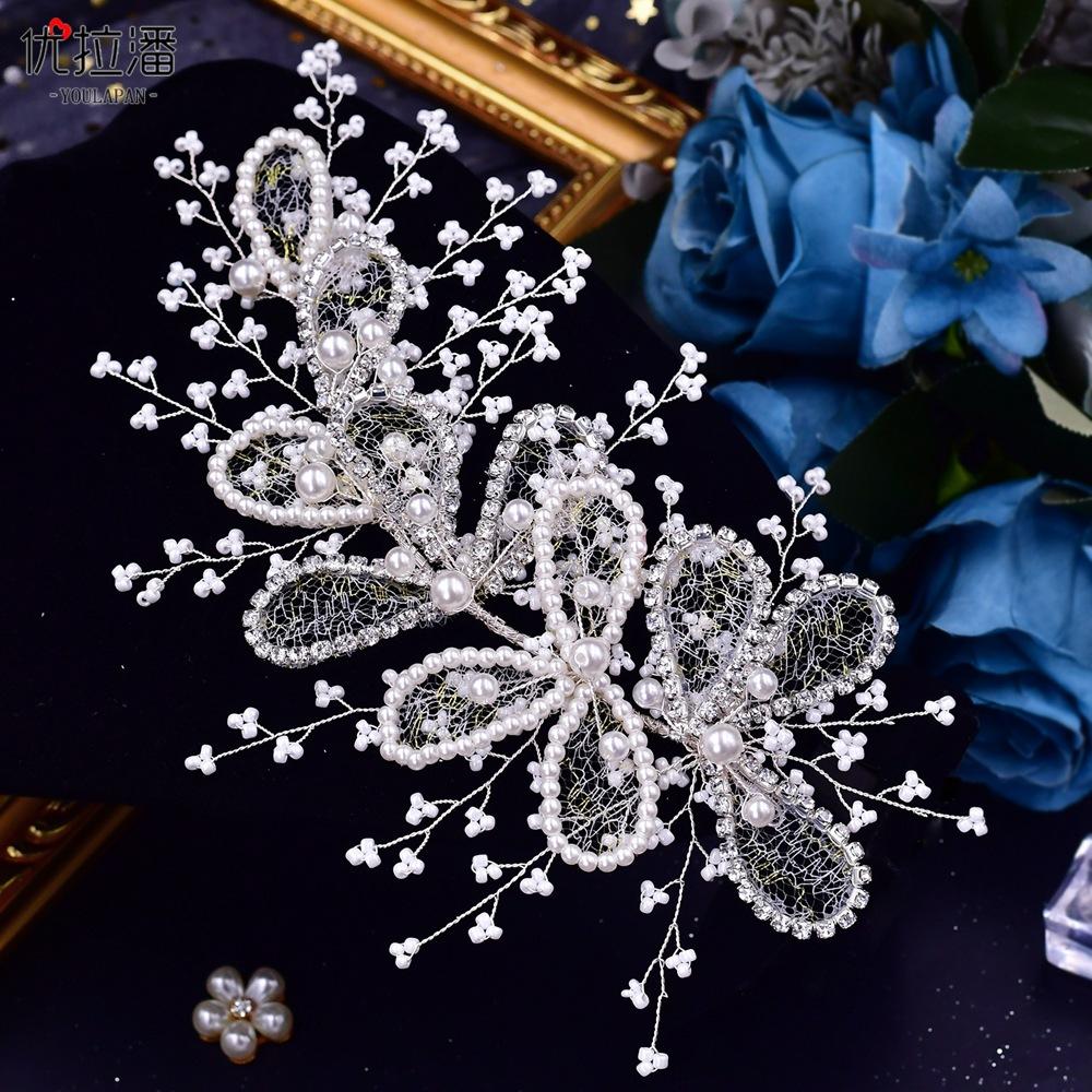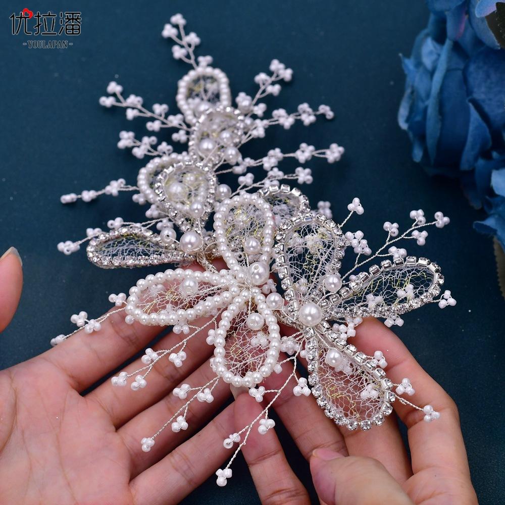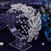 Eulapan Accesorios para el Cabello Vintage Europeo y Americano Diadema Hecha a Mano Hojas Huecas de Pedrería Sencillo Perla Tocado de Boda HP486