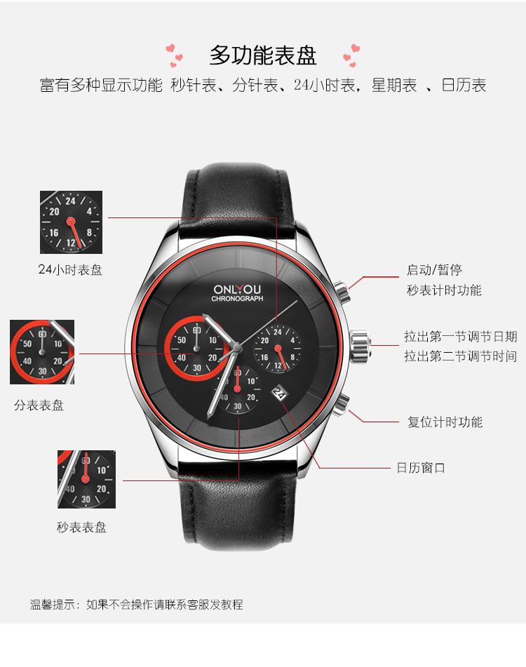 Men's White Shell-Red Circle Black Face Calendar-Black Red Bottom Real Belt, Men's black shell-blue circle Bla...