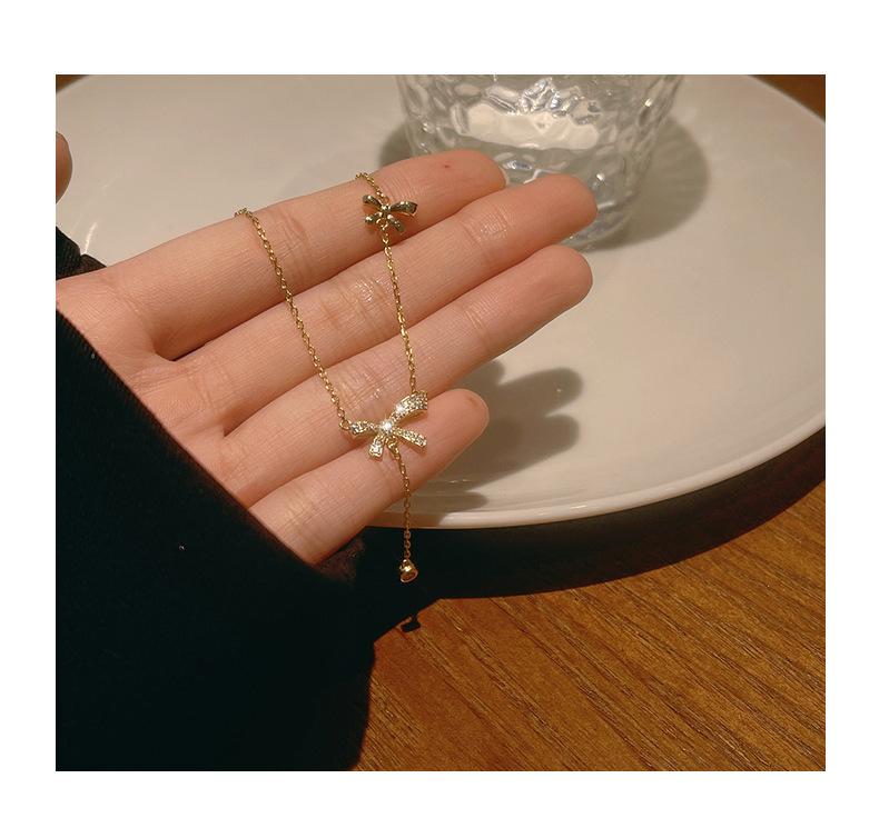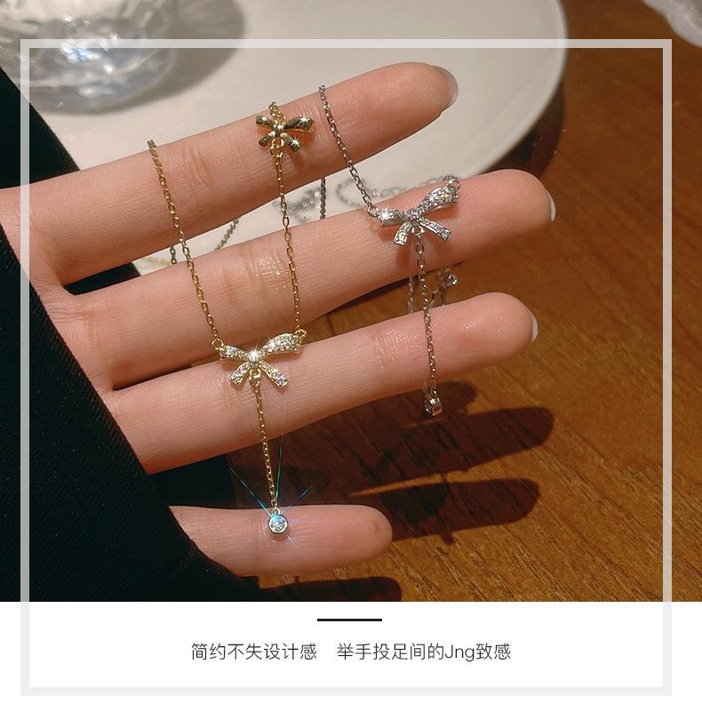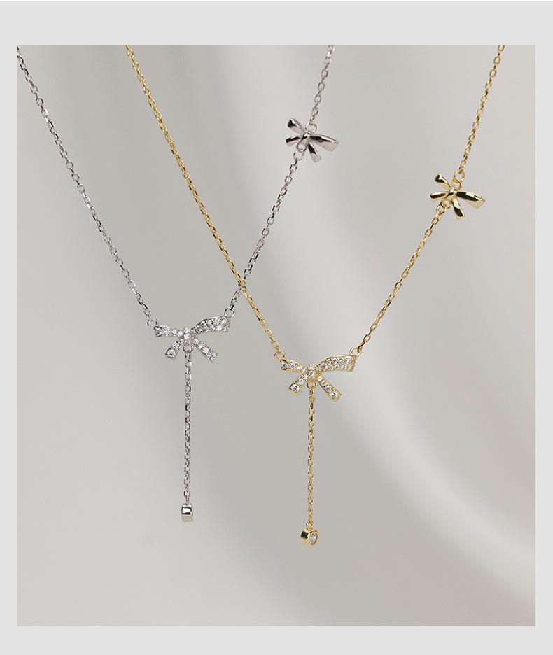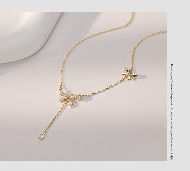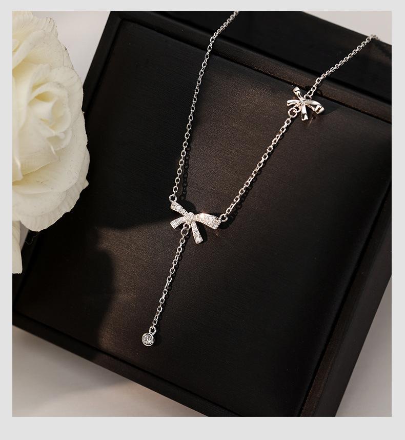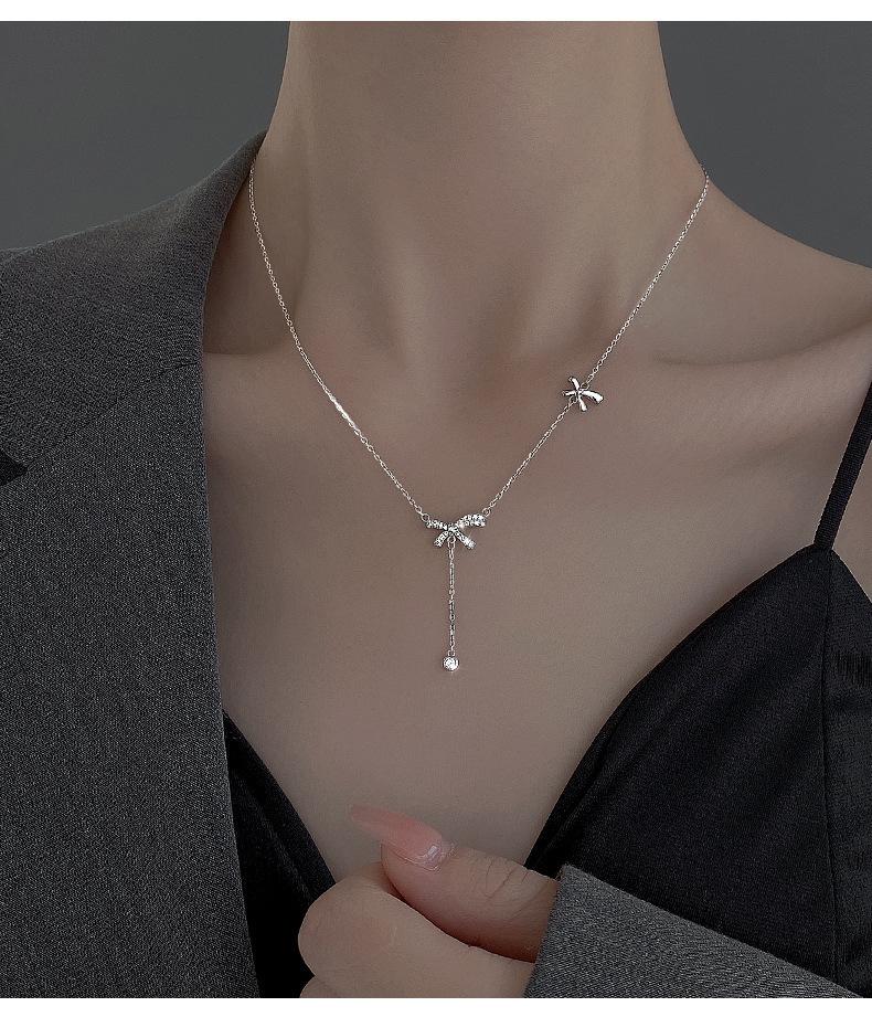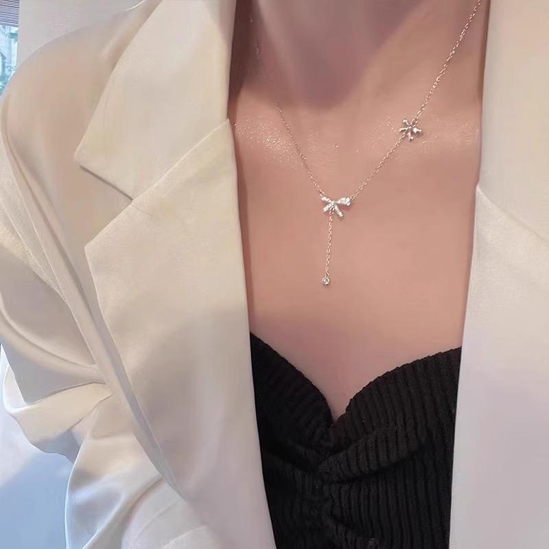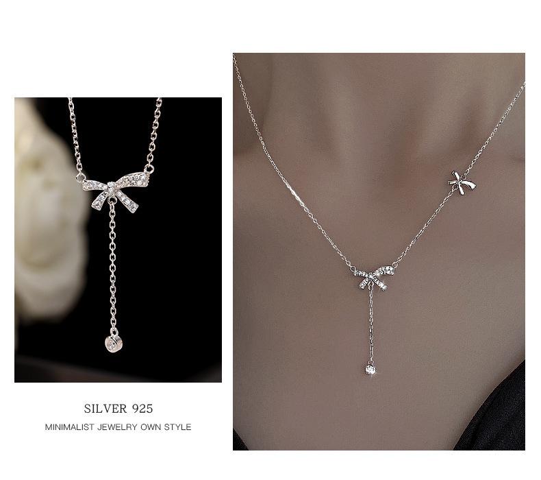 Collar con borlas de lazo para mujer, ligero, lujoso, dulce, de nicho, diseño simple, colgante de alta calidad, elegante cadena de clavícula de celebridades de Internet.