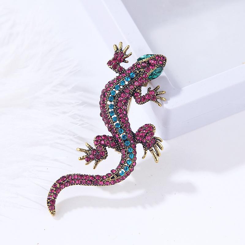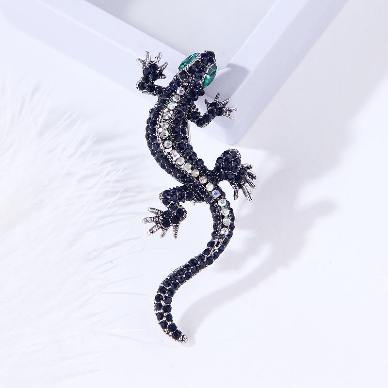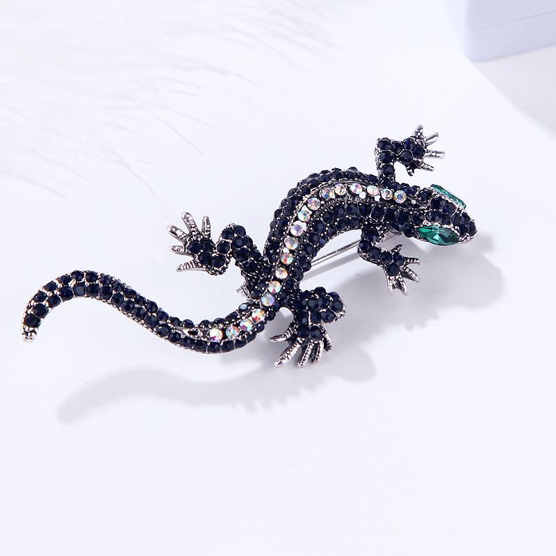 Broche de lagarto animal retro europeo y americano transfronterizo Blue Hao, broche de accesorios de ropa para hombres y mujeres de aleación de diamantes completos