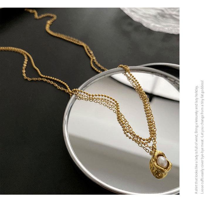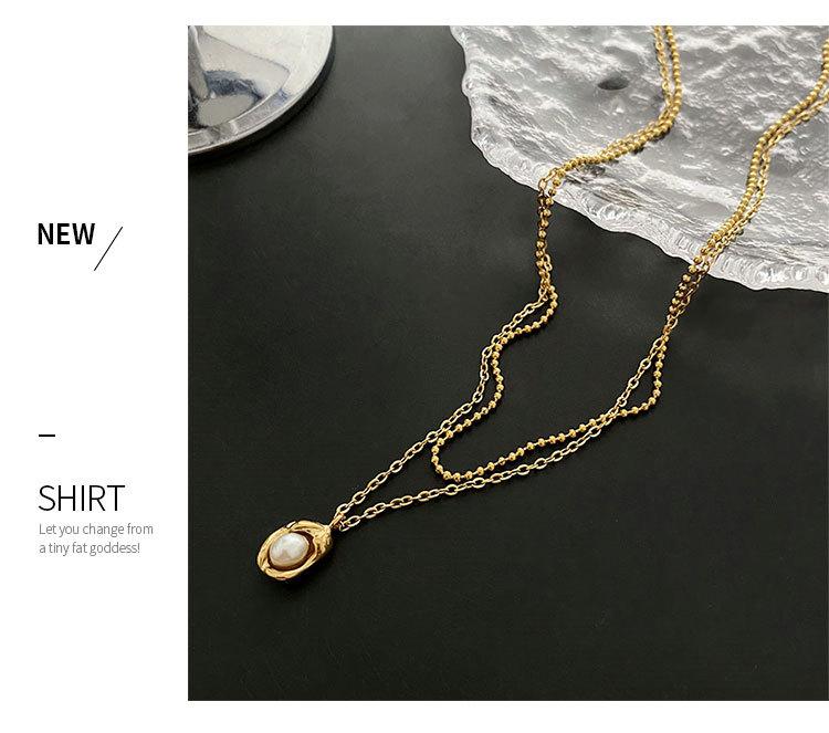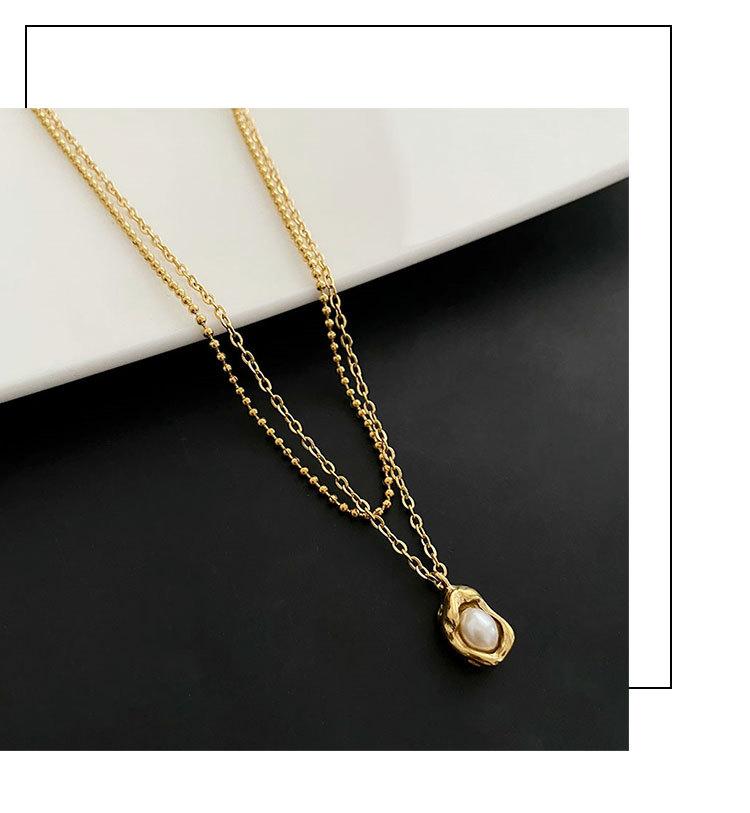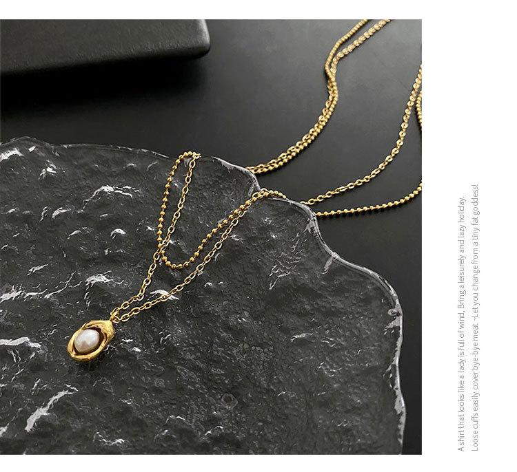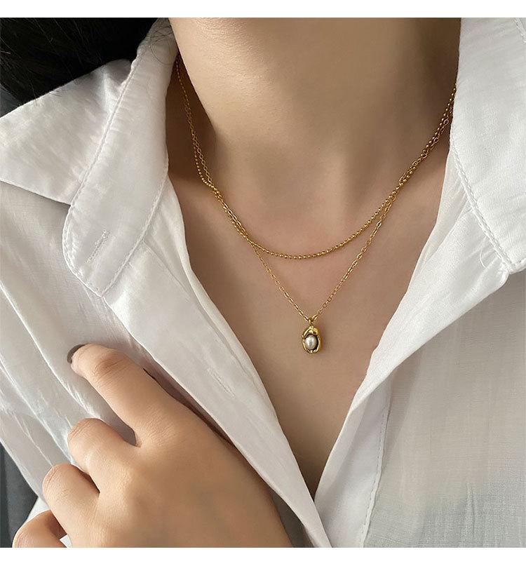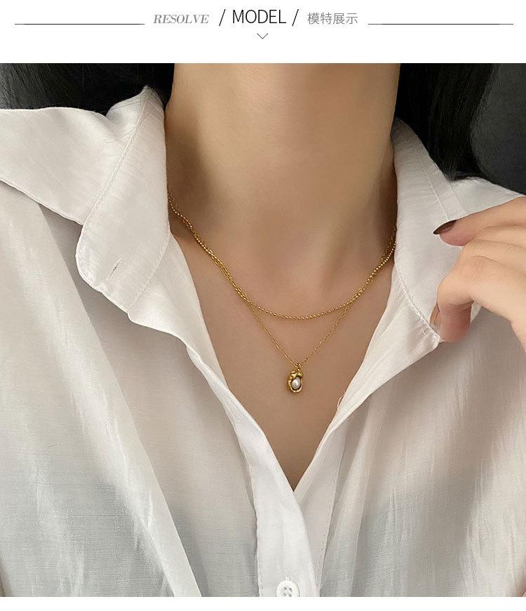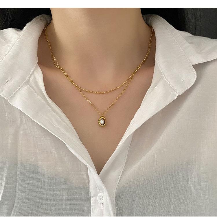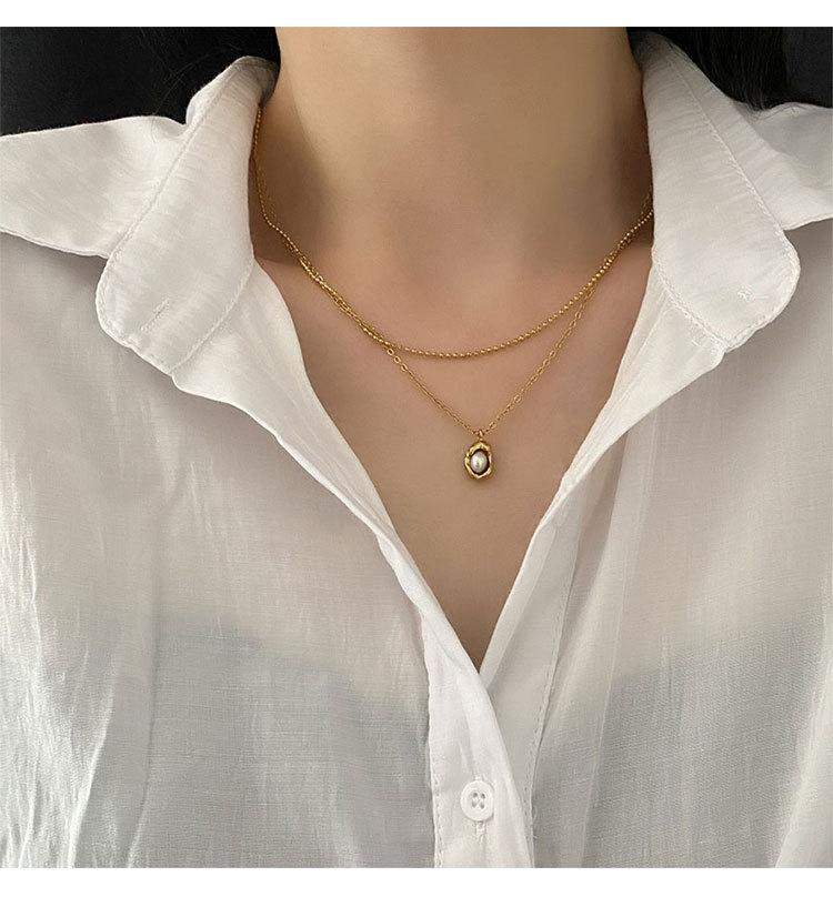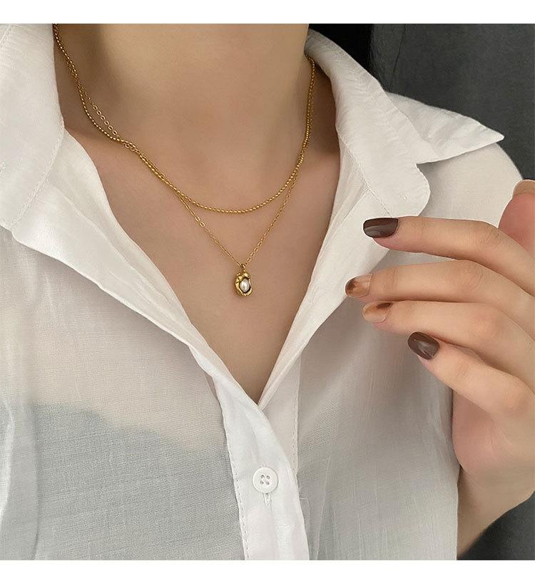 Collar elegante de moda para mujer, con colgante de guisante, estilo de diseño frío, cadena de clavícula de doble capa, acero de titanio resistente a la decoloración
