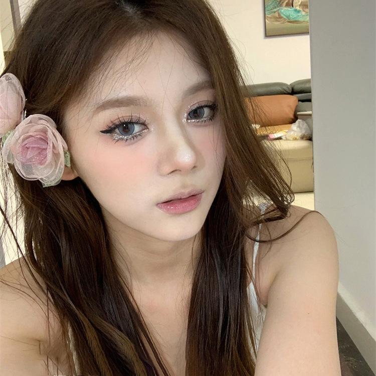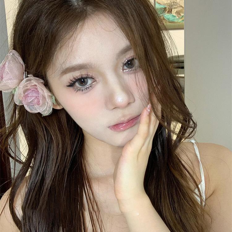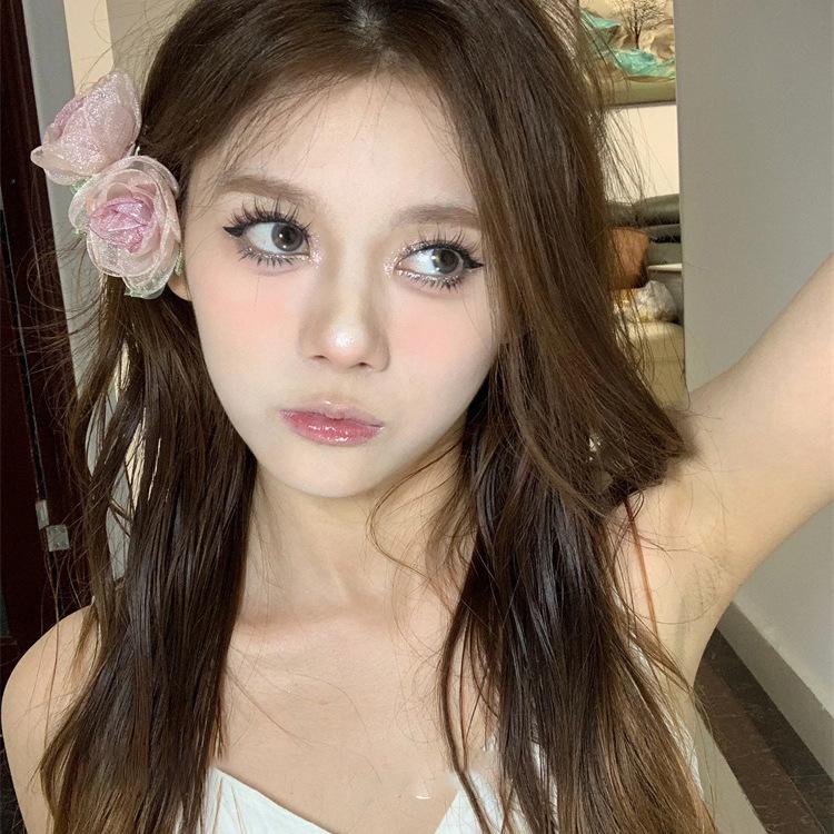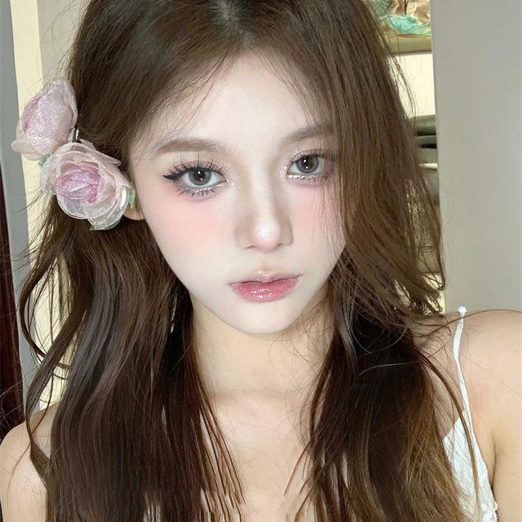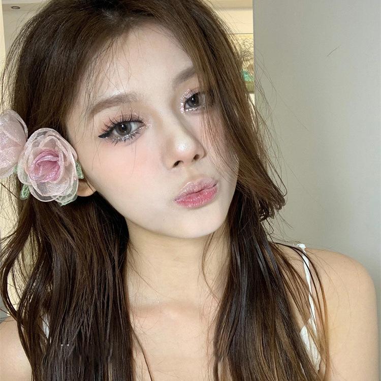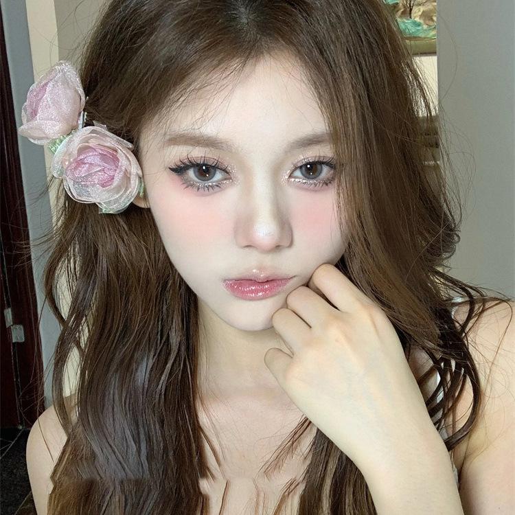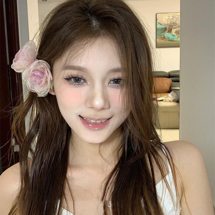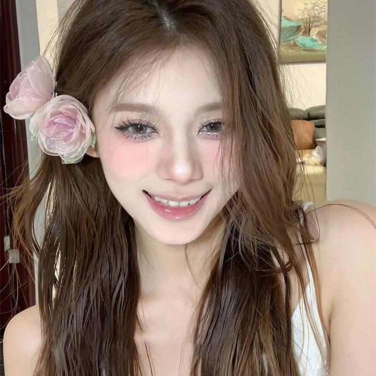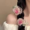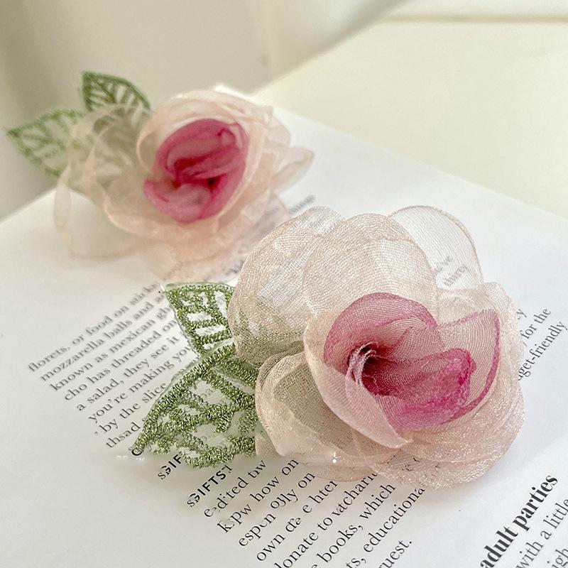 Horquilla de organza rosa Mori con flor, estilo hada, con clip lateral, elegante tocado de rosa seca, accesorios para el cabello de camelia