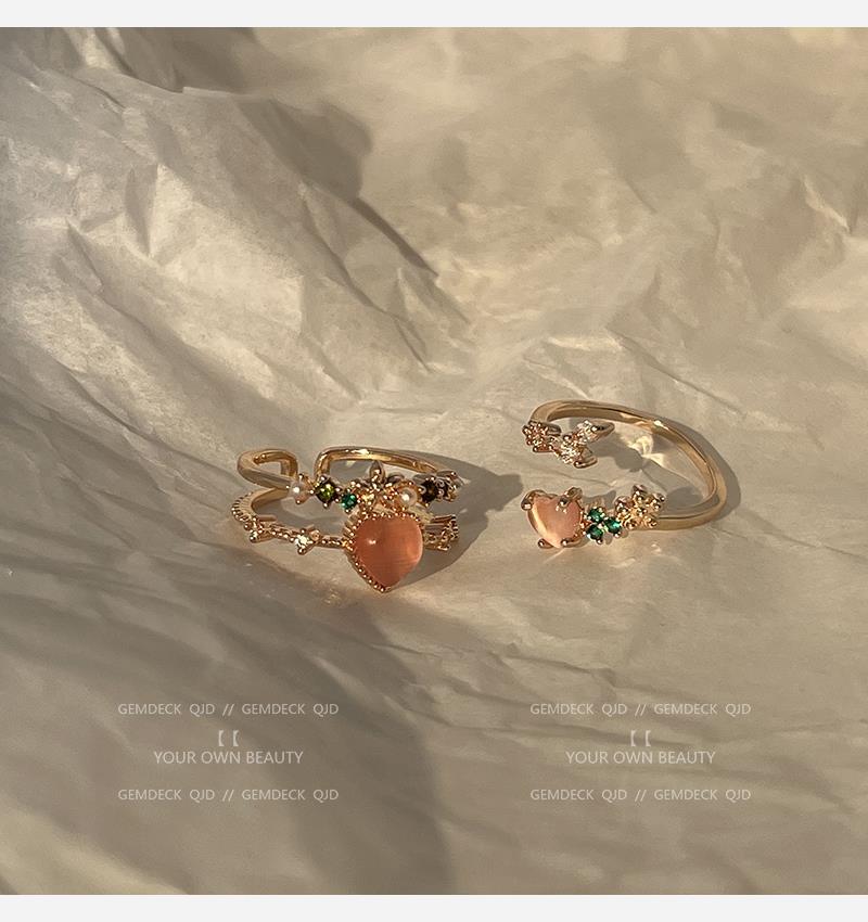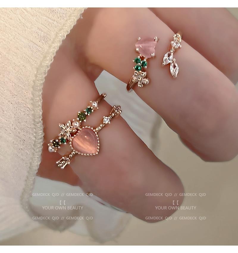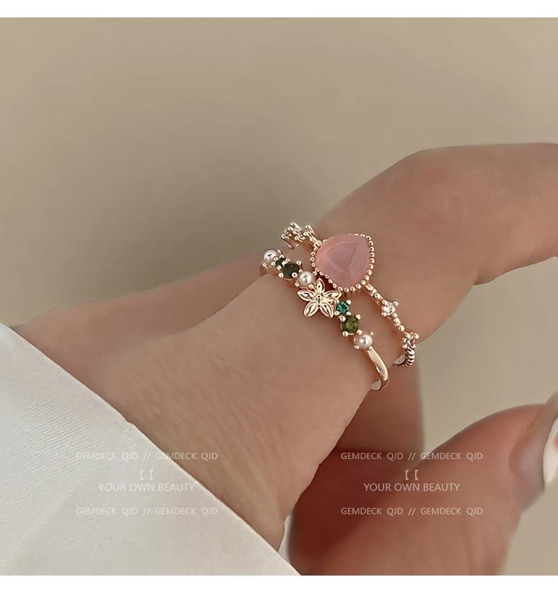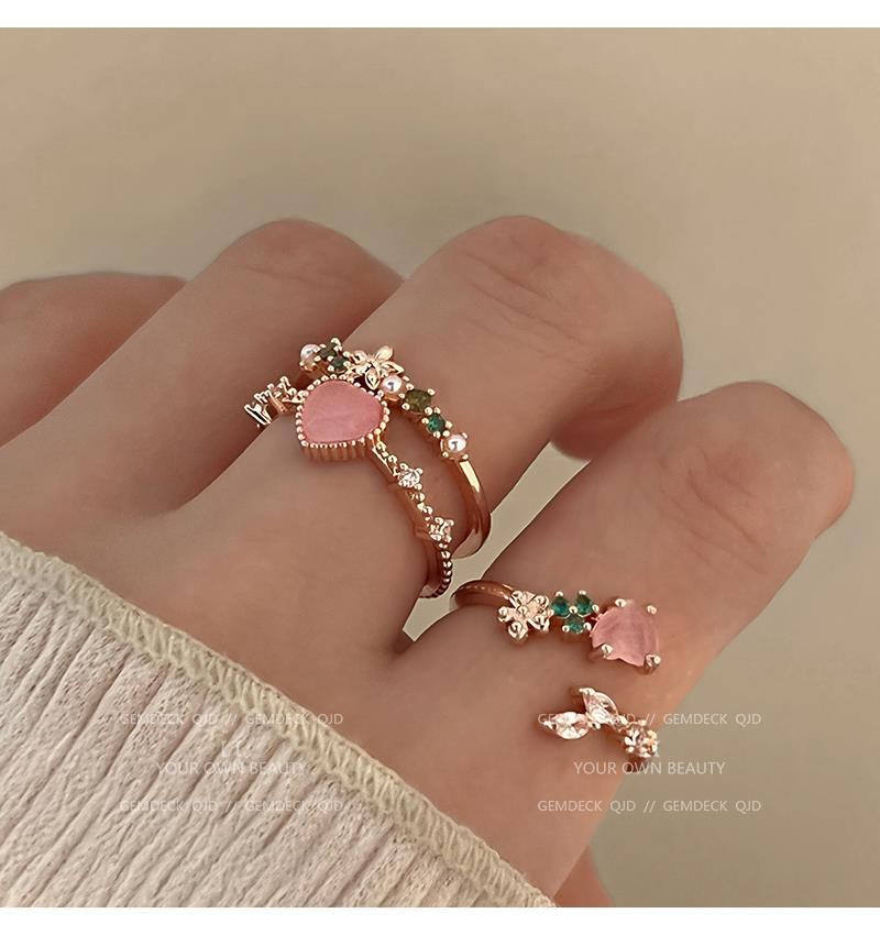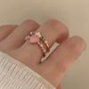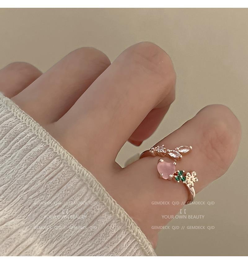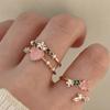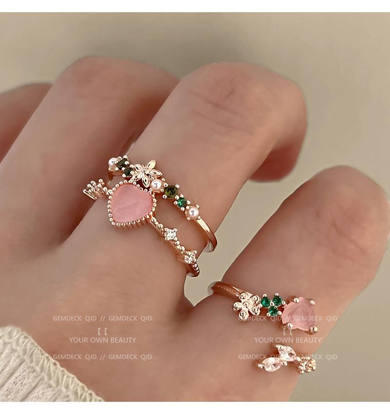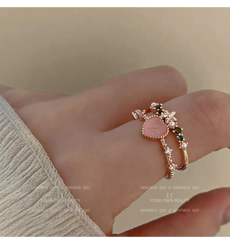 Anillo de Circonita Doble Rosa Amor para Mujer Estilo Coreano Moda Elegante Flor Anillo Abierto para Dedo Superpuesto Dulce Cool Anillo para Dedo