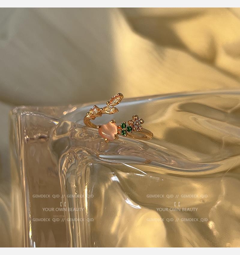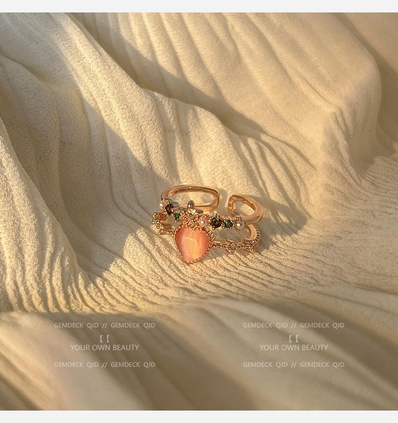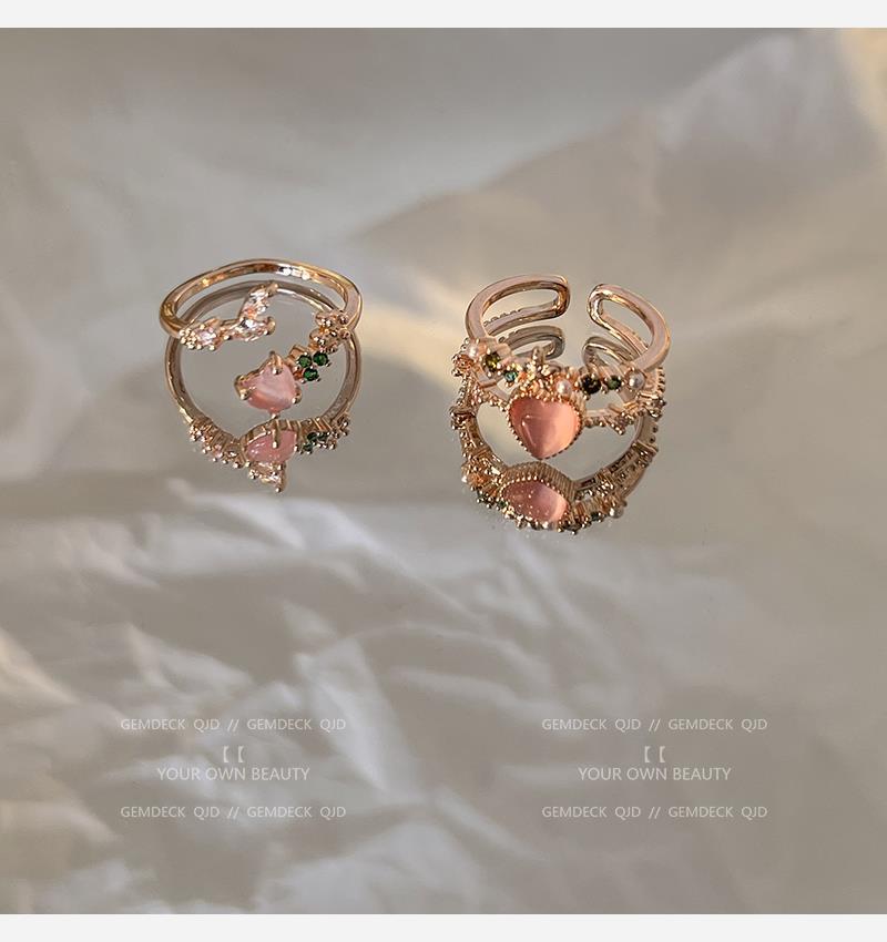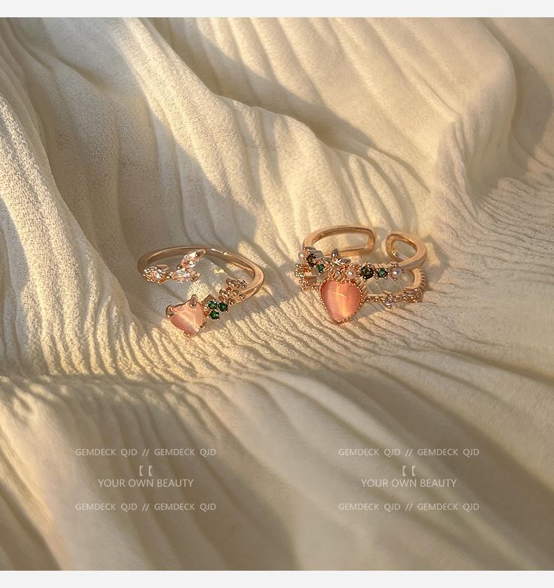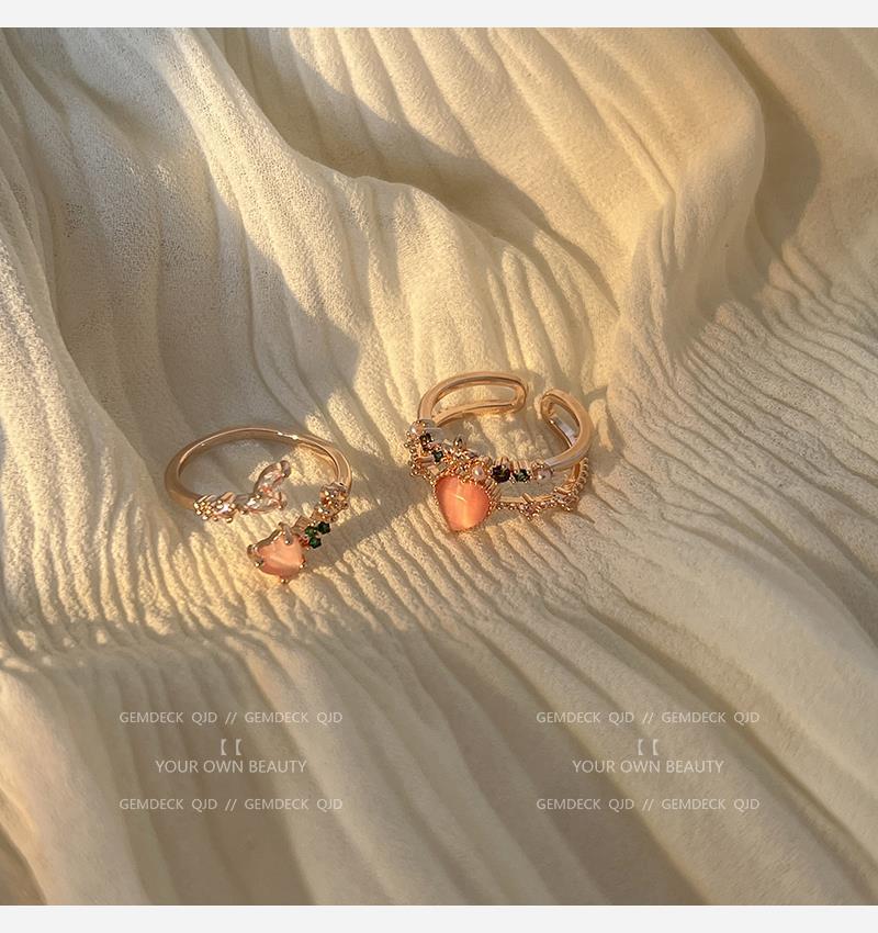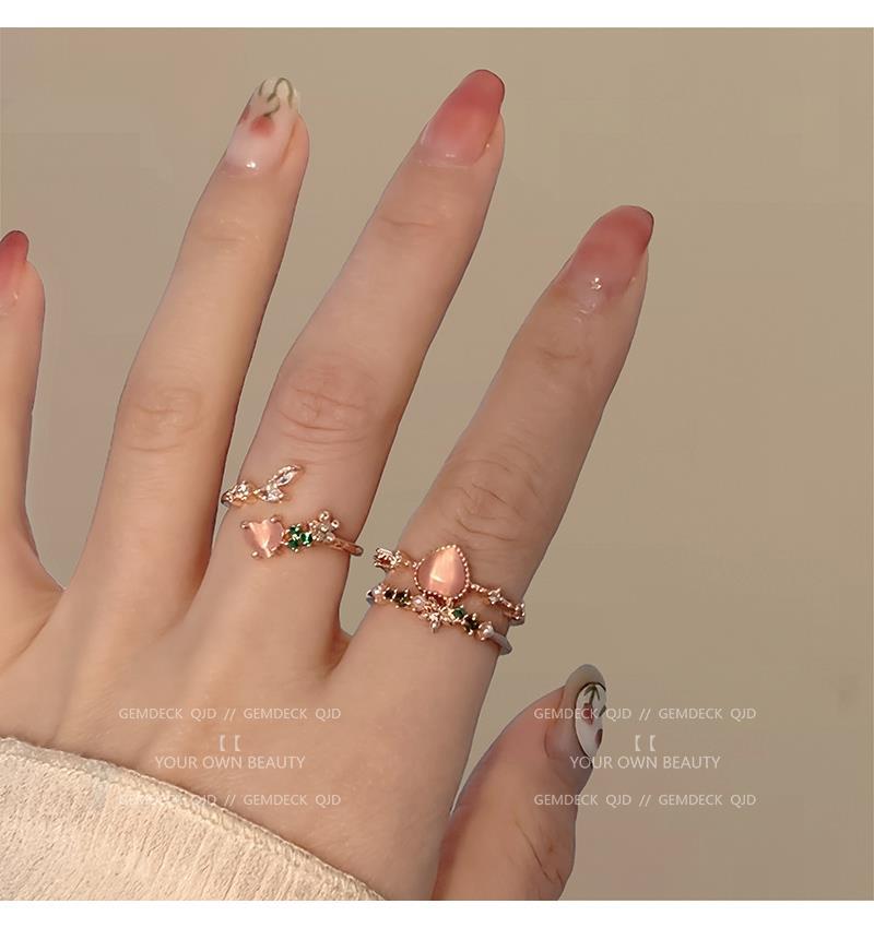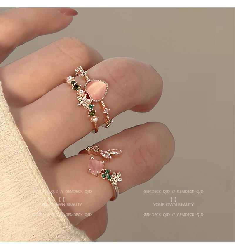 Anillo de Circonita Doble Rosa Amor para Mujer Estilo Coreano Moda Elegante Flor Anillo Abierto para Dedo Superpuesto Dulce Cool Anillo para Dedo