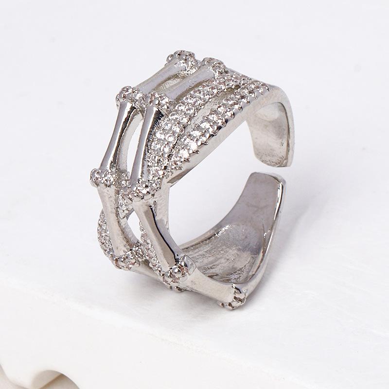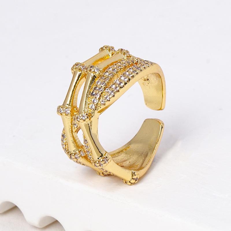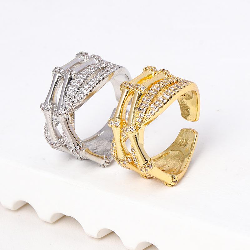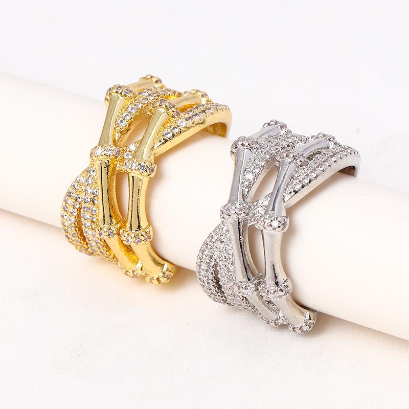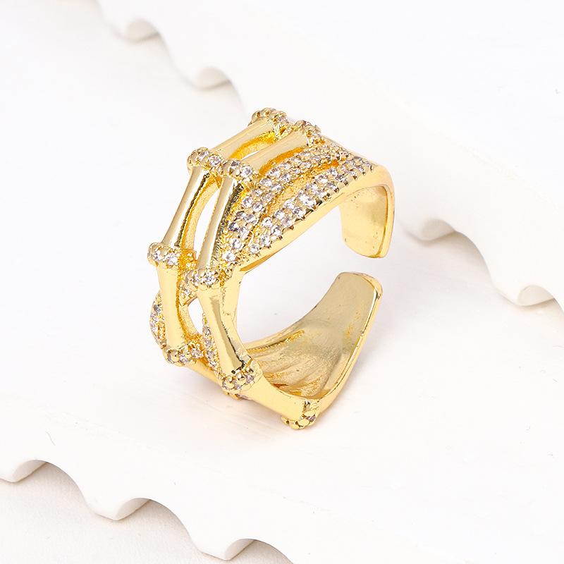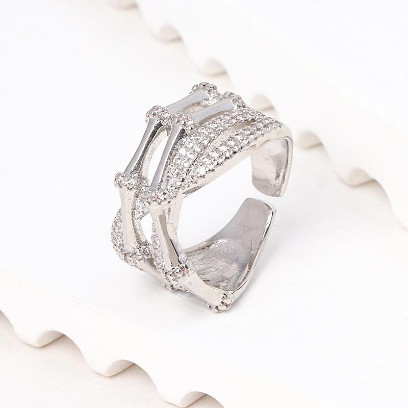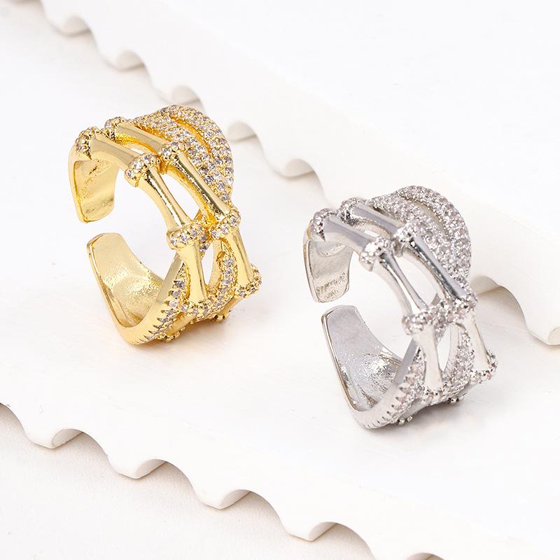 Suministro transfronterizo de comercio exterior europeo y americano anillo ajustable geométrico de moda micro-incrustado circonita brillante anillo multicapa mujeres