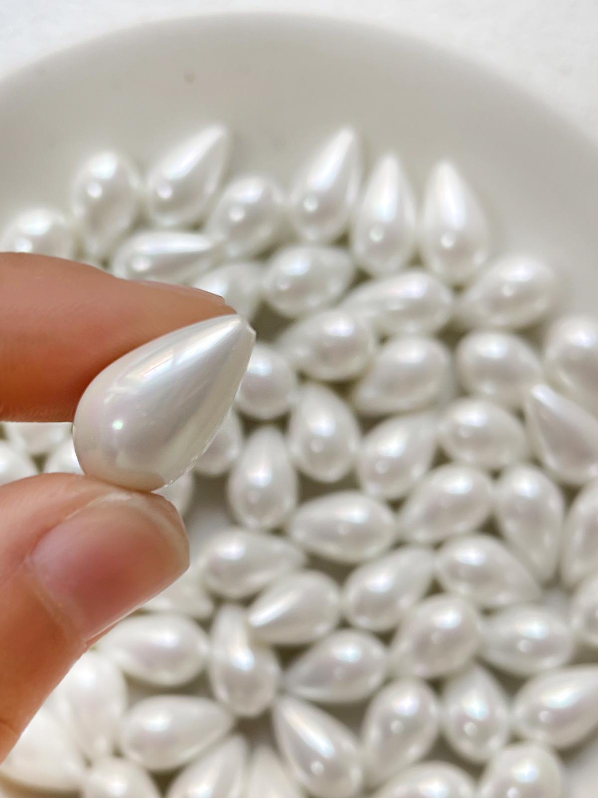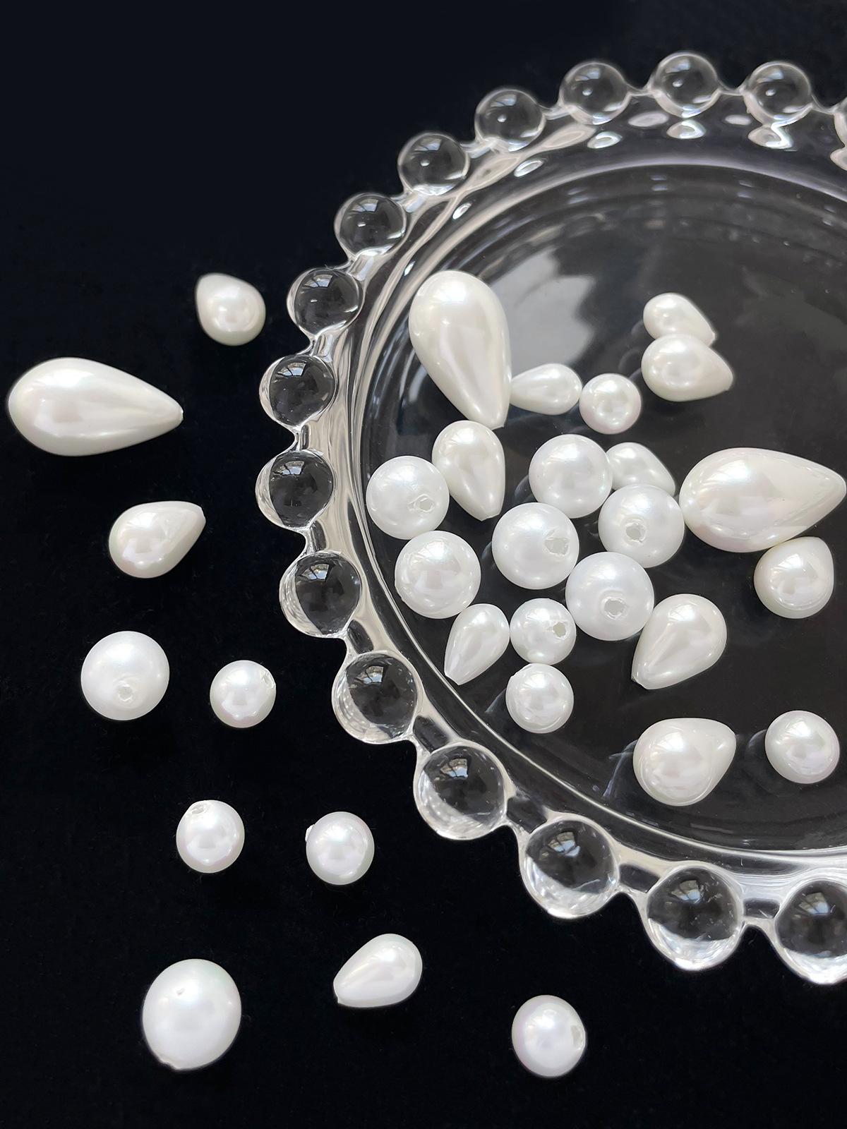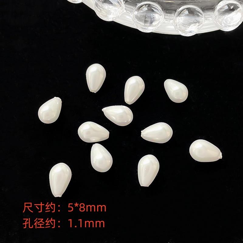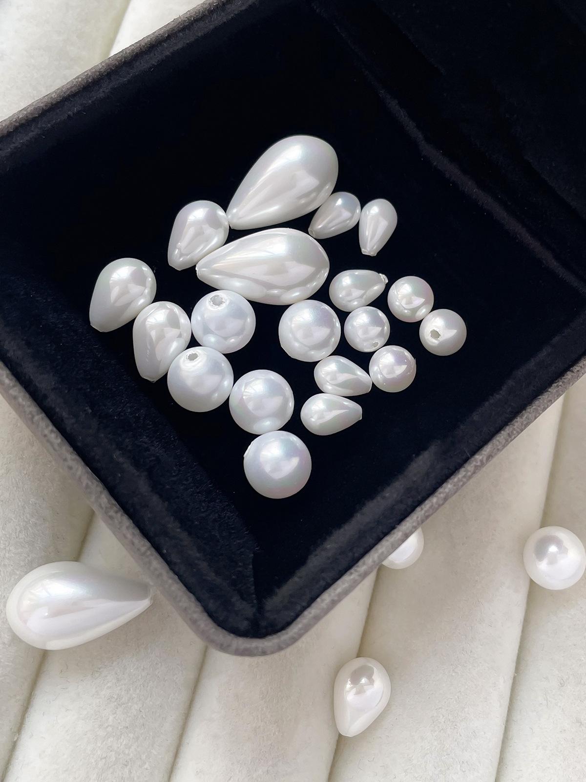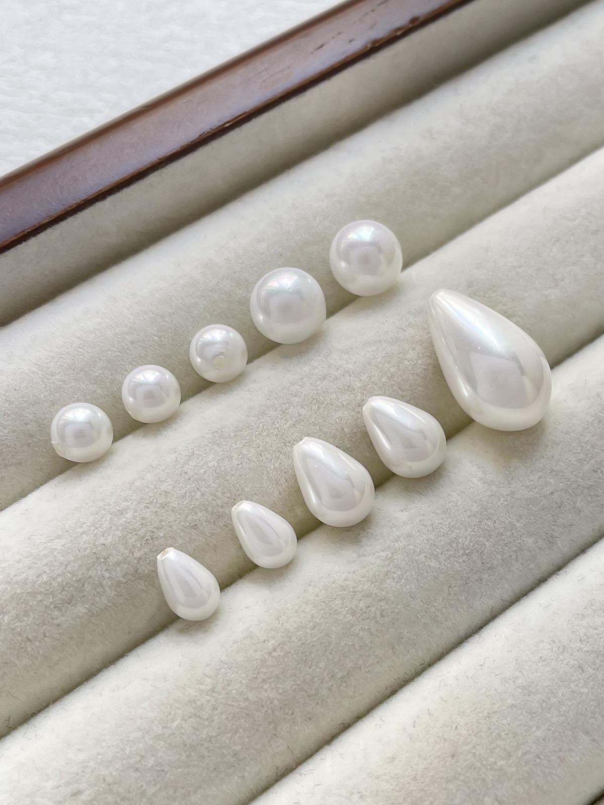 Perlas de imitación brillantes, cuentas redondas de medio agujero, cuentas de concha, cuentas de gota de agua, pulsera hecha a mano, collar, accesorios de perlas, material