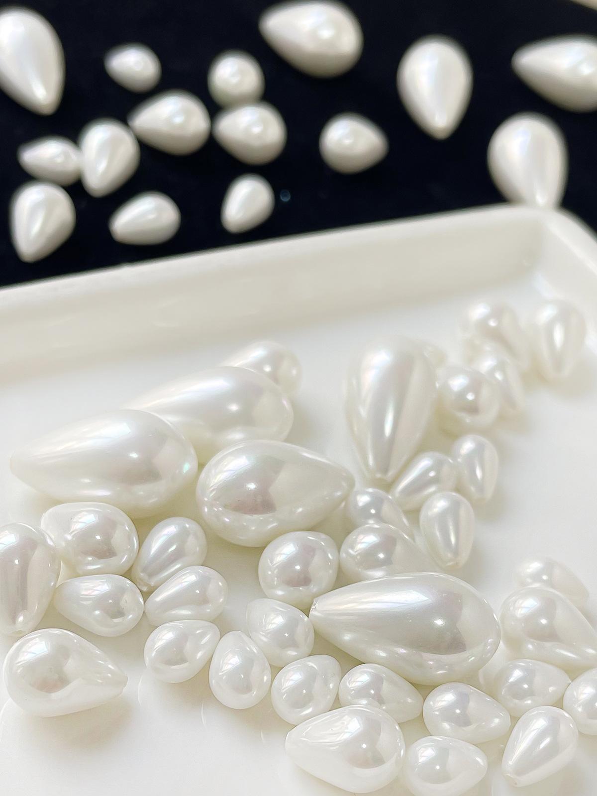 Compra Perlas de imitación brillantes, cuentas redondas de medio agujero, cuentas de concha, cuentas de gota de agua, pulsera hecha a mano, collar, accesorios de perlas, material al por mayor en Joom.pro