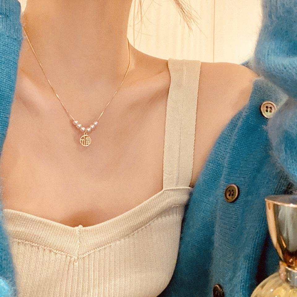 Collar de perlas Fuzi para mujer, de verano, ligero, de lujo, con diseño de nicho, cadena de clavícula de alta calidad, colgante de Año Nuevo que no se cae.
