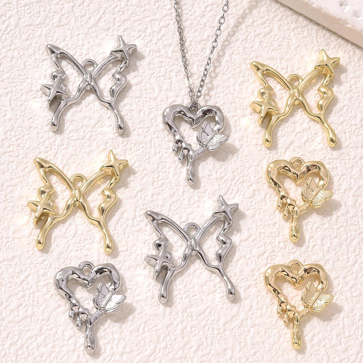 Colgante de mariposa con estrellas de amor líquido romántico tridimensional de moda, joyería hecha a mano, pulsera, pendientes, collar, accesorios