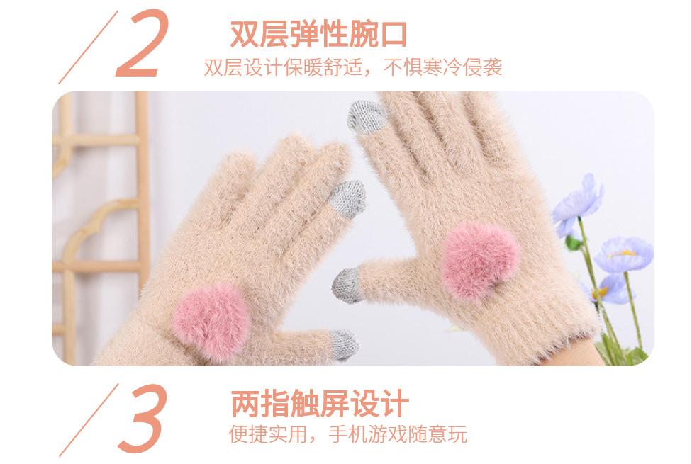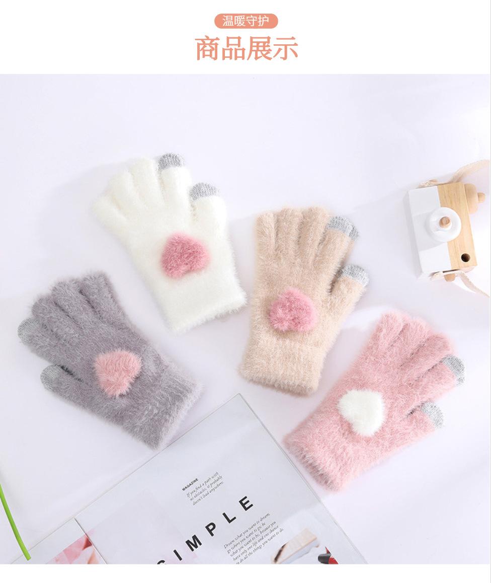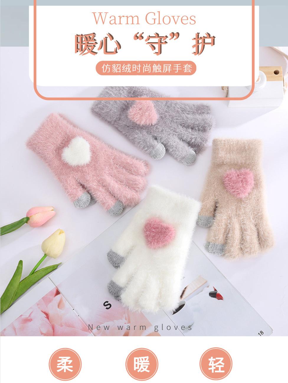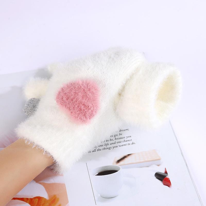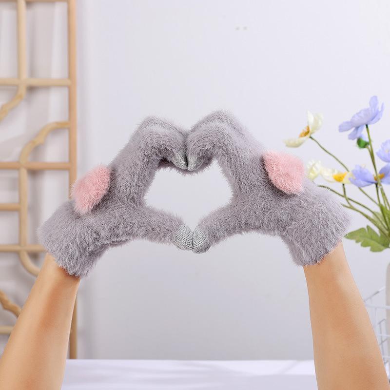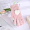 Guantes de pantalla táctil Winter Love, estilo coreano, con forro polar, cálidos y resistentes al frío, para ciclismo, bonitos guantes de felpa de cinco dedos para niña.
