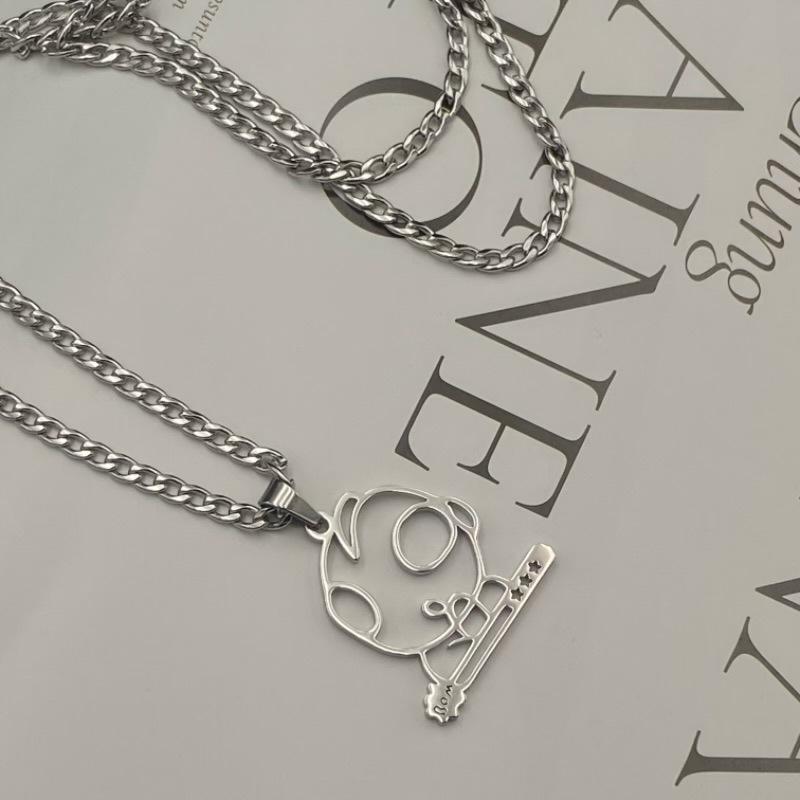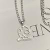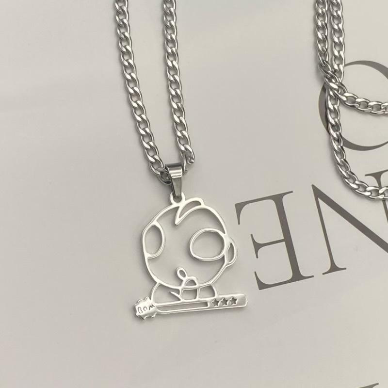 Collar con colgante de diseño de monstruo de dibujos animados, cadena de joyería para pareja, sudadera de acero de titanio, cadena de clavícula, linda personalidad, moda