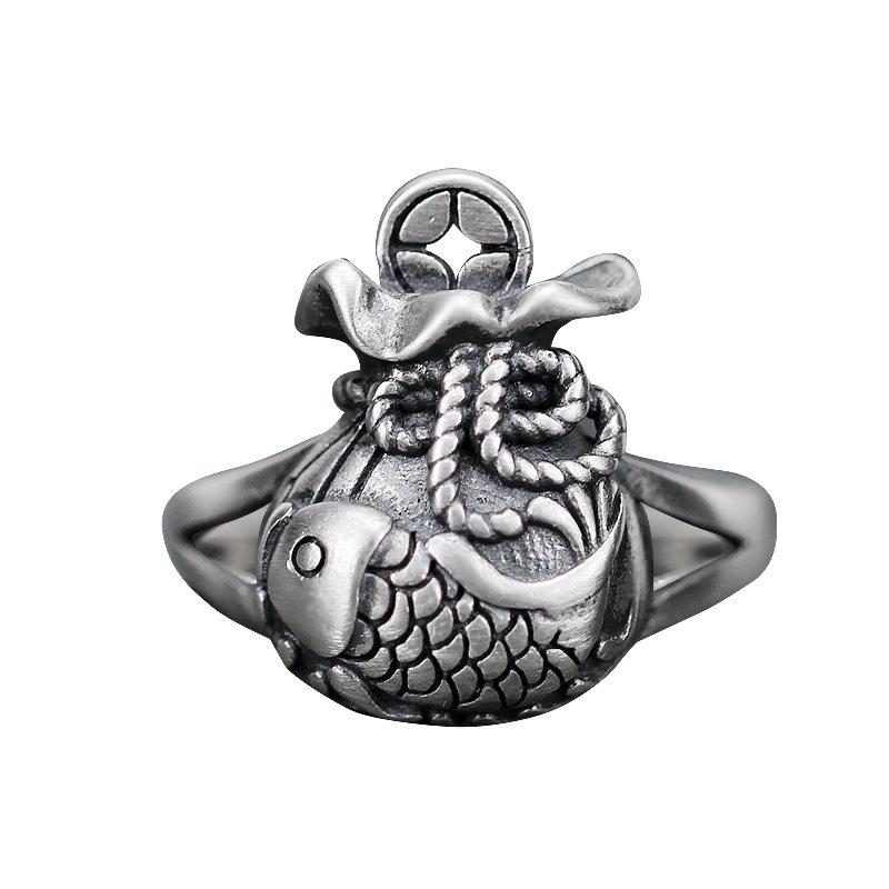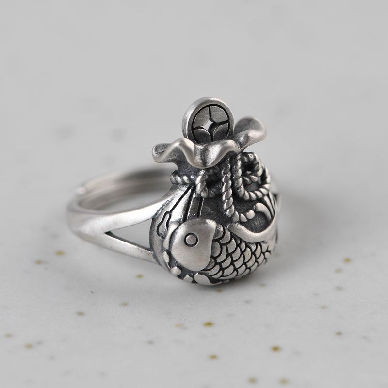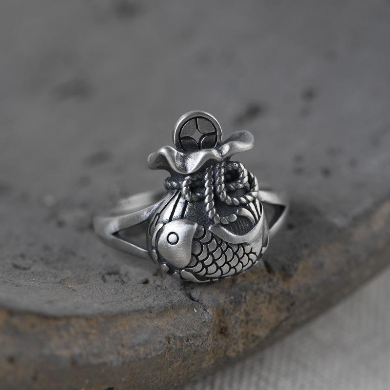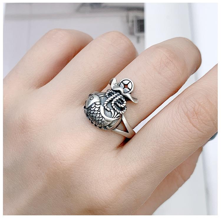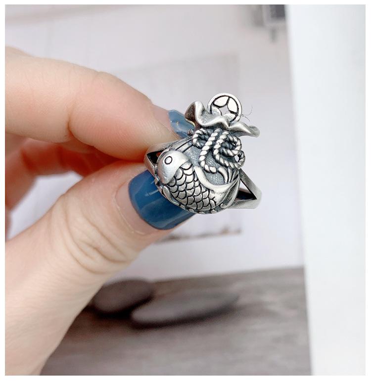 Monedero retro de plata tailandesa anillo de pez de la suerte personalidad antiguo hacer viejo simple anillo abierto para el dedo índice fabricantes femeninos venta al por mayor