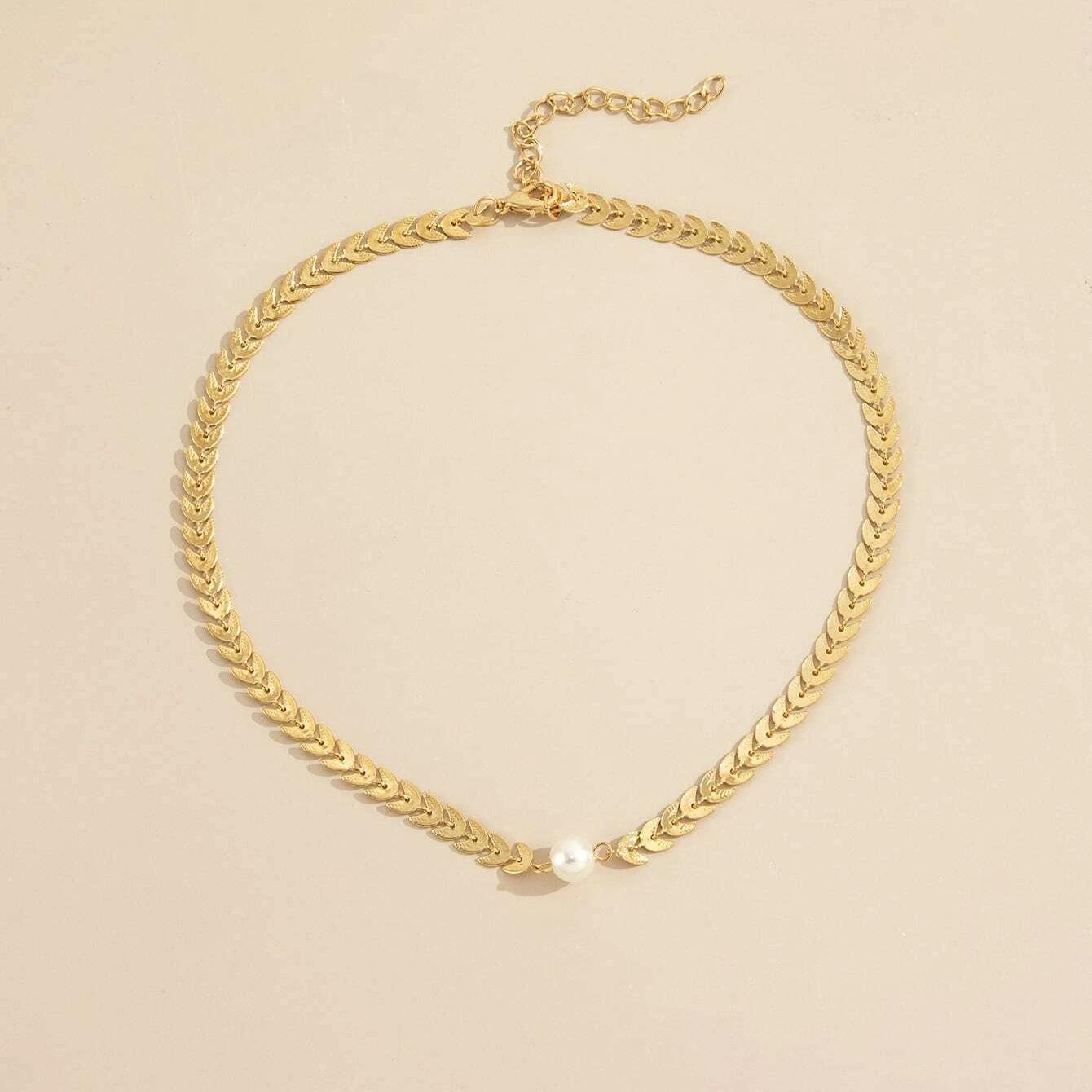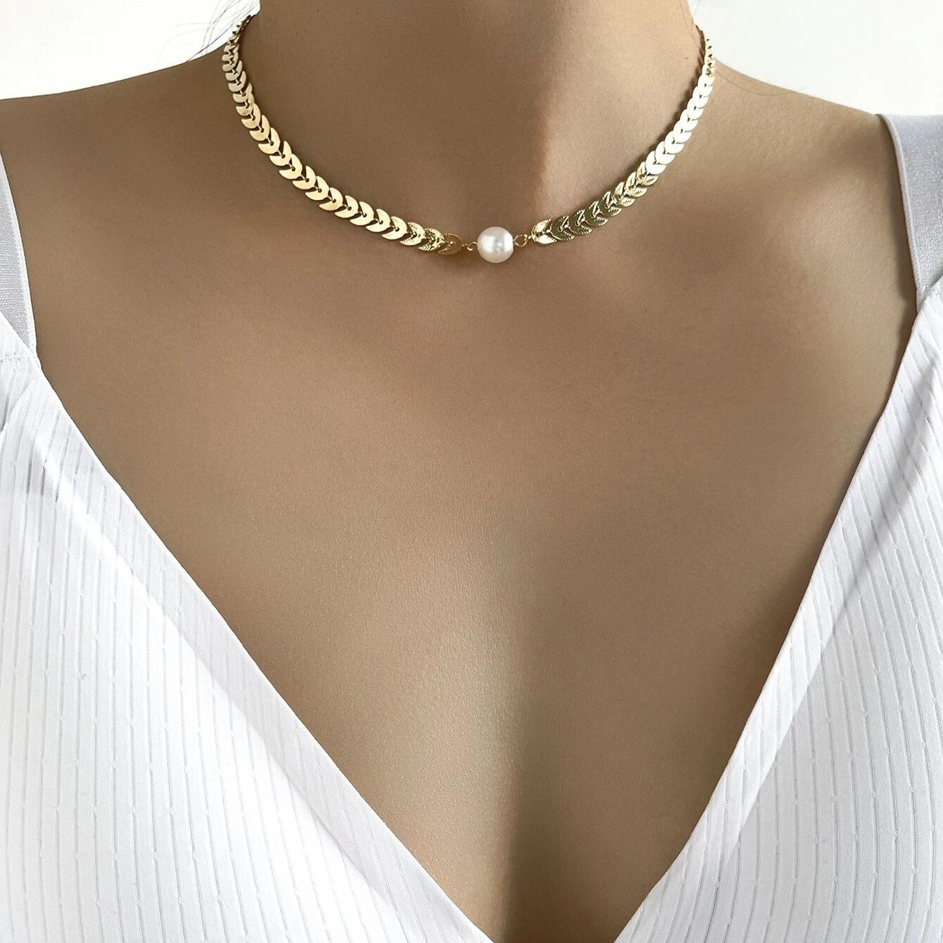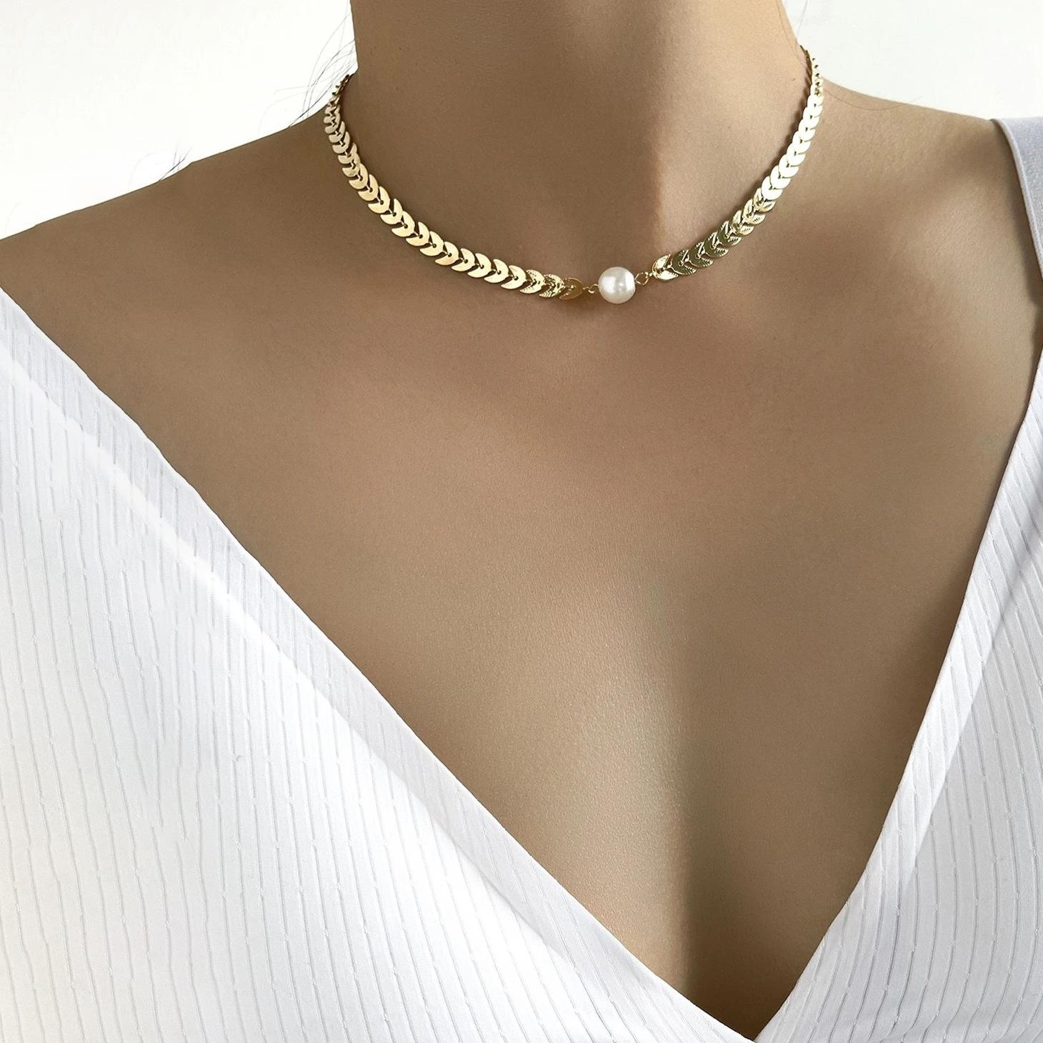 Elegante cadena de espiga de pescado de moda transfronteriza europea y americana, nuevo collar corto de lentejuelas, cadena de perlas de moda para mujer, cadena de clavícula