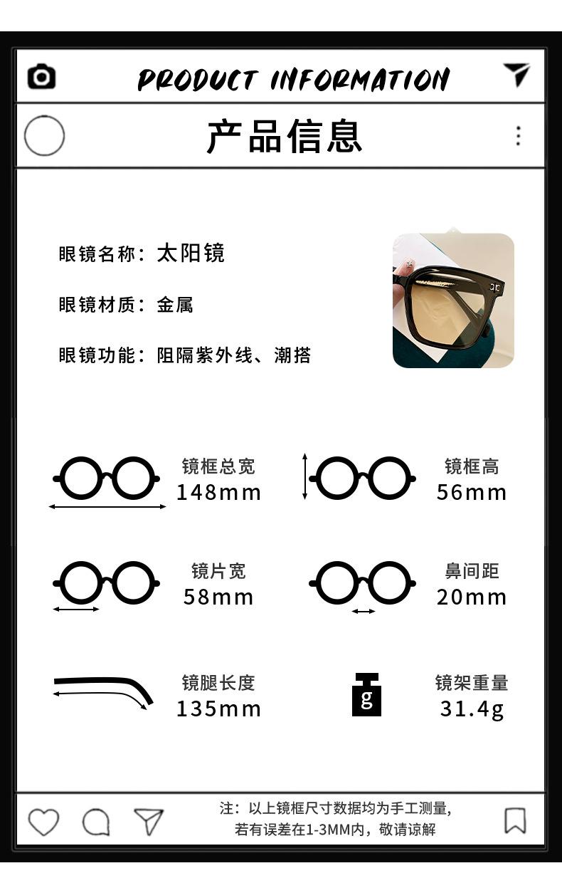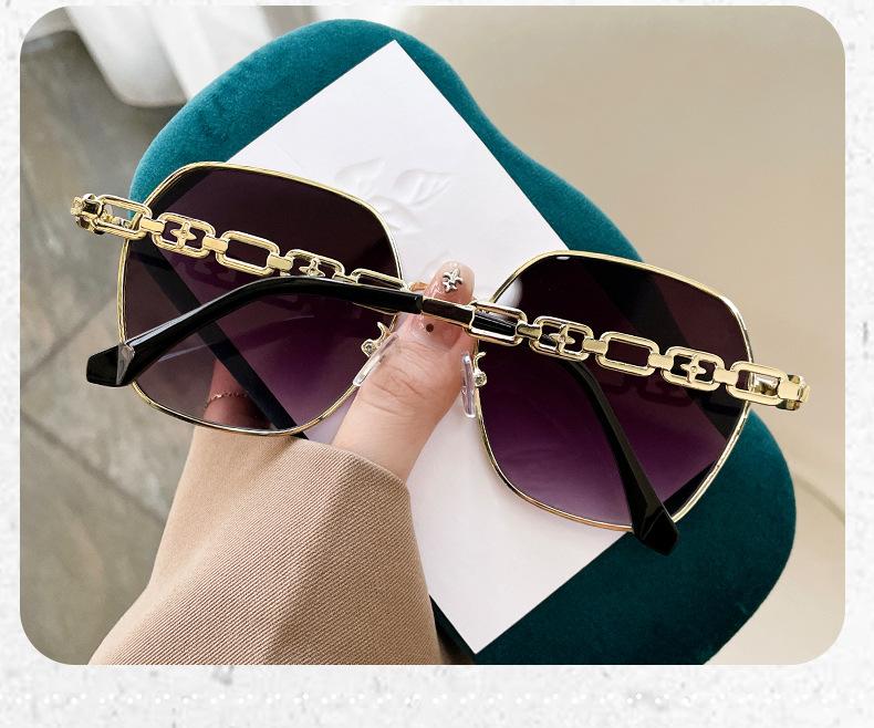 2024 Nuevas gafas de sol estilo Chanel con montura grande de metal poligonal, pequeñas gafas de sol rojas con diseño de libro rojo, lisas y adelgazantes, de red roja