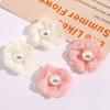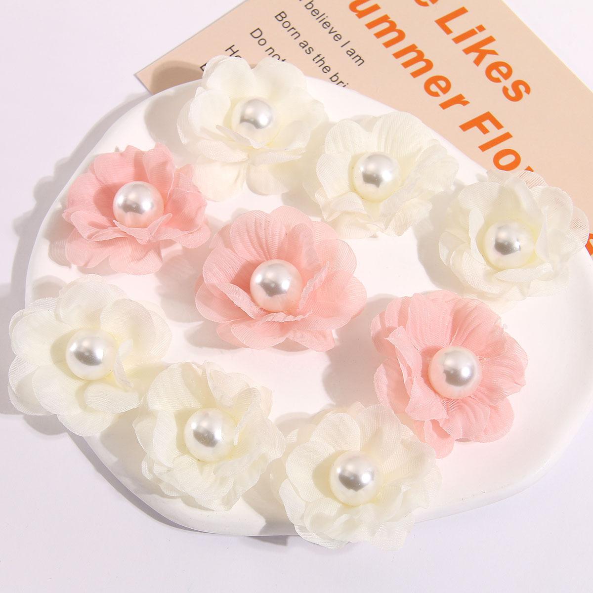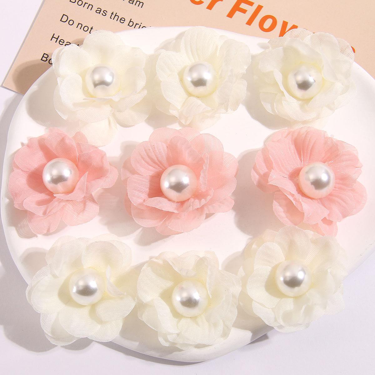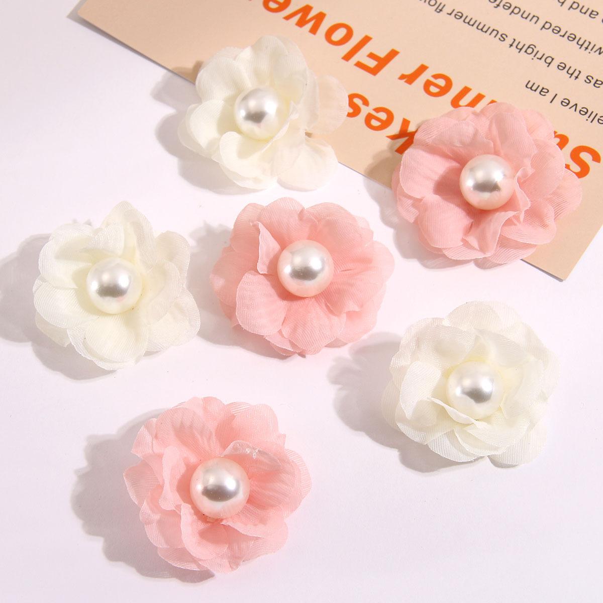 Flor de camelia con perla de malla rosa Mori, bricolaje, súper hada, flor de gasa, accesorios de ropa, tocados, venta al por mayor
